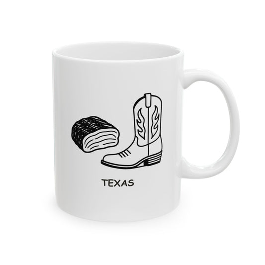 "Texas: Where ‘brisket’ is a food group and ‘cowboy boots’ are a lifestyle." Ceramic Mug - 11oz & 15oz - 12771