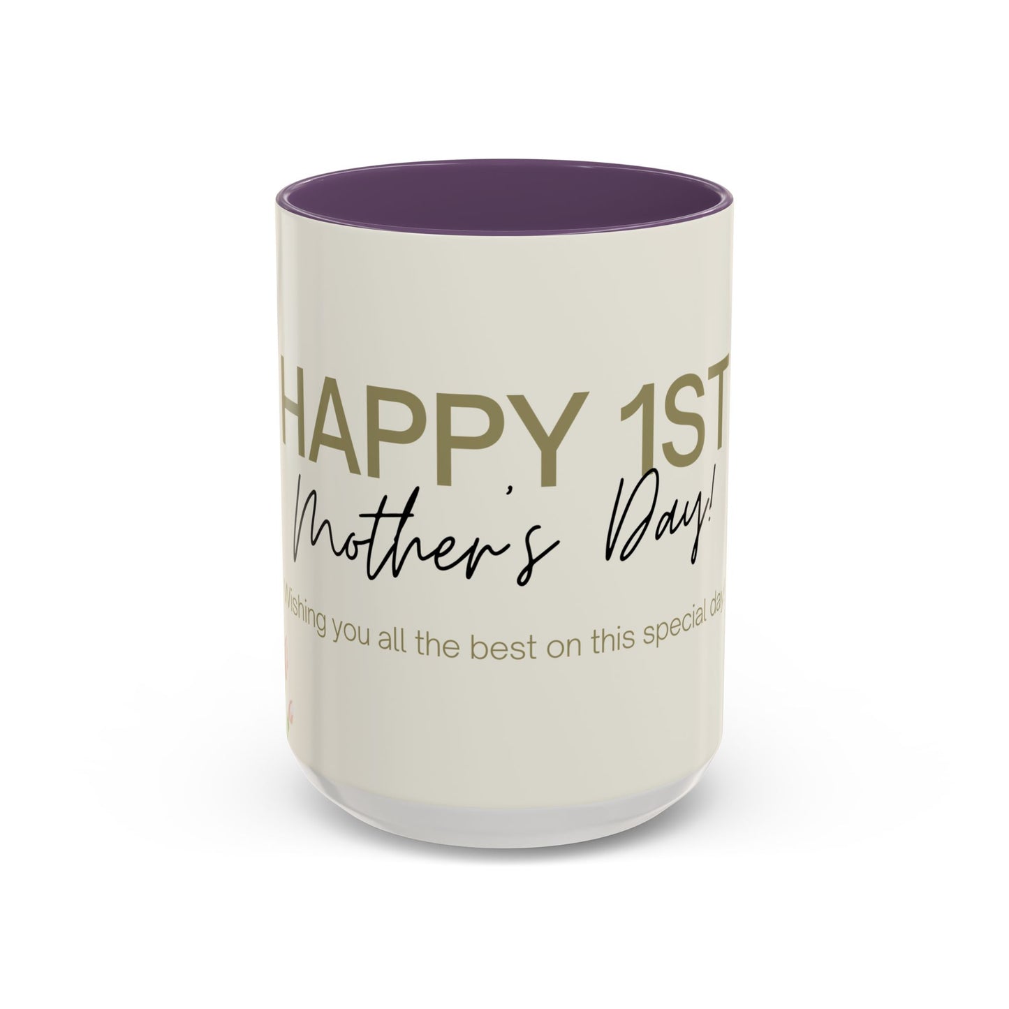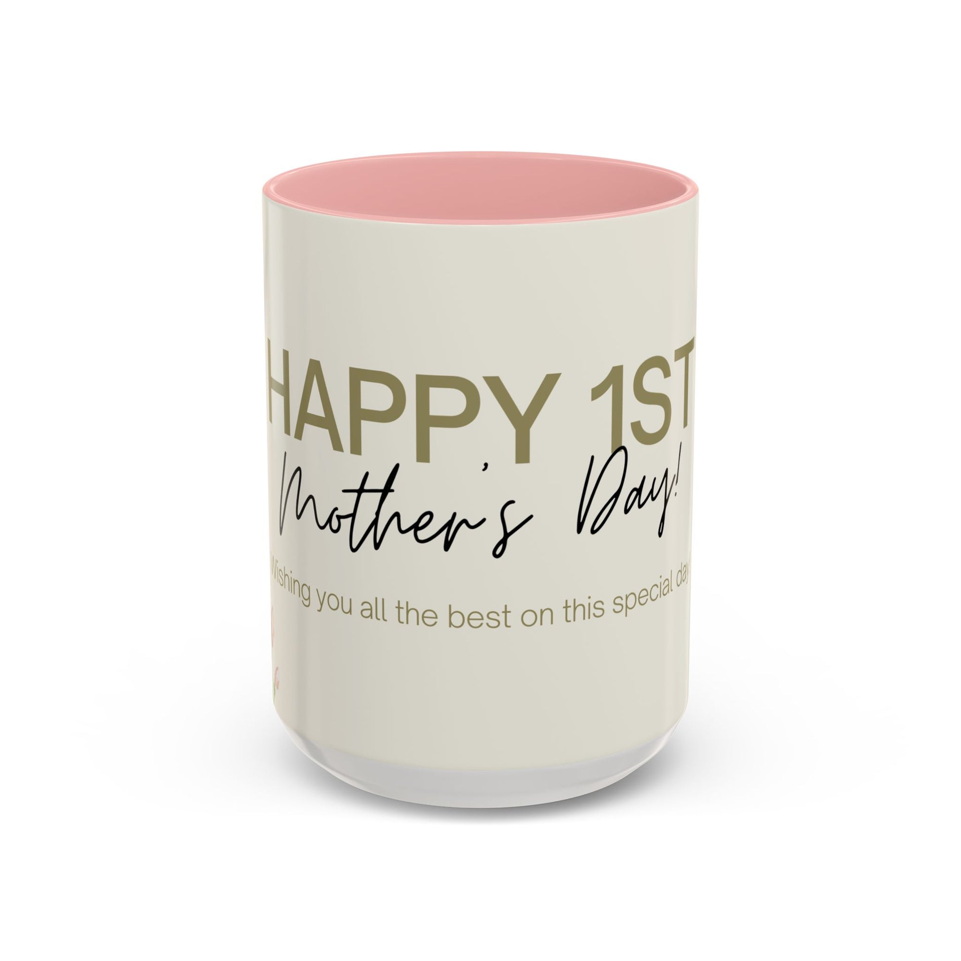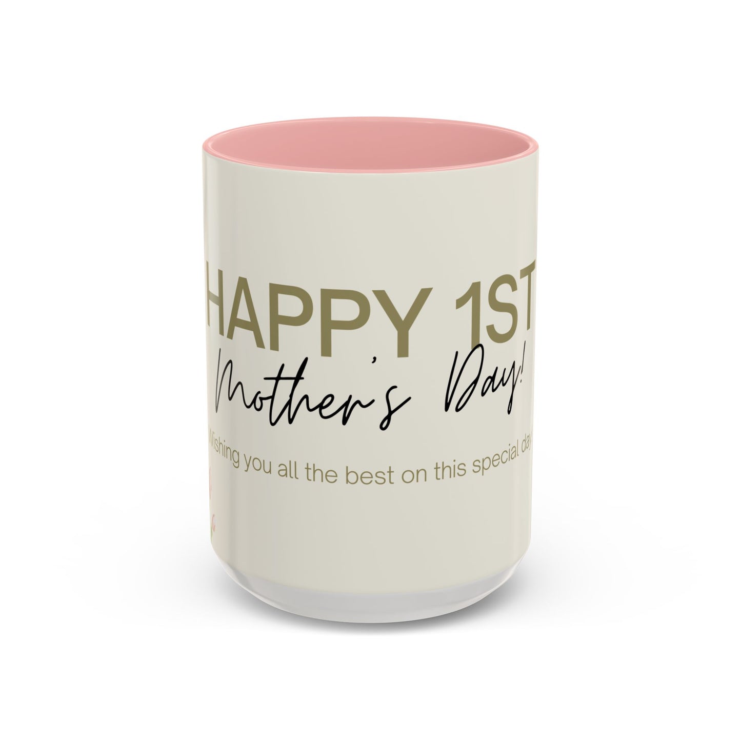 1st Mother's Day Accent Coffee Mug - Floral Design, Perfect Gift for New Moms - 12277