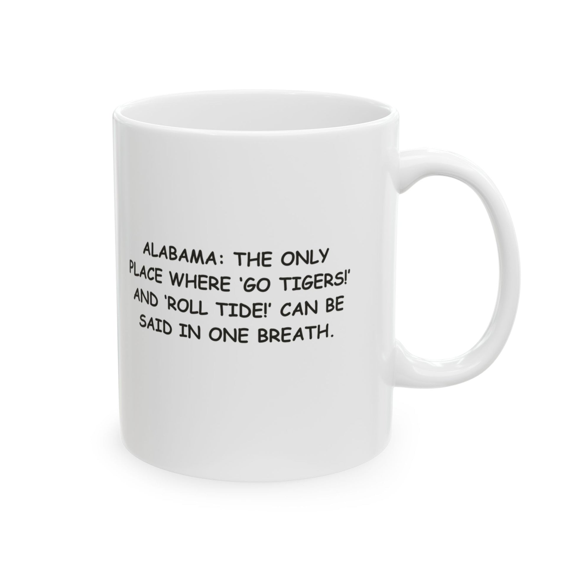 "Alabama: The only place where ‘Go Tigers!’ and ‘Roll Tide!’ can be said in one breath." Ceramic Mug - 11oz & 15oz - 12816