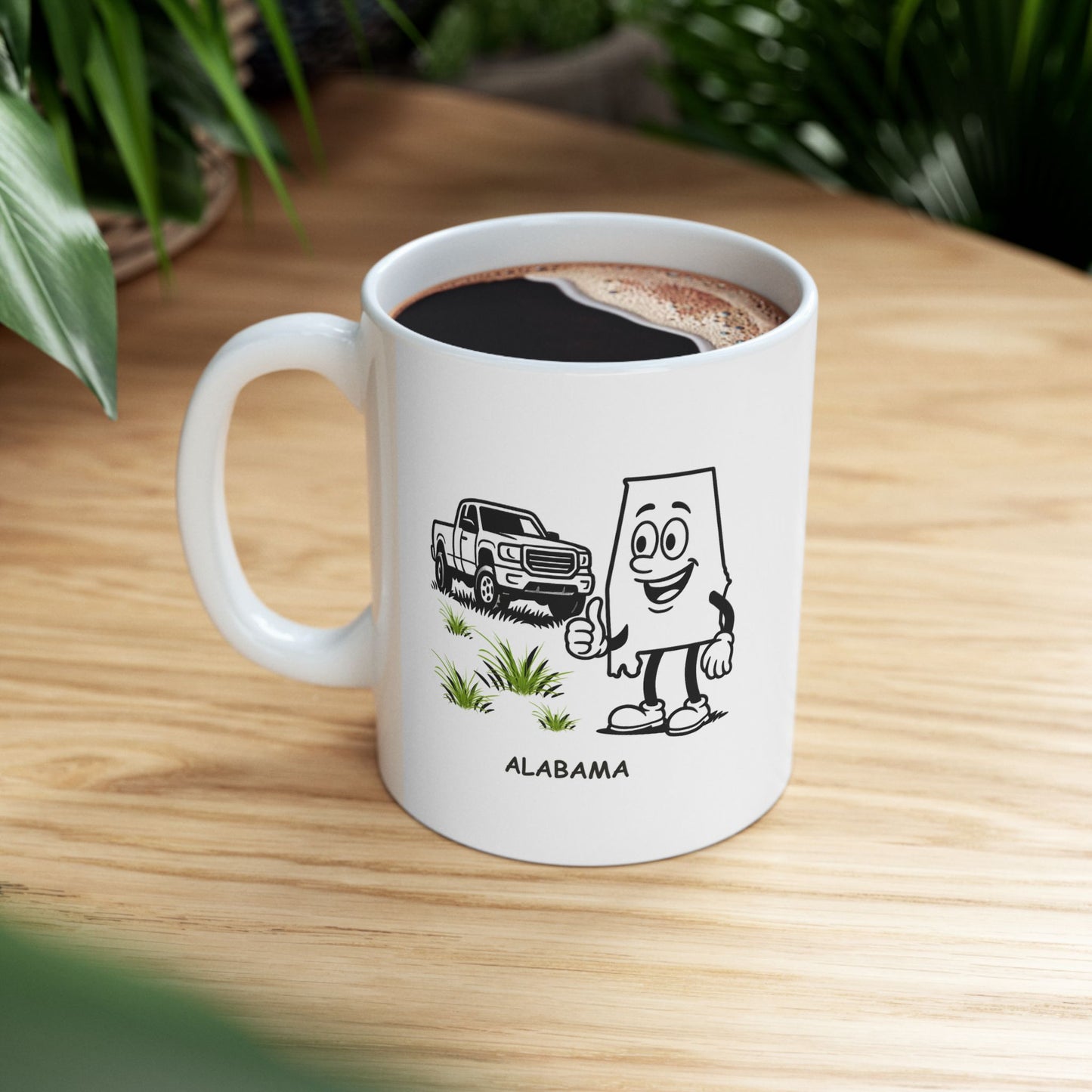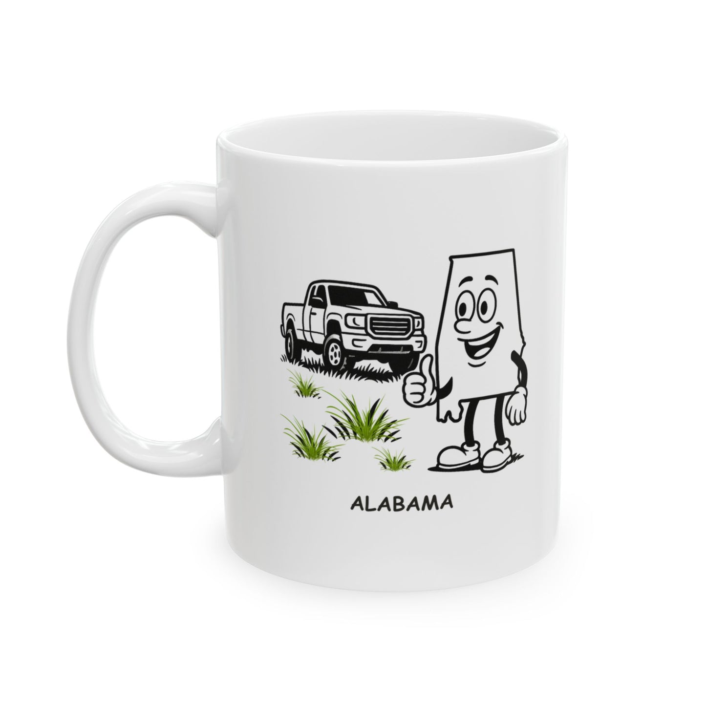 Capture the spirit of Alabama with this 'Alabama: The place where the grass is green, the trucks are big, and the smiles are bigger' ceramic mug. Whether you’re enjoying a morning coffee or an afternoon tea, this mug brings a touch of Southern charm and hospitality to your day. A perfect reminder of the lush landscapes, friendly people, and the bigger-than-life attitude that define Alabama