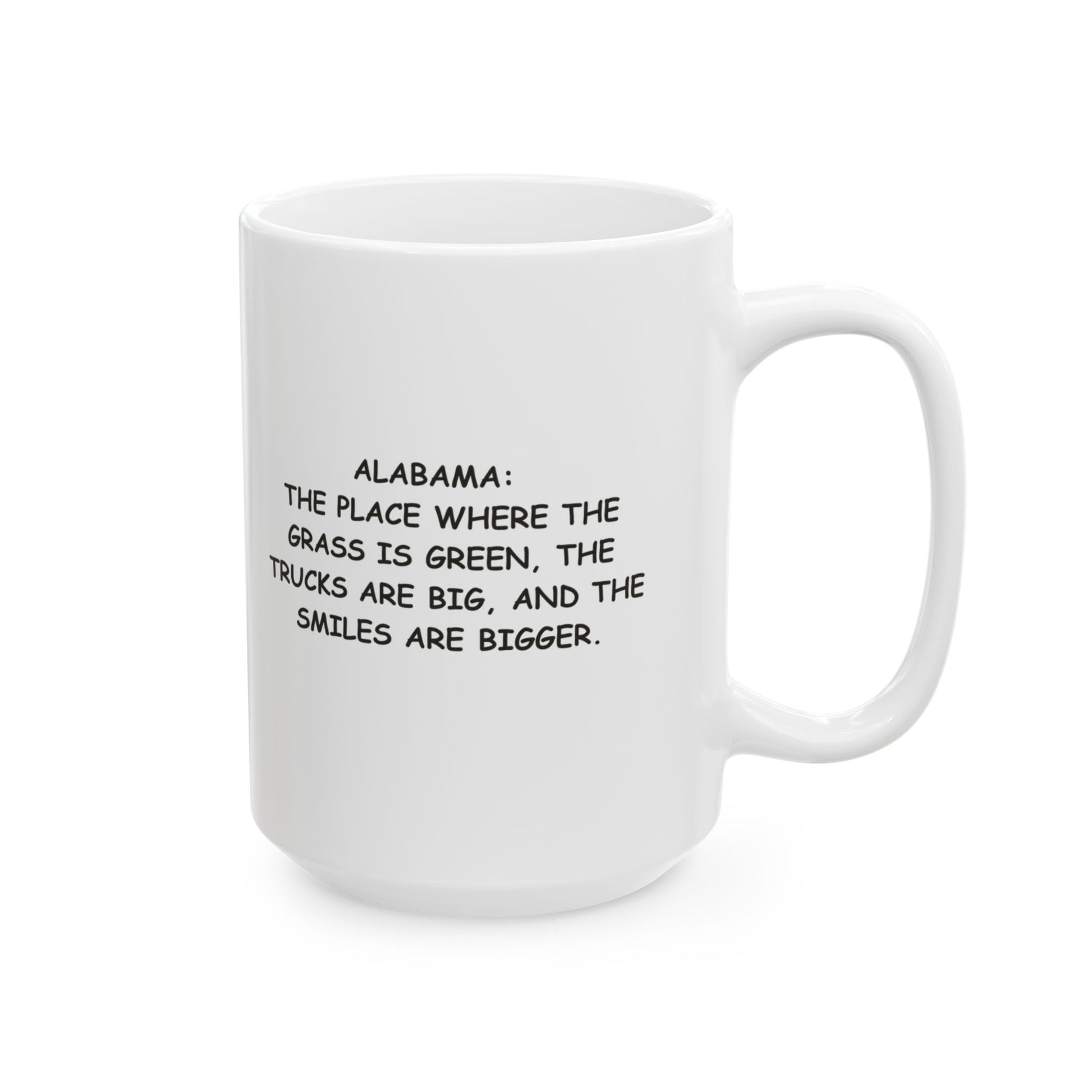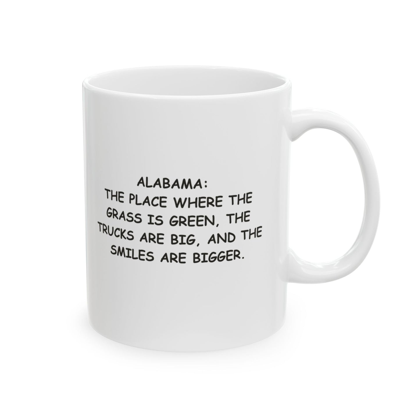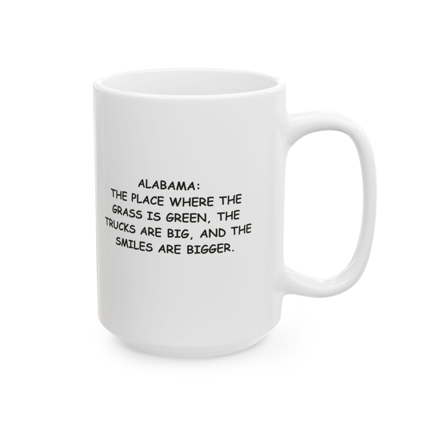 "Alabama: The place where the grass is green, the trucks are big, and the smiles are bigger." Ceramic Mug - 12819