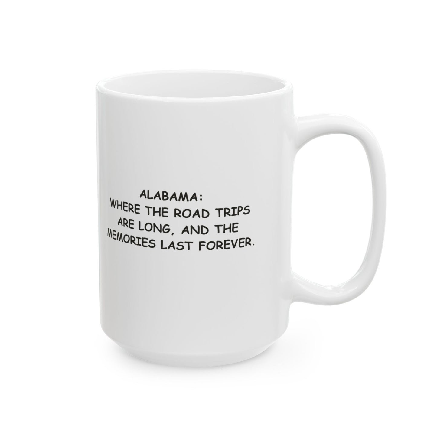 "Alabama: Where the road trips are long, and the memories last forever." Ceramic Mug - 11oz/15oz - 12810
