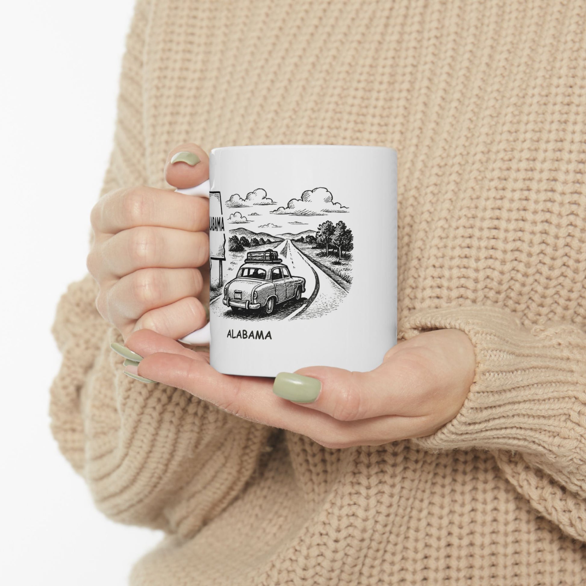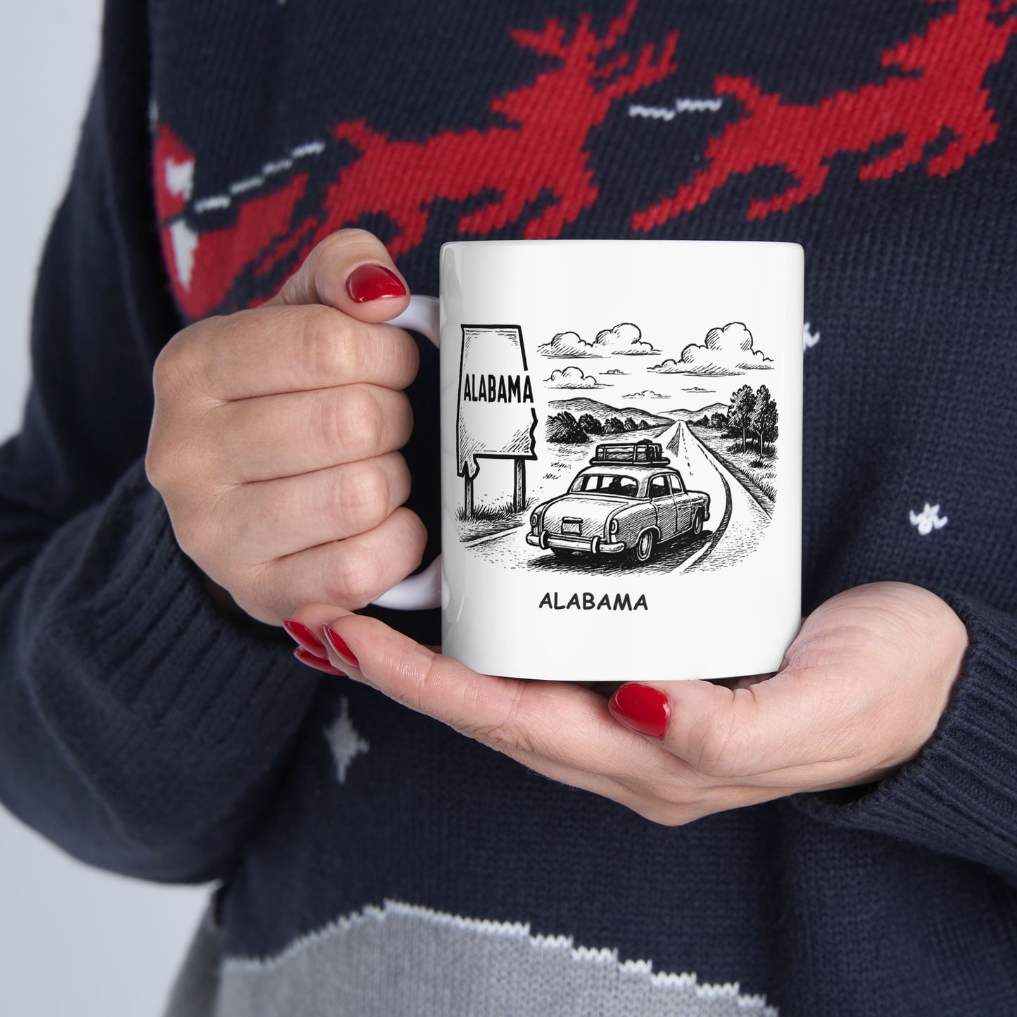 Hit the road with this 'Alabama: Where the road trips are long, and the memories last forever' ceramic mug. Perfect for those who love exploring the heart of the South, this mug captures the spirit of Alabama's scenic drives and unforgettable adventures. Available in 11oz and 15oz sizes, it’s ideal for sipping your favorite beverage while reminiscing about the long, memorable journeys that define Alabama.