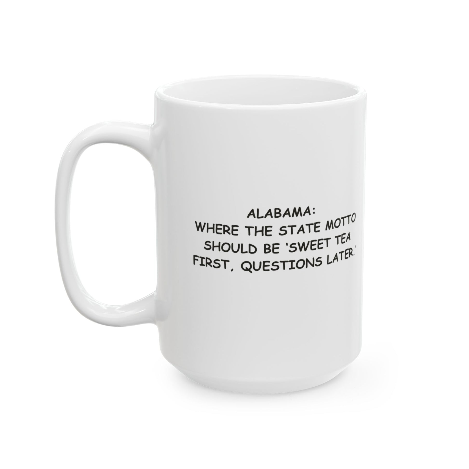 "Alabama: Where the state motto should be ‘Sweet tea first, questions later.’" Ceramic Mug - 11oz & 15oz - 12823