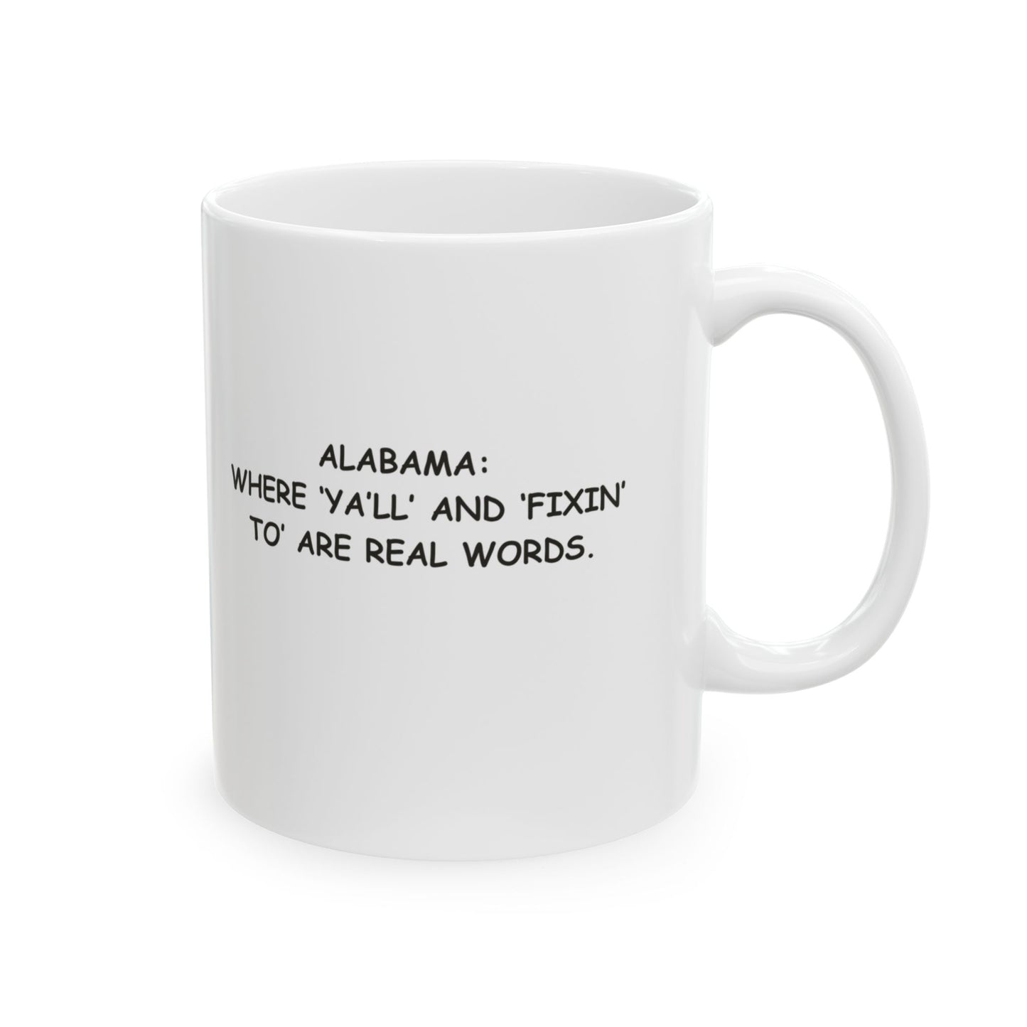 "Alabama: Where ‘ya’ll’ and ‘fixin’ to’ are real words." Ceramic Mug - 12815