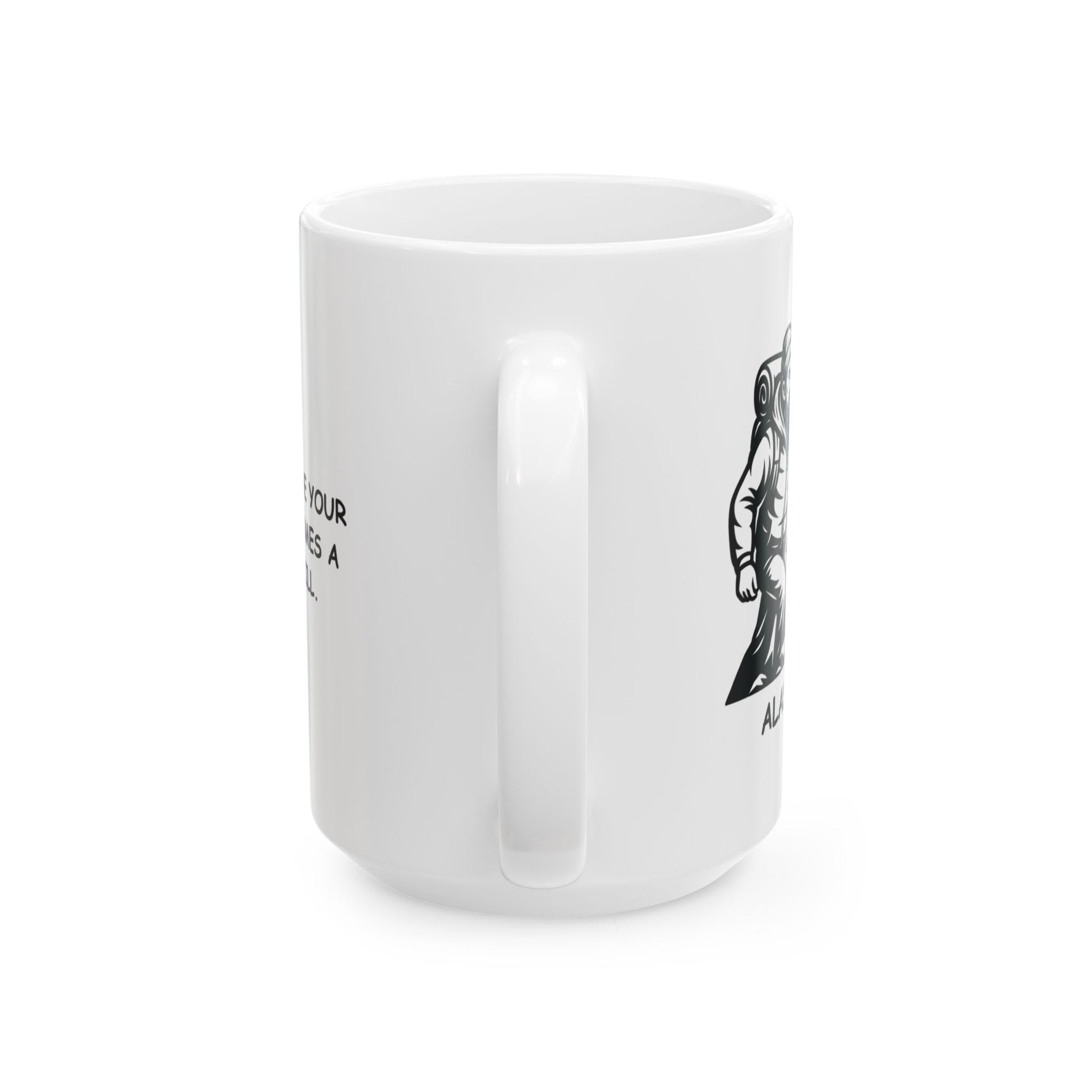 Adventure meets attitude with our “Alaska: The place where your vacation becomes a survival skill.” Ceramic Coffee Mug (11oz or 15oz). Perfect for thrill-seekers, nature lovers, and anyone who’s ever packed bear spray next to their travel snacks. This mug captures the wild charm of Alaska—where beauty is breathtaking, and so is the weather.