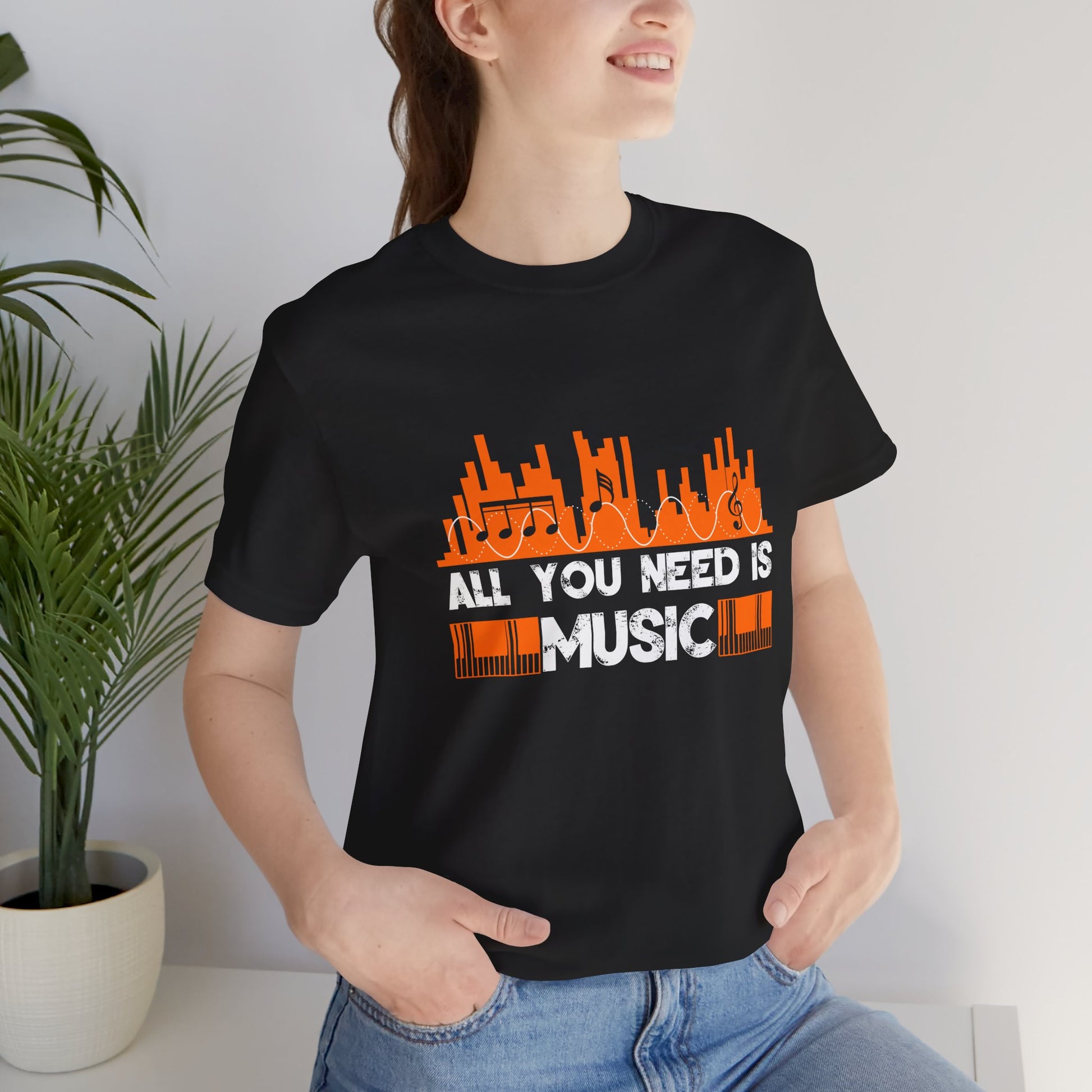 Immerse yourself in the rhythm of life with our "All You Need Is Music" Unisex Jersey Short Sleeve Tee! Perfect for music lovers who believe in the power of melodies to uplift and inspire, this tee blends comfort with a simple yet profound message.