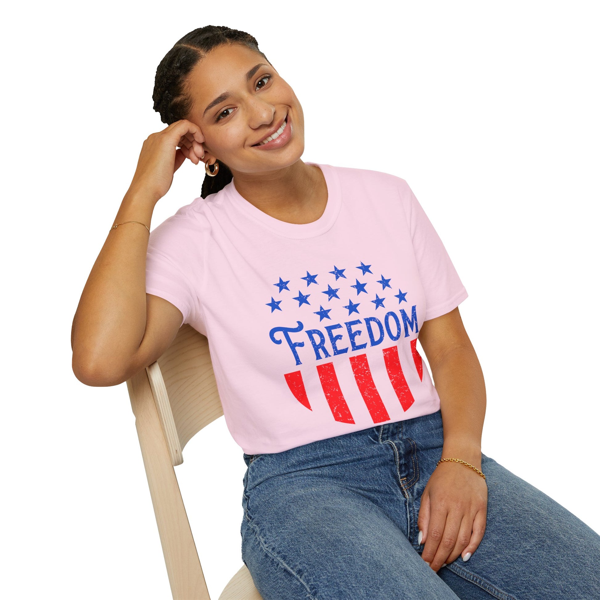 Embrace your individuality with this stylish unisex softstyle t-shirt, perfect for expressing your values and celebrating freedom. The vibrant design, adorned with stars and stripes, captures a spirit of patriotism, making it an ideal choice for Independence Day, Memorial Day, or any casual gathering. This t-shirt seamlessly blends comfort and style, making it a go-to wardrobe staple.