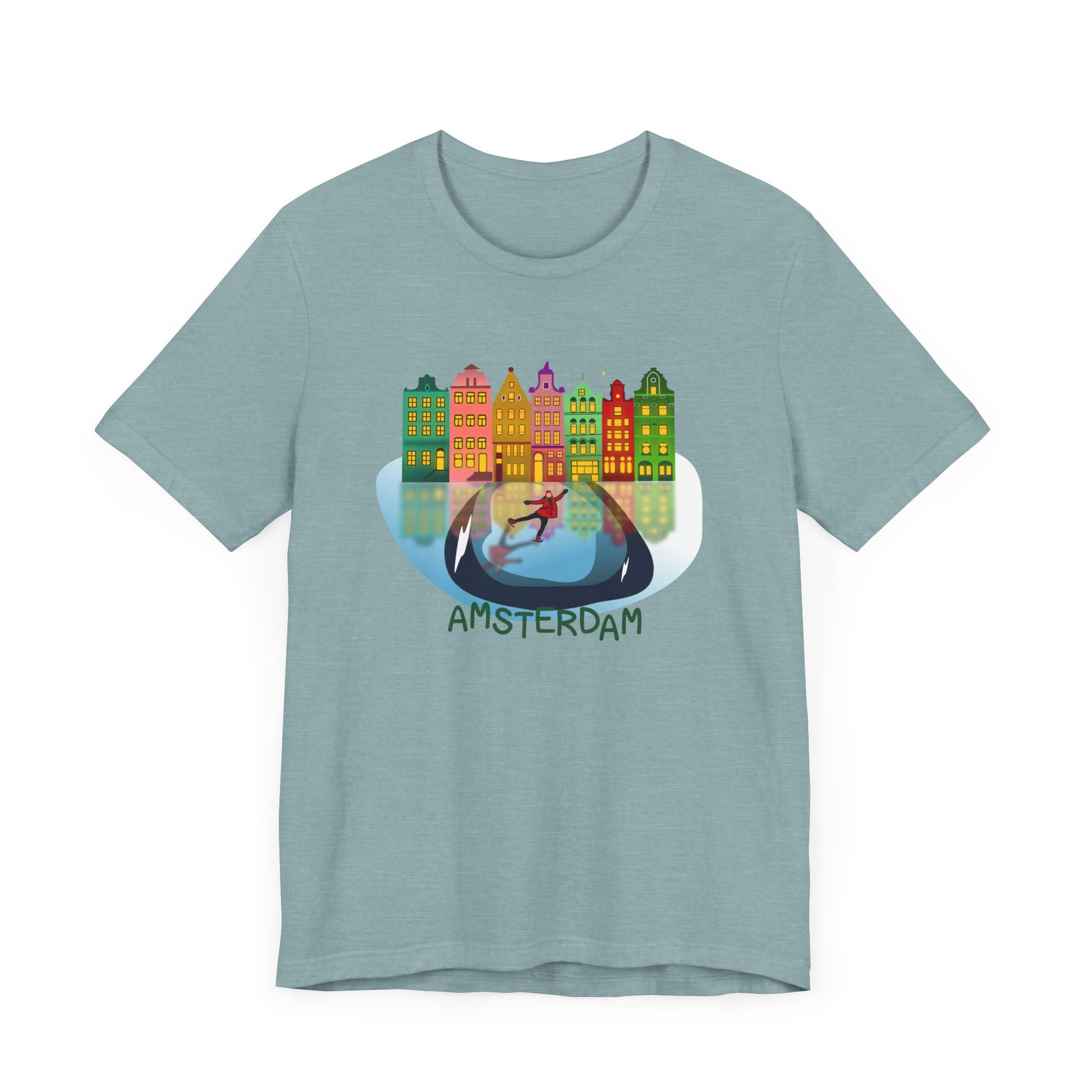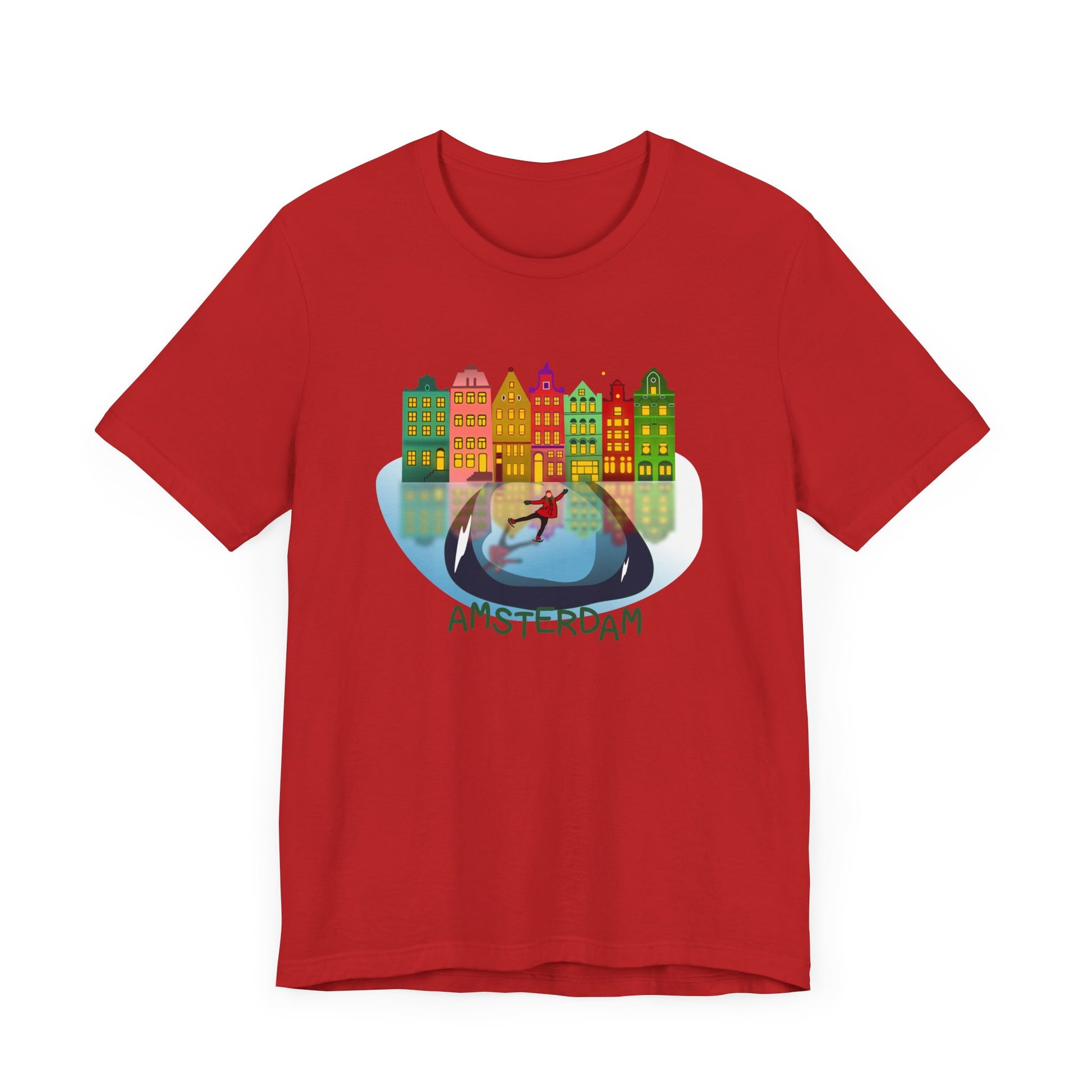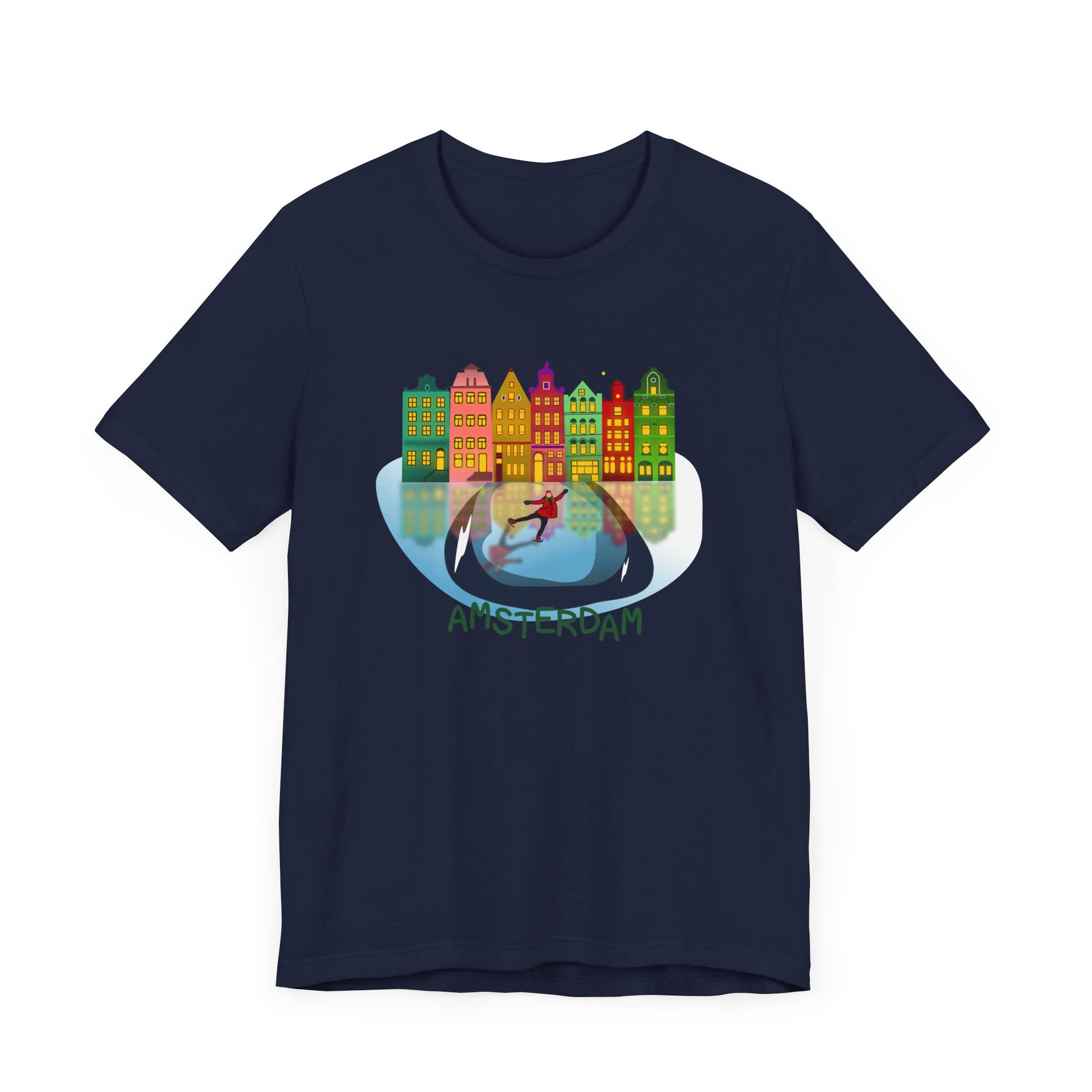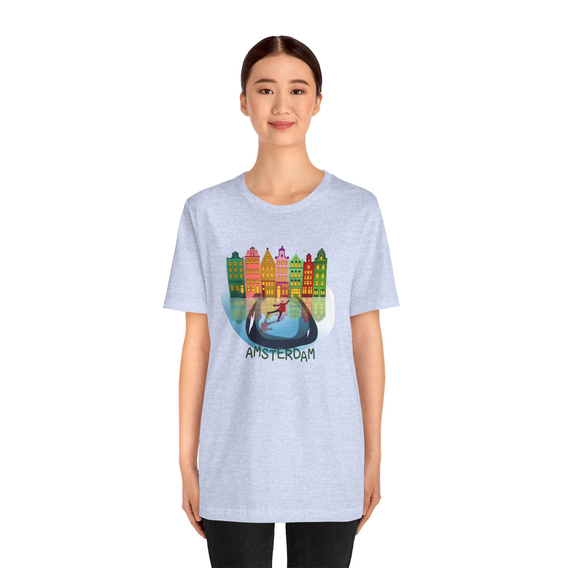 Introducing this eye-catching Unisex Jersey Short Sleeve Tee, perfect for those who love to showcase their unique style. The vibrant design, inspired by the charming architecture of Amsterdam, brings a cheerful vibe that makes this tee a standout piece in any casual wardrobe. Ideal for everyday wear, whether you're meeting friends at the café or enjoying a leisurely stroll, this tee adds a splash of personality to any outfit. It’s perfect for travelers, city lovers, and anyone who appreciates art and culture. This shirt makes a thoughtful gift for special occasions such as birthdays, holidays, or just to brighten someone's day. Wear it for a laid-back day or accessorize for a semi-formal event, fitting seamlessly into your life and celebrations.