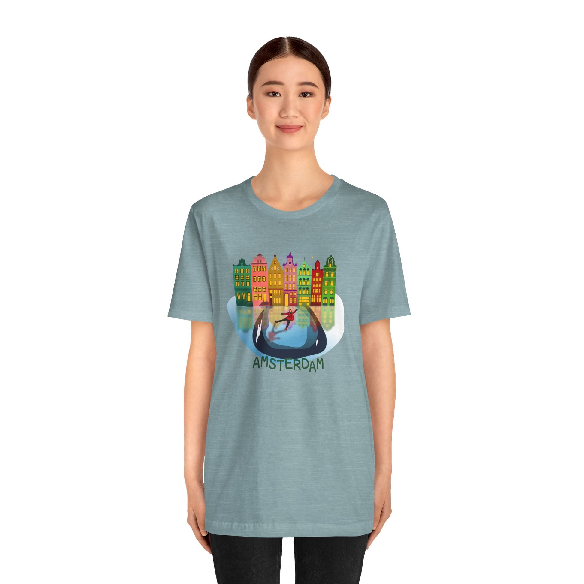 Celebrate the charm of Amsterdam with this stylish and comfortable unisex jersey short sleeve tee. Featuring a sleek design inspired by the city's iconic canals, historic architecture, and laid-back atmosphere, this tee is perfect for travel lovers, city explorers, and anyone who appreciates Amsterdam’s unique vibe. Whether you're strolling along the canals, biking through the streets, or just enjoying a casual day out, this tee is your go-to choice for effortless style.