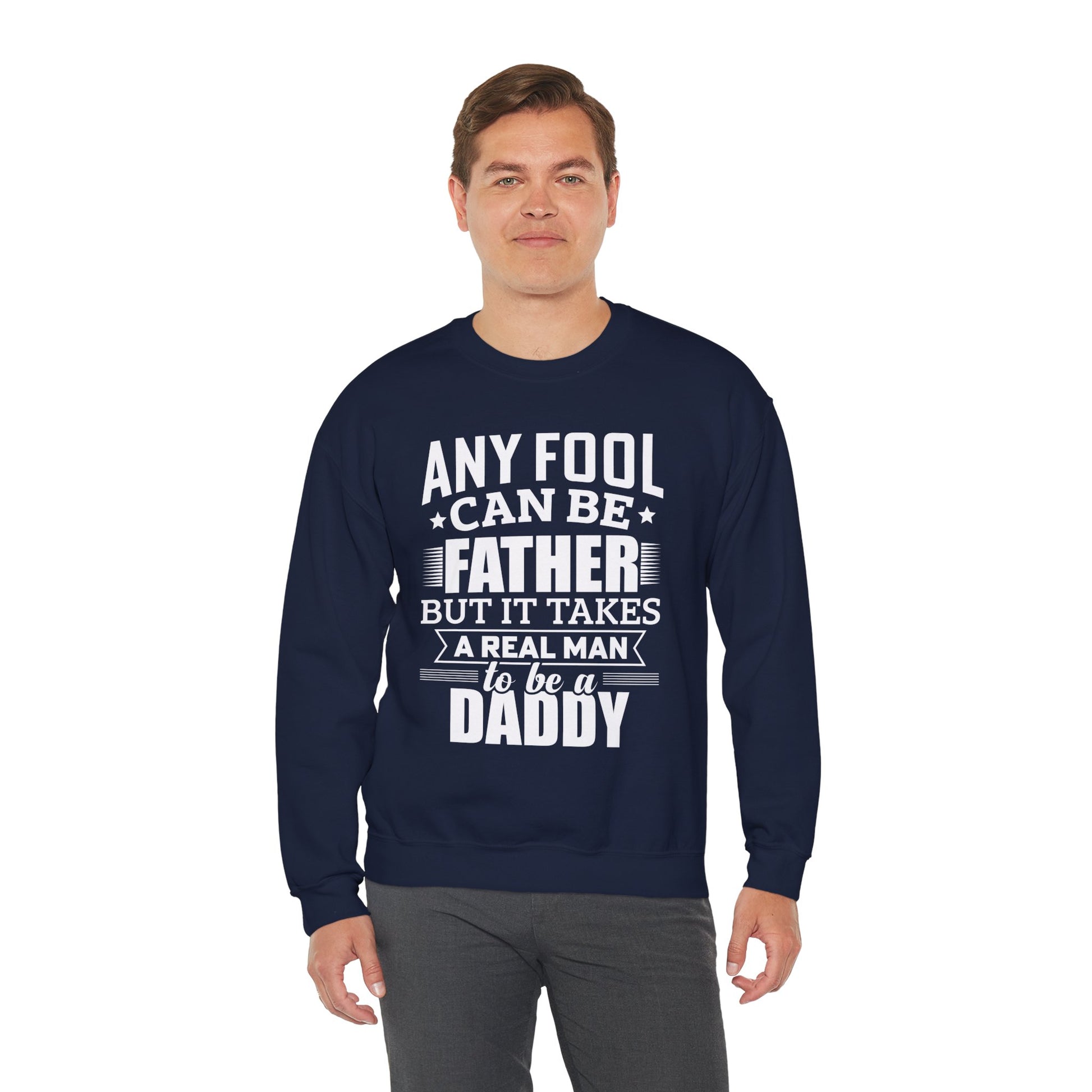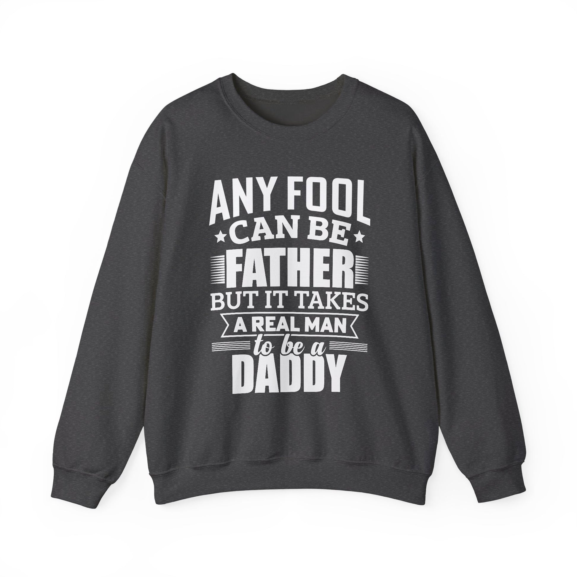 Show some love for the real MVPs with this bold and heartfelt sweatshirt. Featuring the powerful quote, "Any Fool Can Be a Father, But It Takes a Real Man to Be a Daddy," this Unisex Heavy Blend™ Crewneck is perfect for the dads who truly show up.