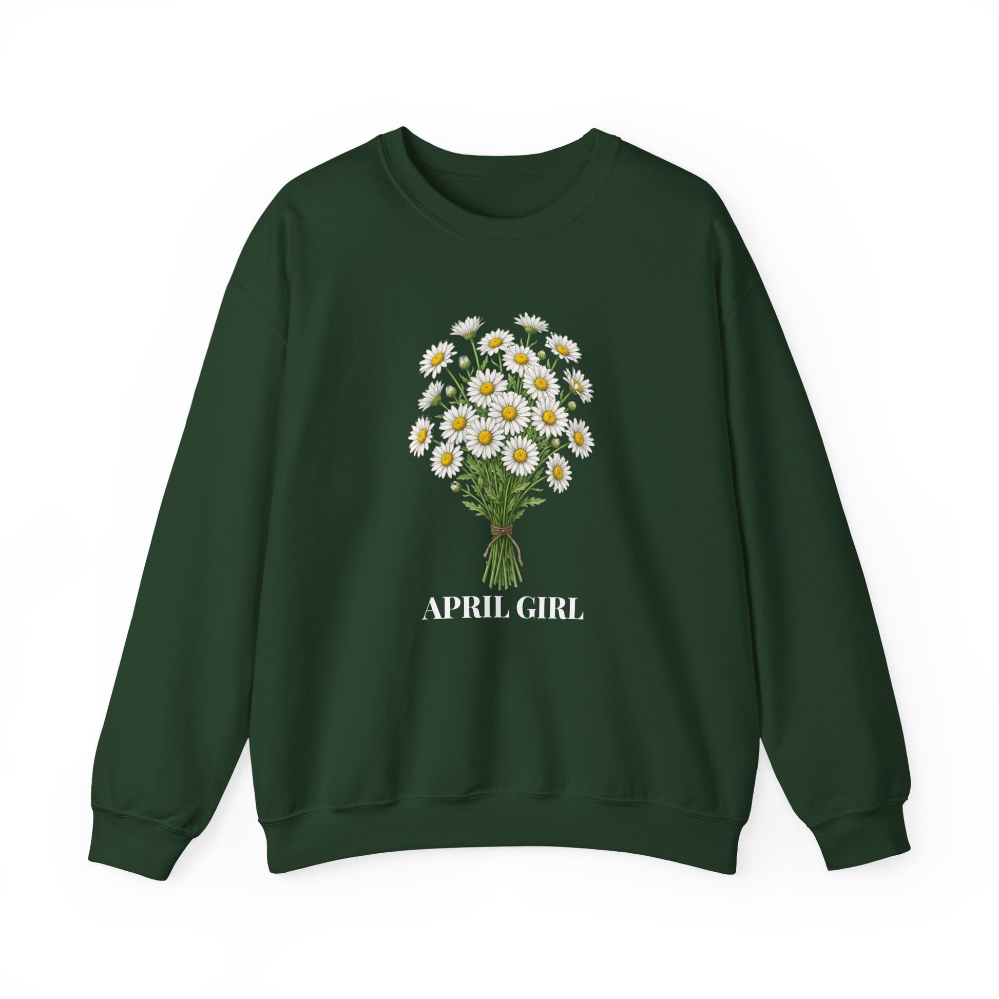 April Girl Daisy Bouquet Sweatshirt – Floral Birth Flower Crewneck for April Birthdays - 14841