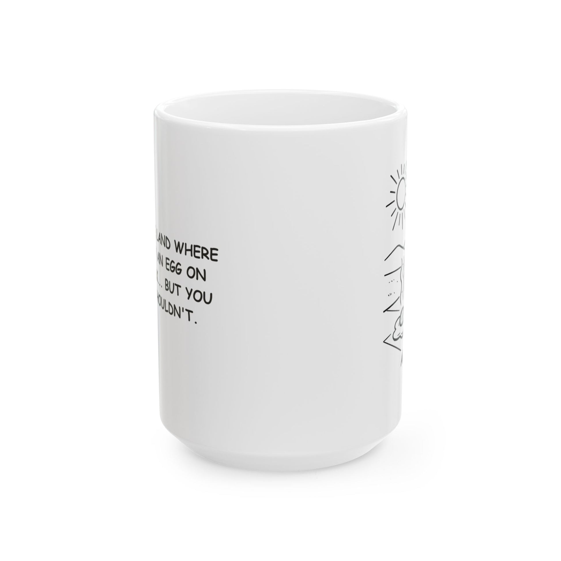 "Arizona: The land where you can fry an egg on the sidewalk... but you probably shouldn't." Ceramic Coffee Mug - 13197