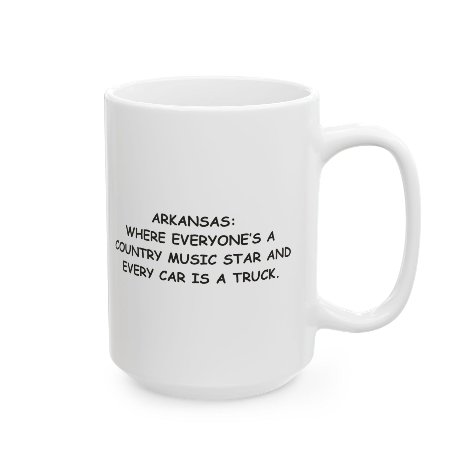 "Arkansas: Where everyone’s a country music star and every car is a truck." Ceramic Coffee Mug - 13327