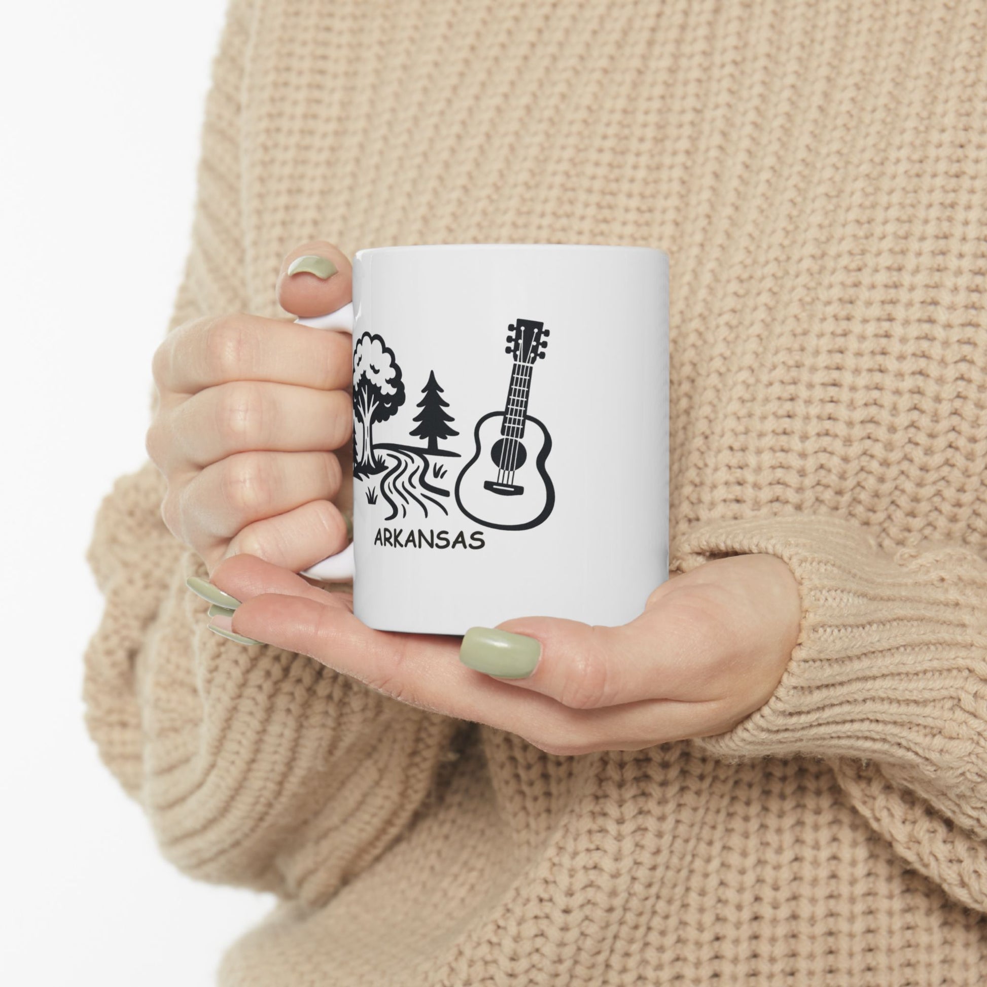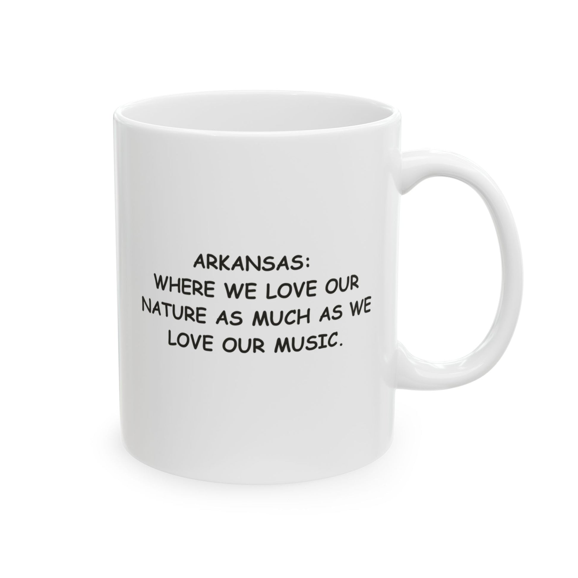 Celebrate the soul of the South with our “Arkansas: Where we love our nature as much as we love our music” ceramic mug. 🌲🎶