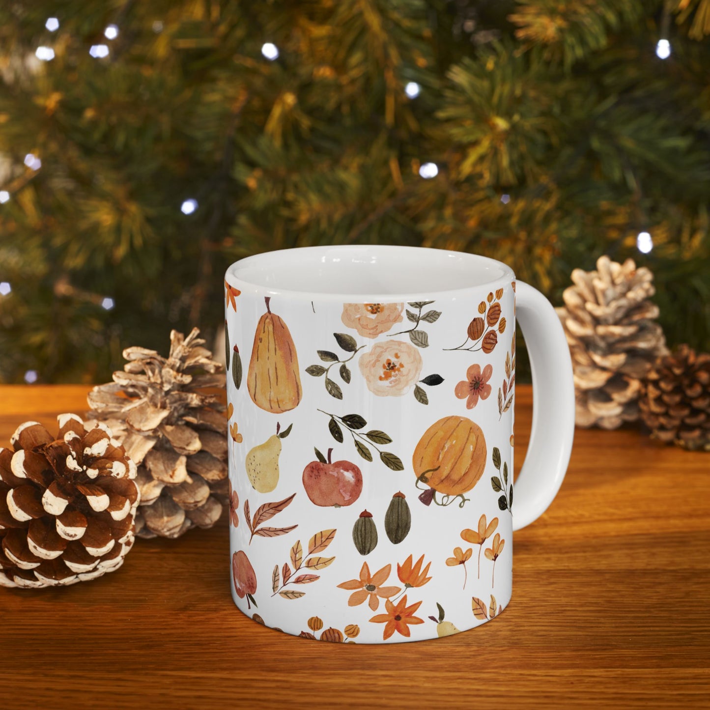 Choose between two sizes — 11oz for a comforting, smaller sip or 15oz for a generous pour of your warm drink. Crafted from premium ceramic, this mug offers durability and a smooth, glossy finish that will make your autumn experience even more special. Whether you're sipping hot cocoa, pumpkin spice lattes, or a comforting tea, this mug will enhance your seasonal enjoyment.
