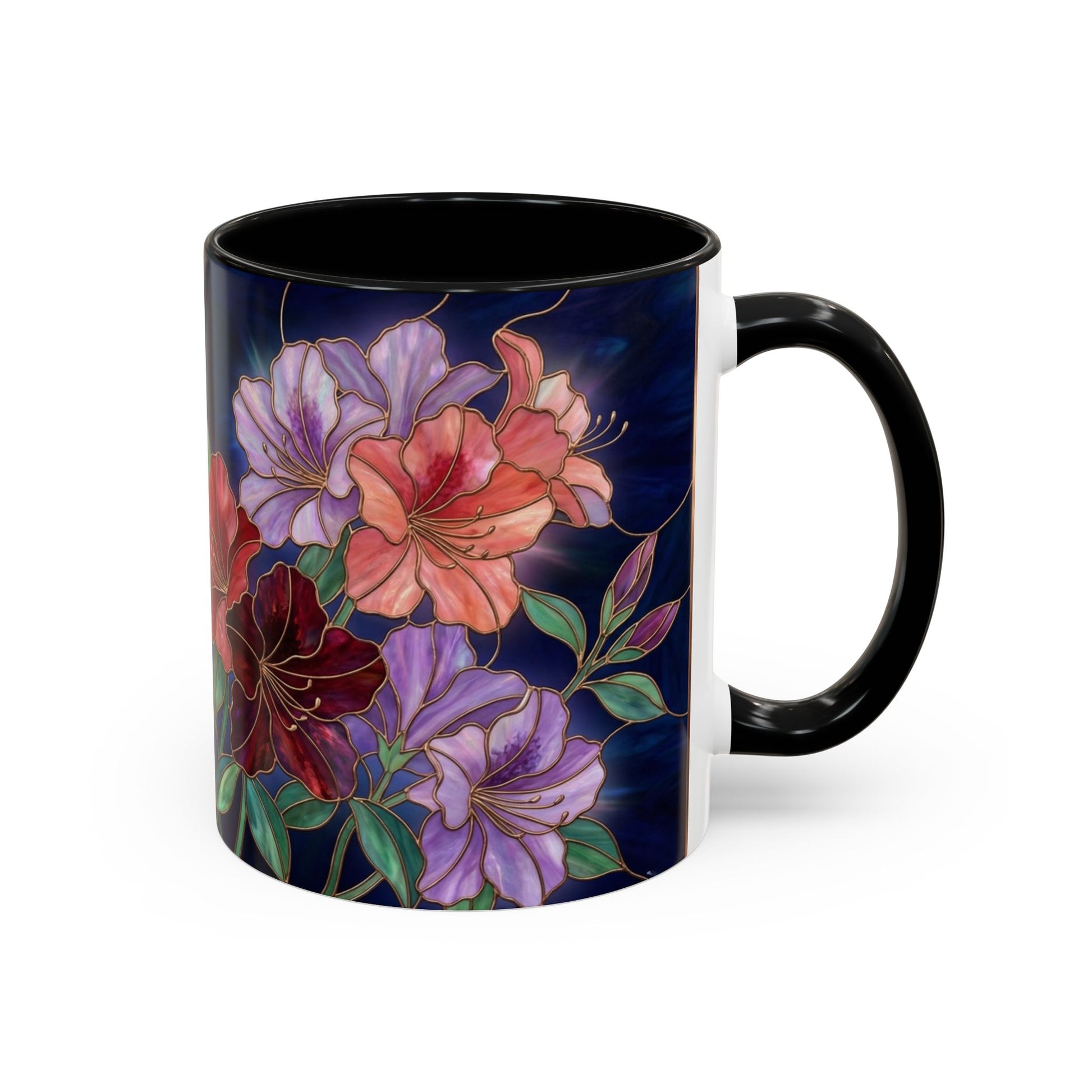 Azalea Floral Accent Coffee Mug — Stained Glass Design 11/15oz - 14554