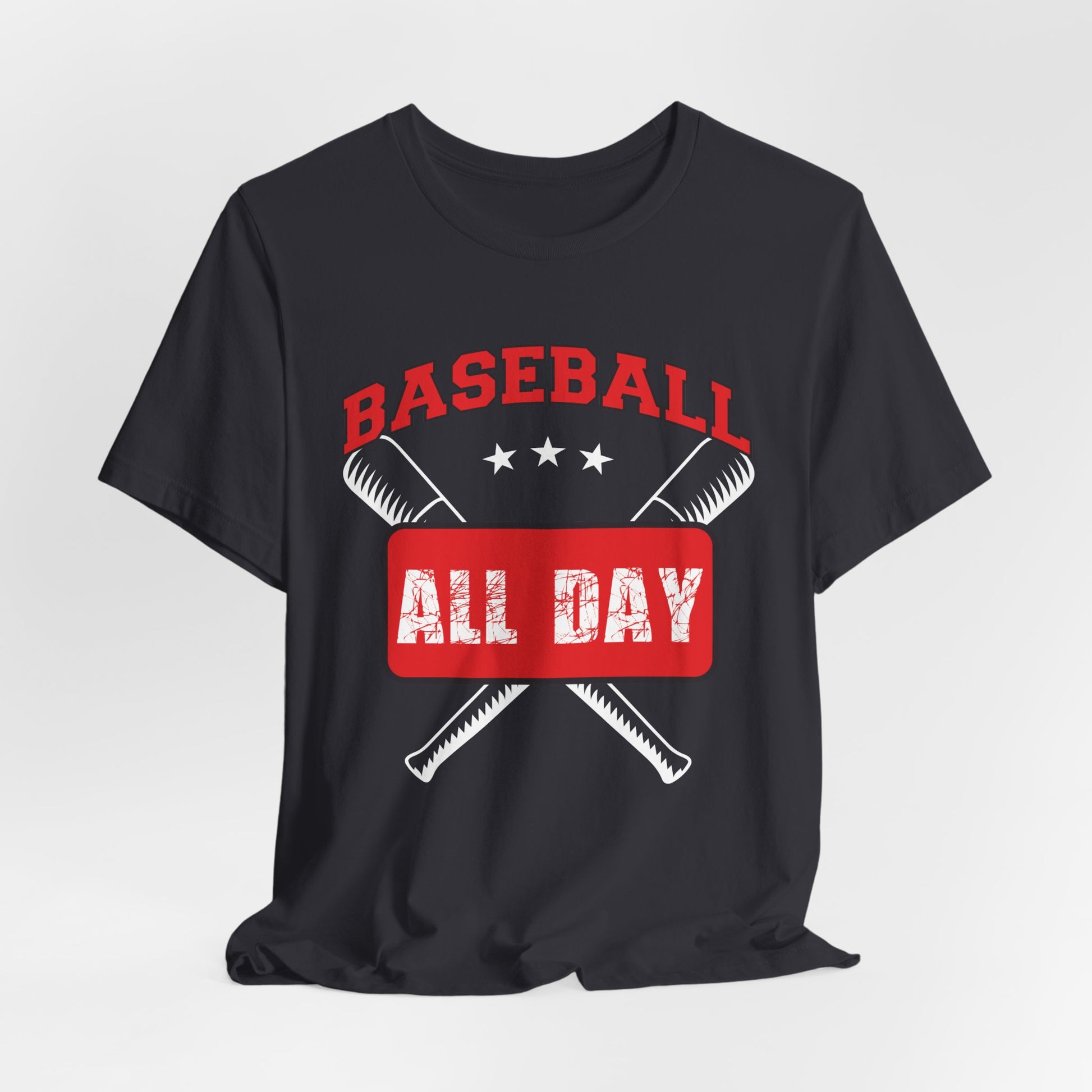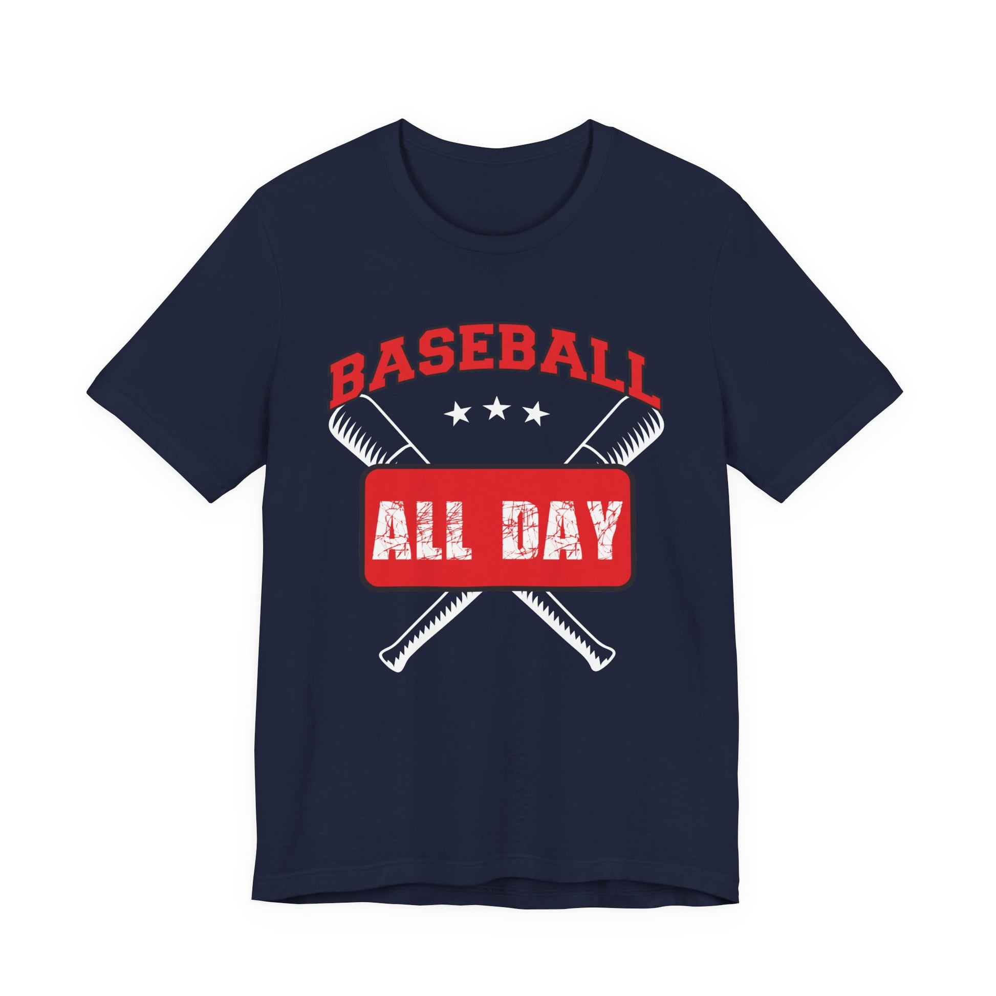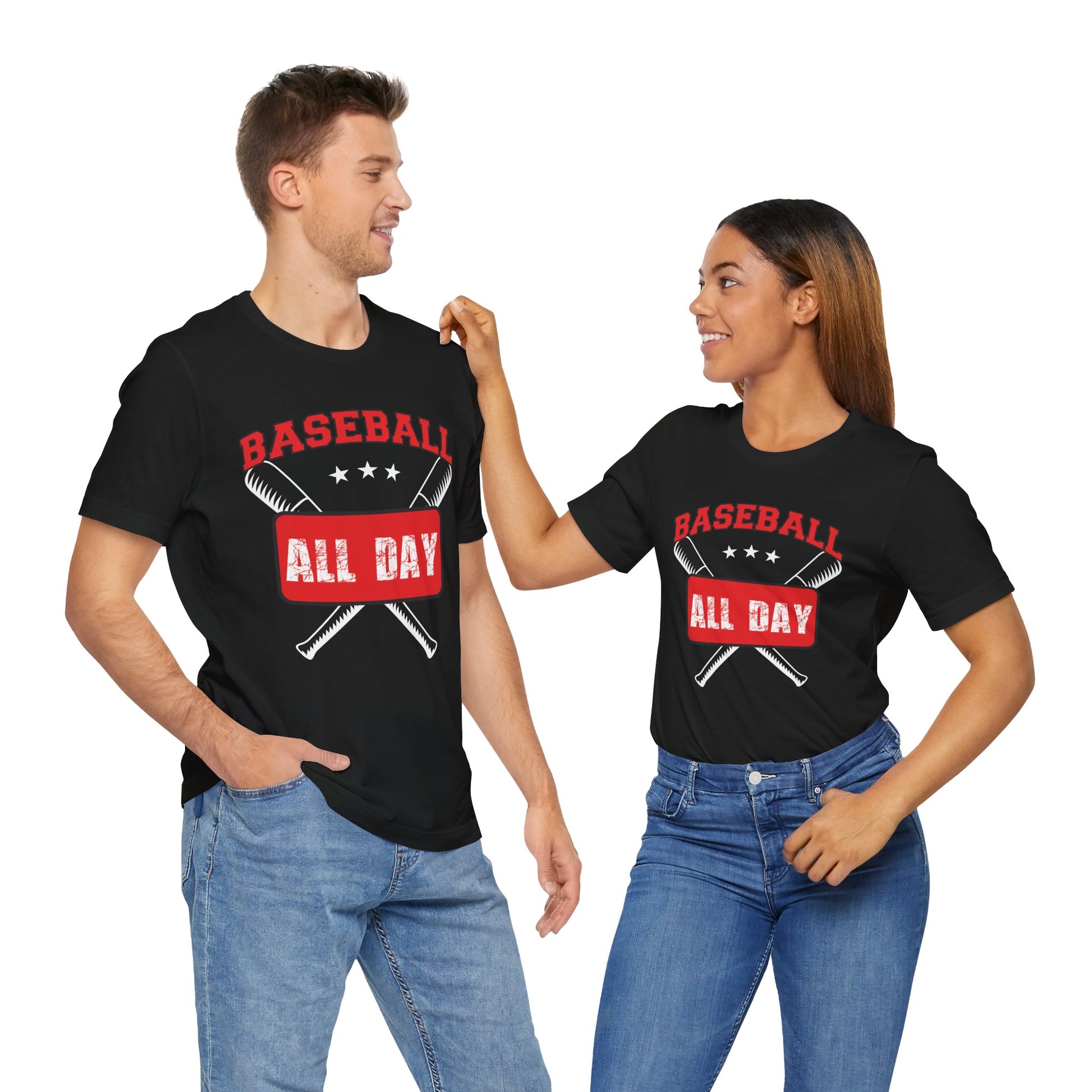 Celebrate your passion for baseball with the "Baseball All Day" unisex jersey short sleeve tee. Because for you, every day is a day to love and live baseball.