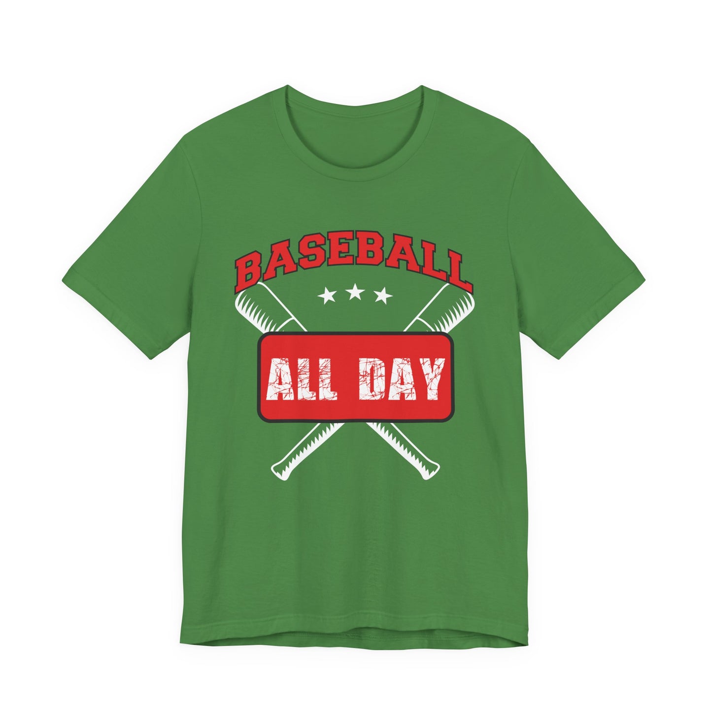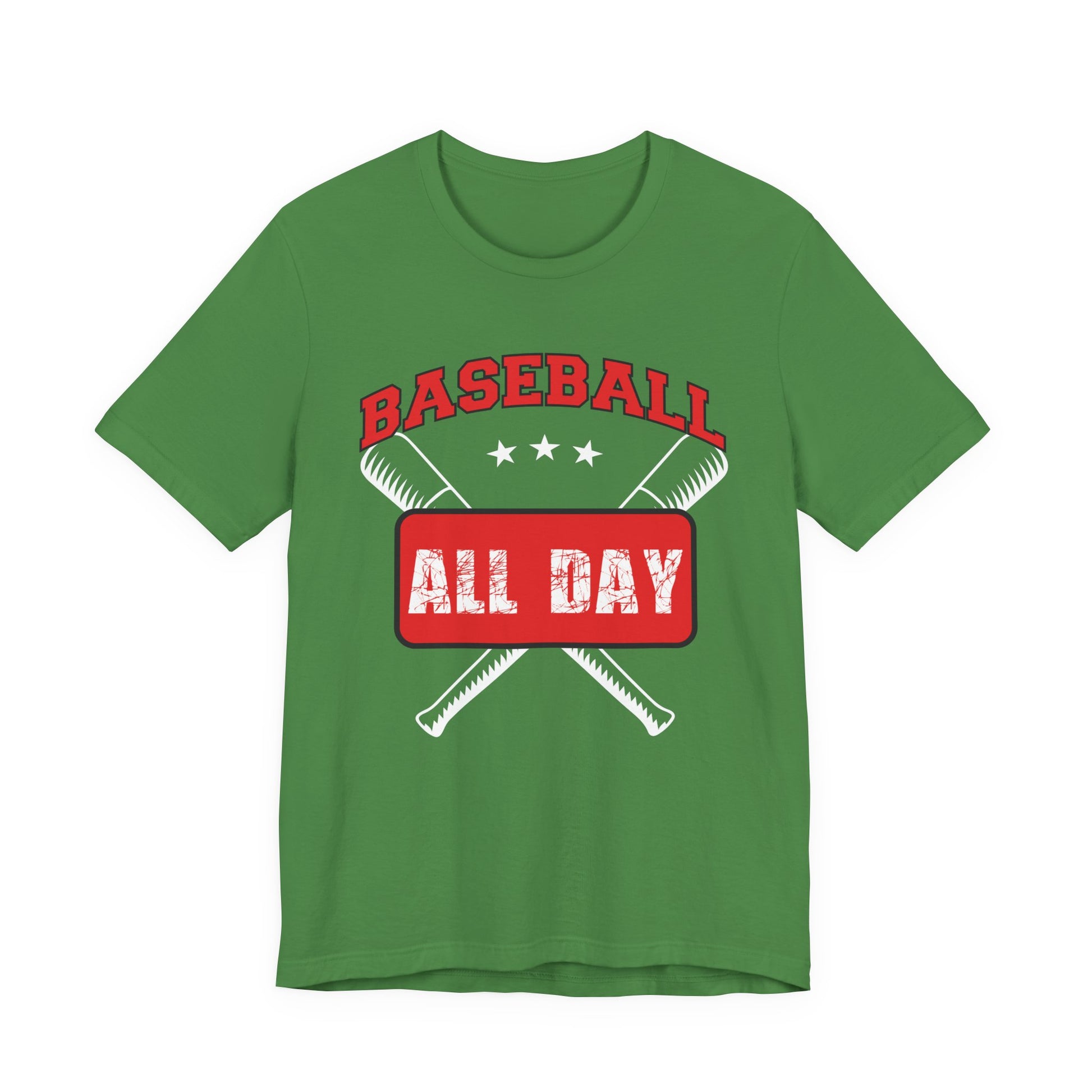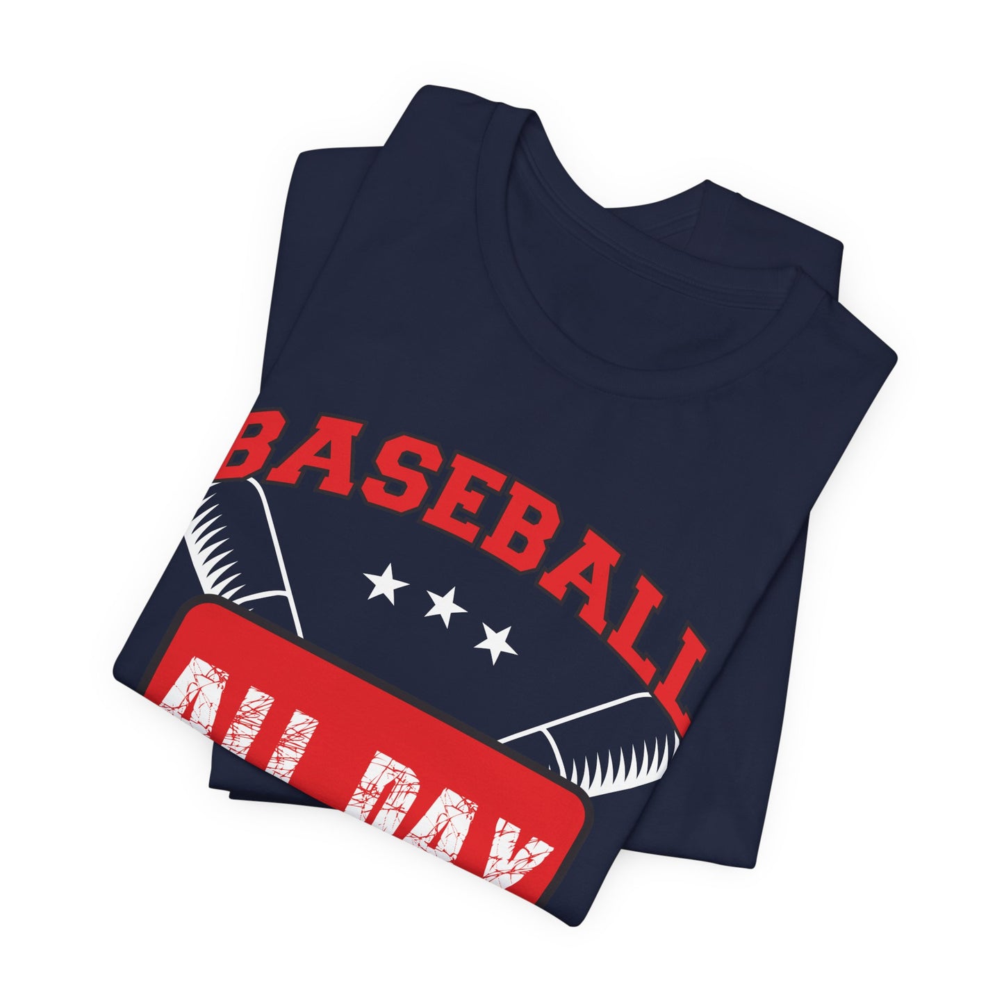 Celebrate your passion for baseball with the "Baseball All Day" unisex jersey short sleeve tee. Because for you, every day is a day to love and live baseball.