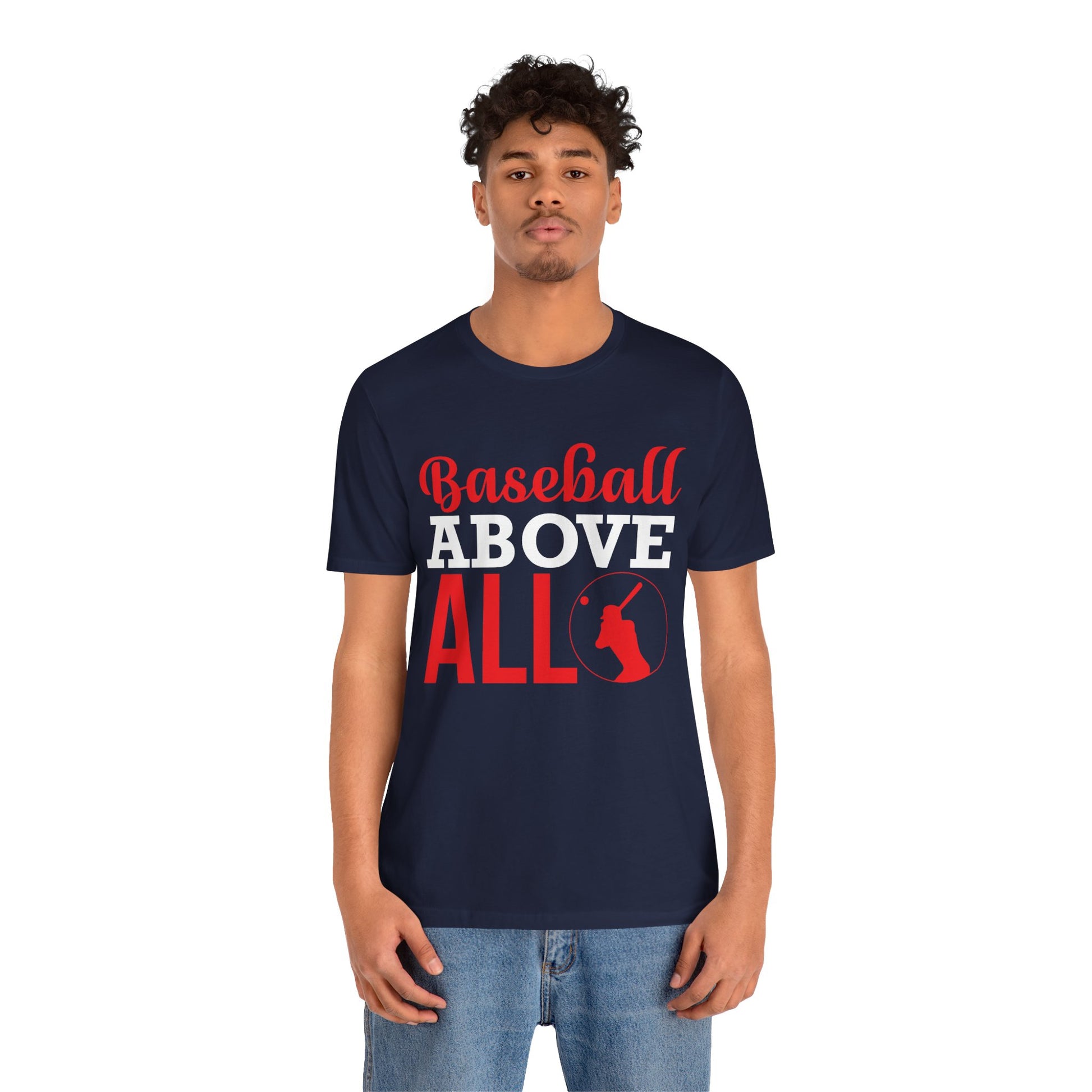 Show your love for America's favorite pastime with our "Baseball Above All" unisex jersey short sleeve tee. This shirt combines comfort, style, and a passion for the game in one perfect package.