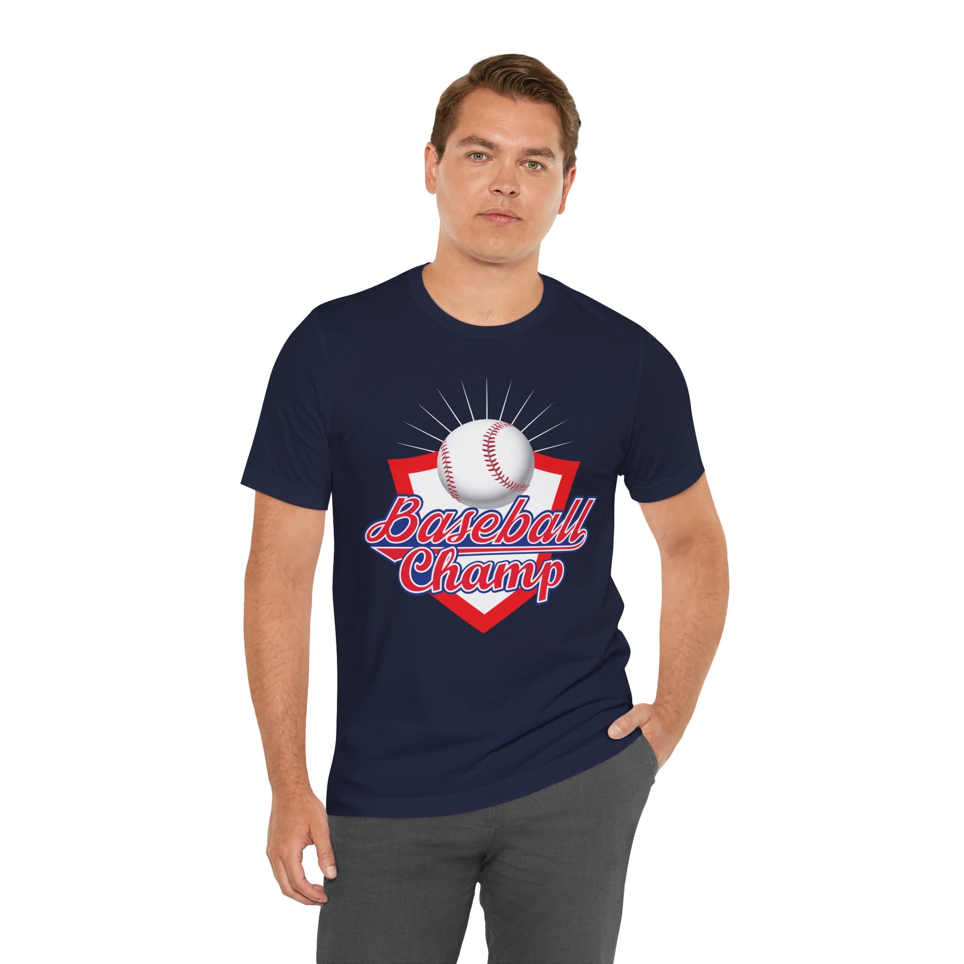 Show off your winning spirit with the "Baseball Champ" unisex jersey short sleeve tee. Because in baseball, every champion deserves to wear their title proudly.