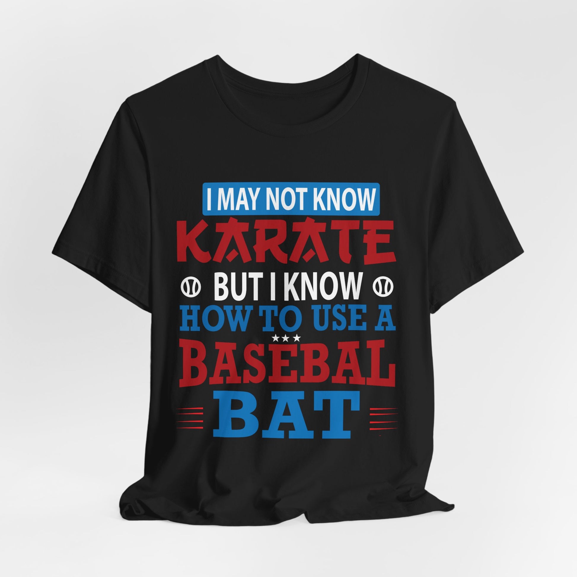 Why You'll Love It: Whether you're at the batting cages, hitting home runs, or enjoying the game with friends, the "I May Not Know Karate But I Know How To Use Baseball Bat" tee is a fun and stylish way to express your passion for baseball. Its high-quality fabric and witty design make it a favorite among players and fans alike.