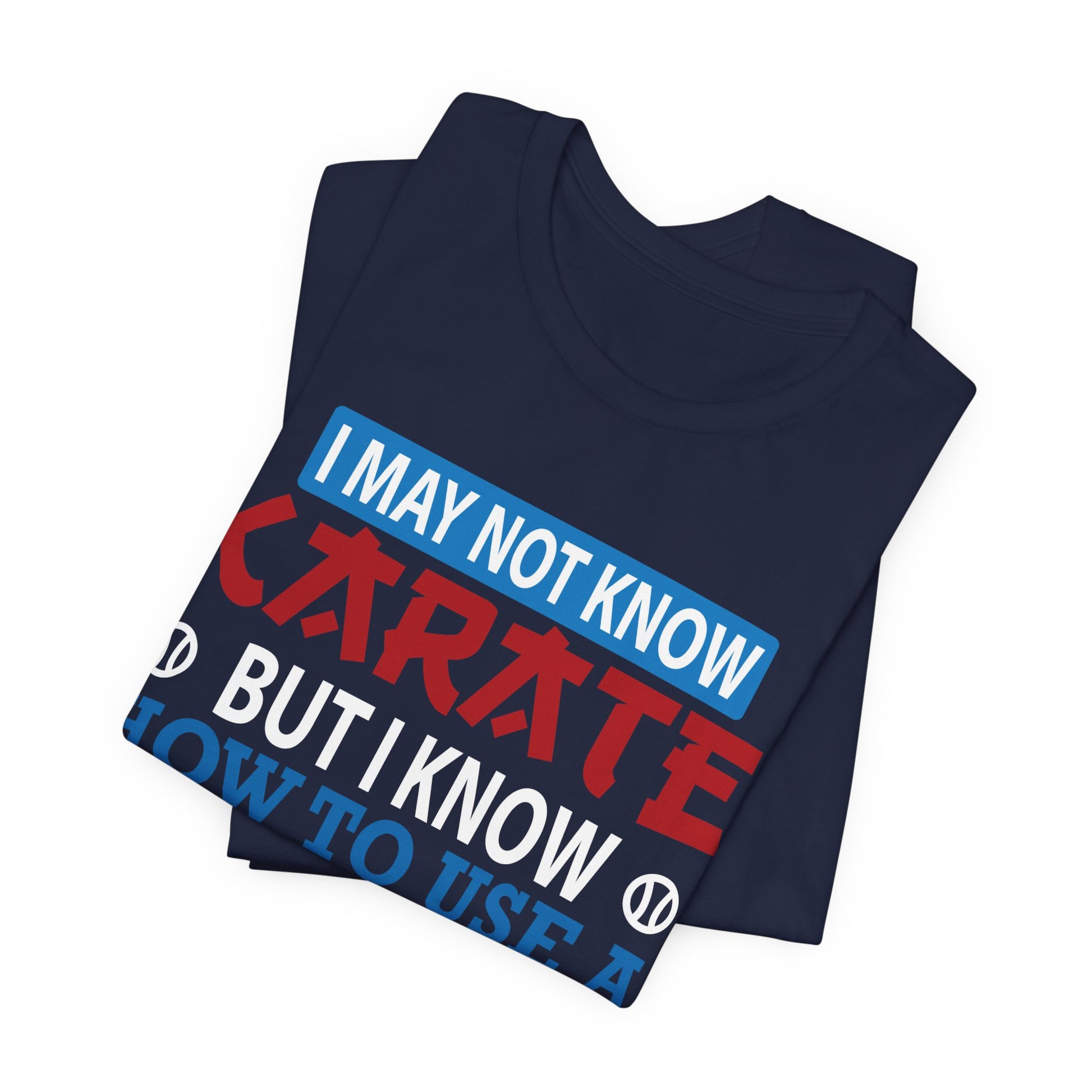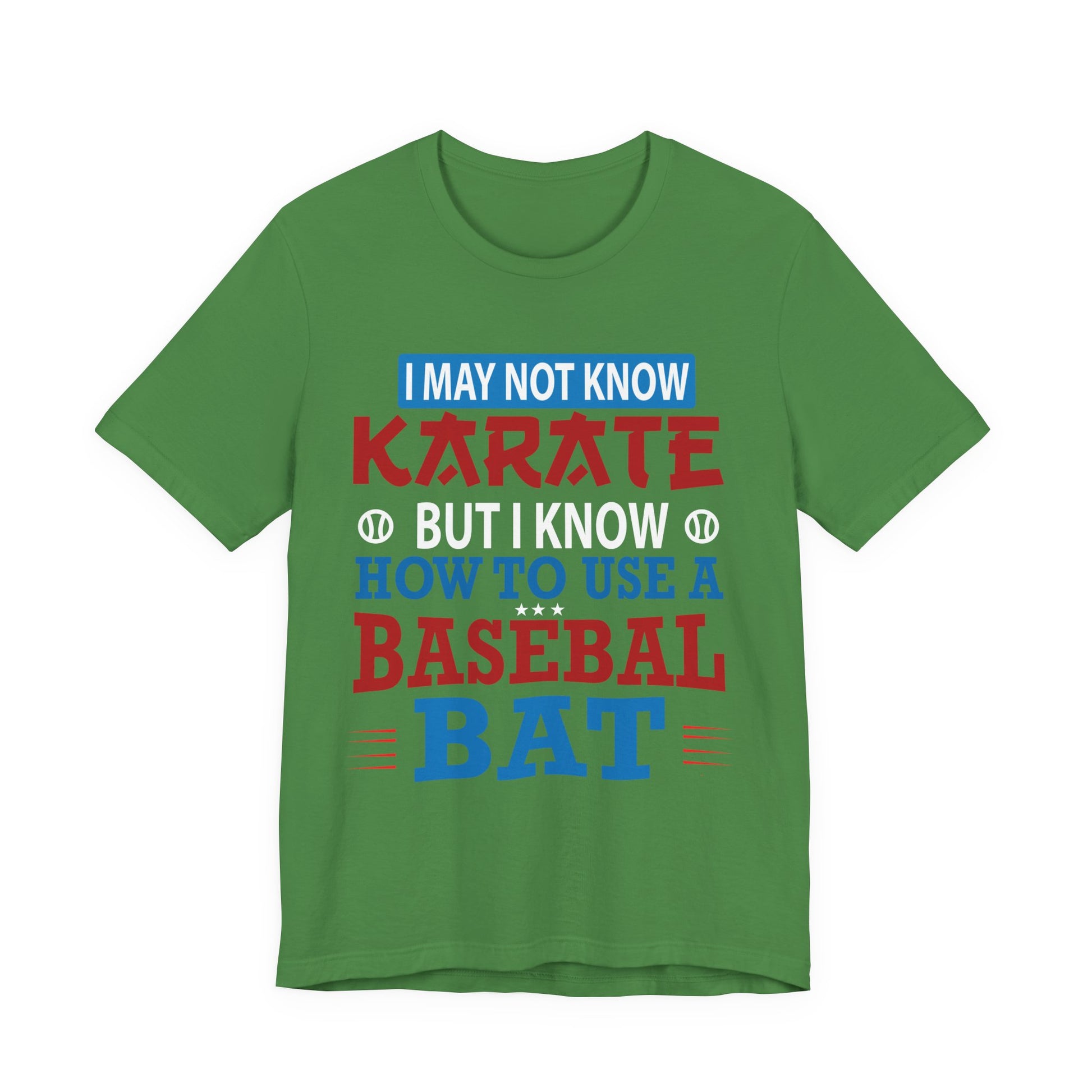 Celebrate your love for baseball and your unique skills with the "I May Not Know Karate But I Know How To Use Baseball Bat" unisex jersey short sleeve tee. Because in baseball, confidence and a good swing are all you need.