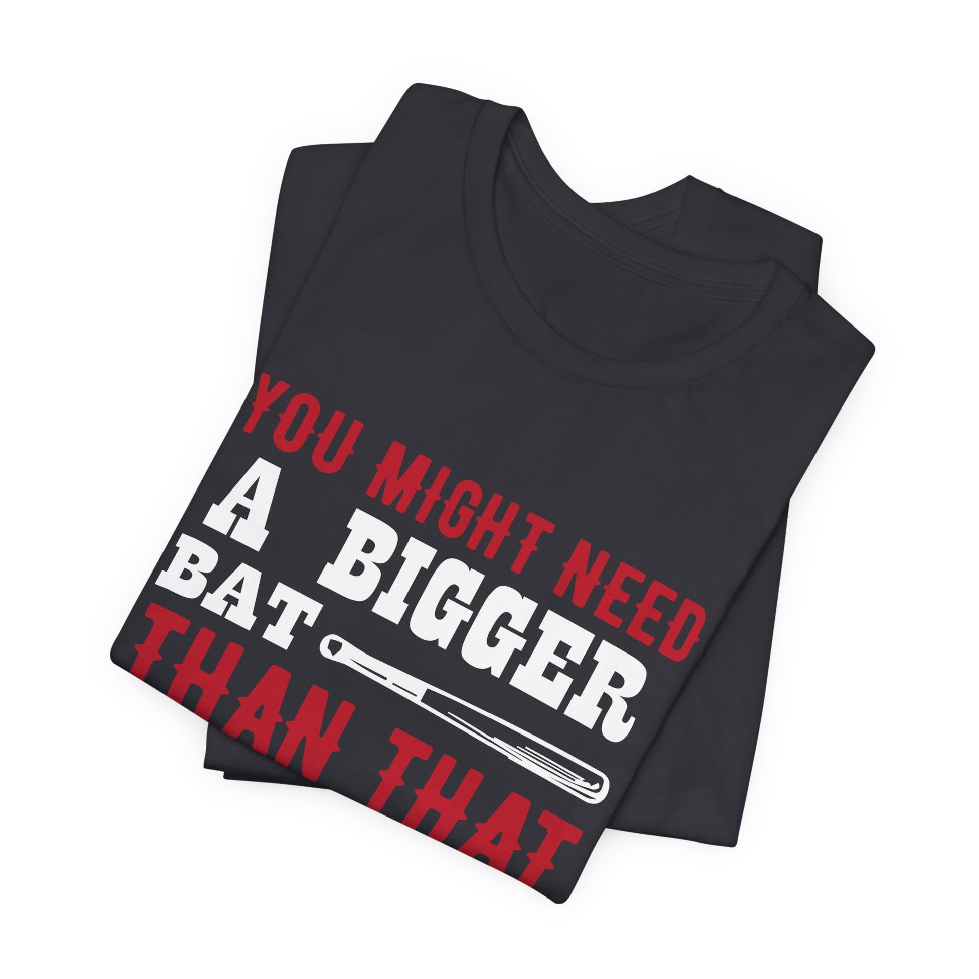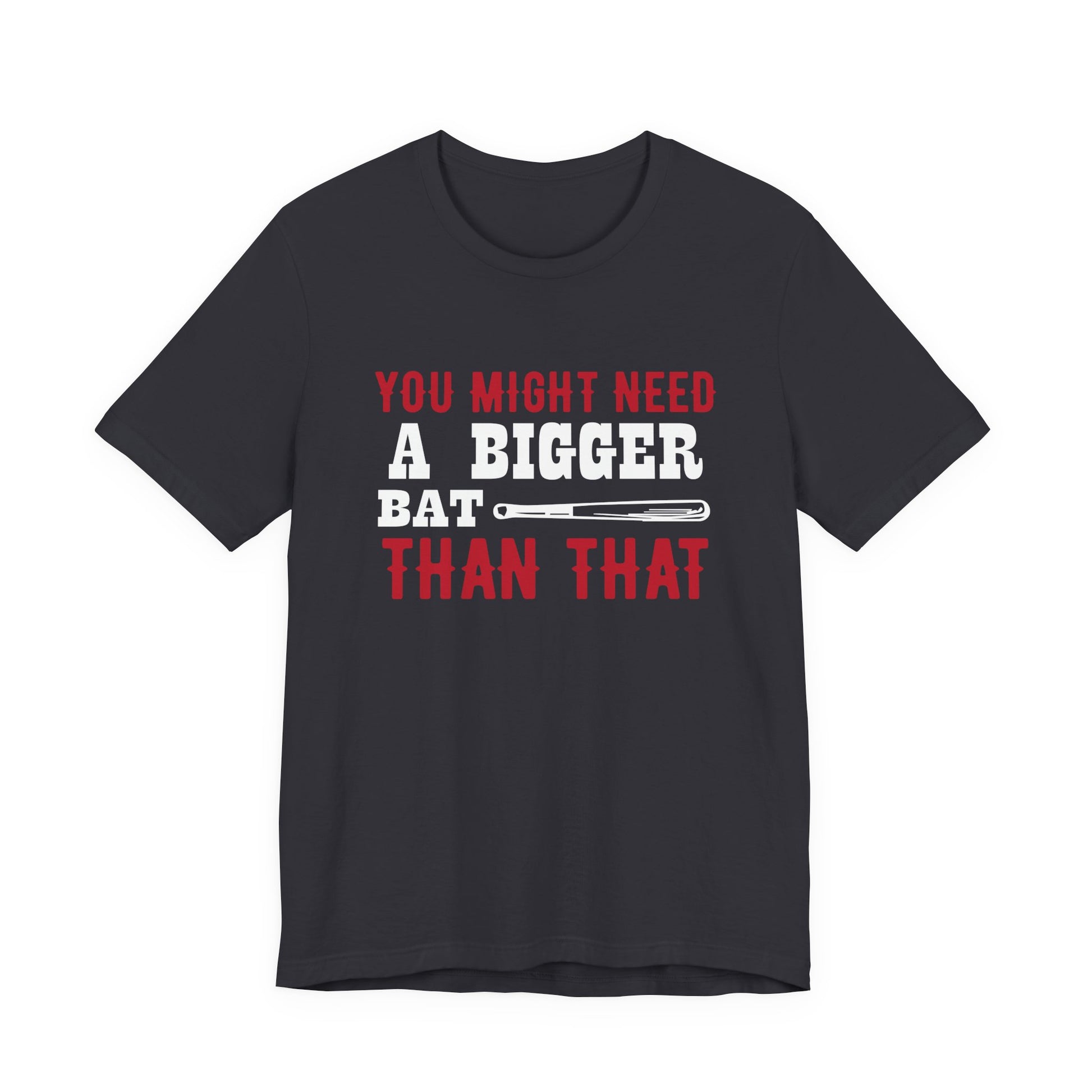 Show off your love for baseball with a sense of humor in the "You Might Need A Bigger Bat Than That" unisex jersey short sleeve tee. It's not just a shirt; it's a playful nod to the game we all love.
