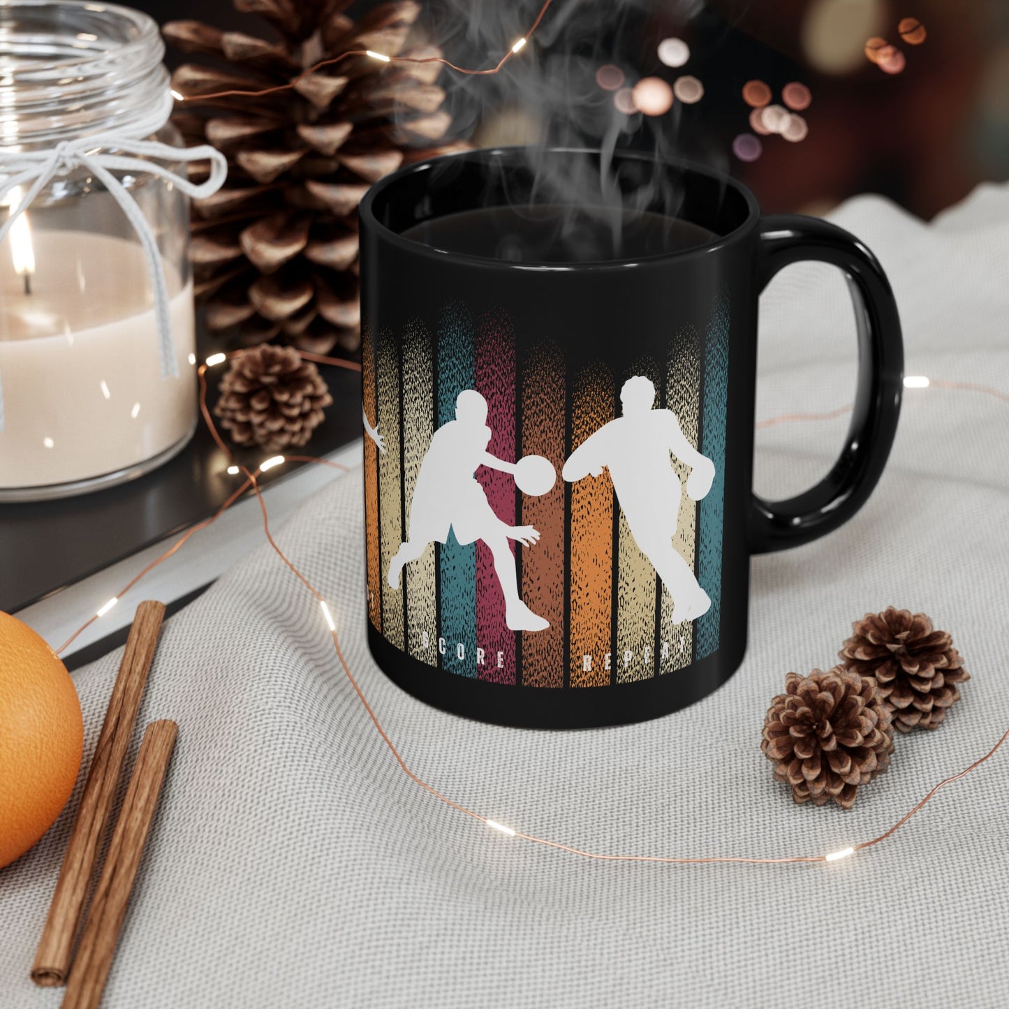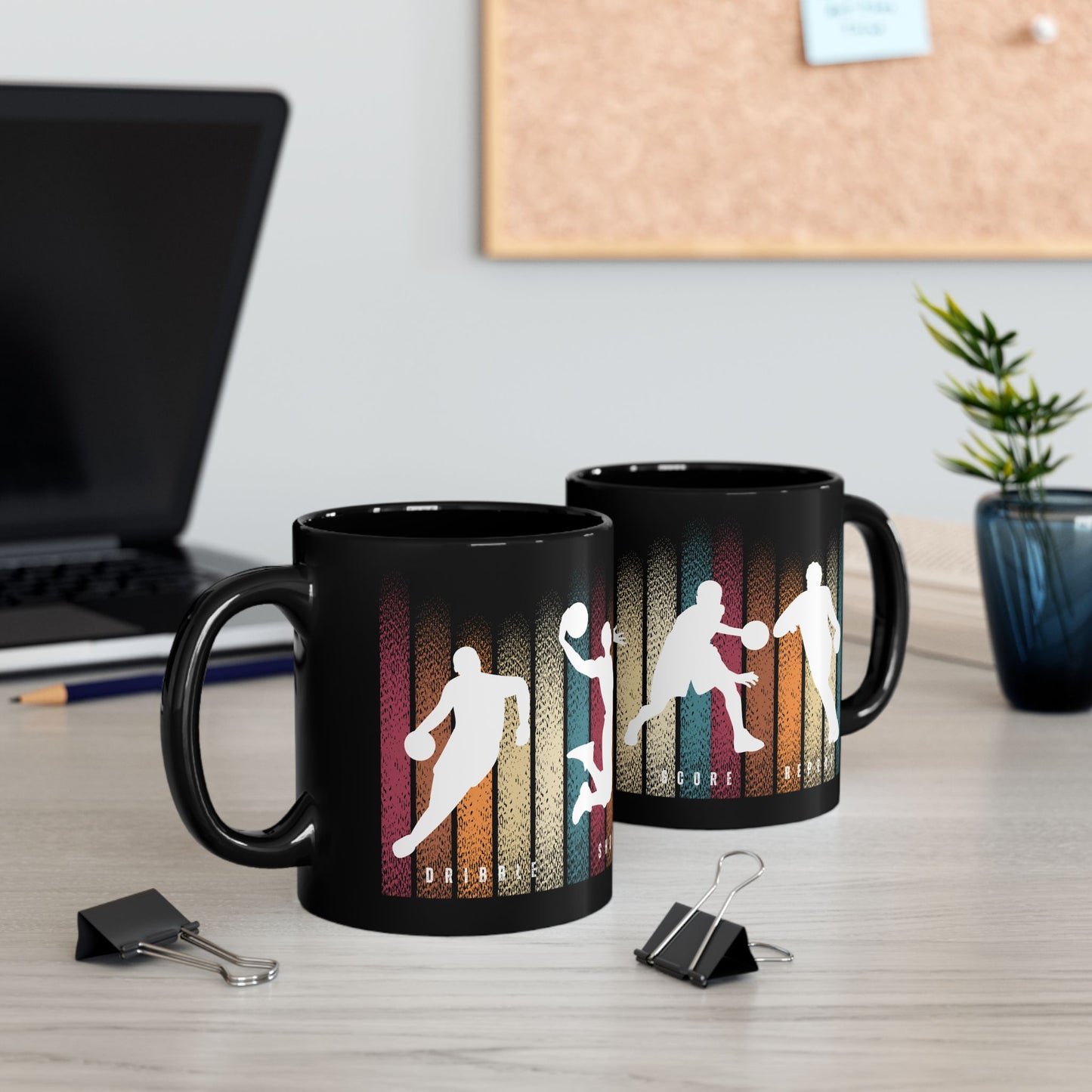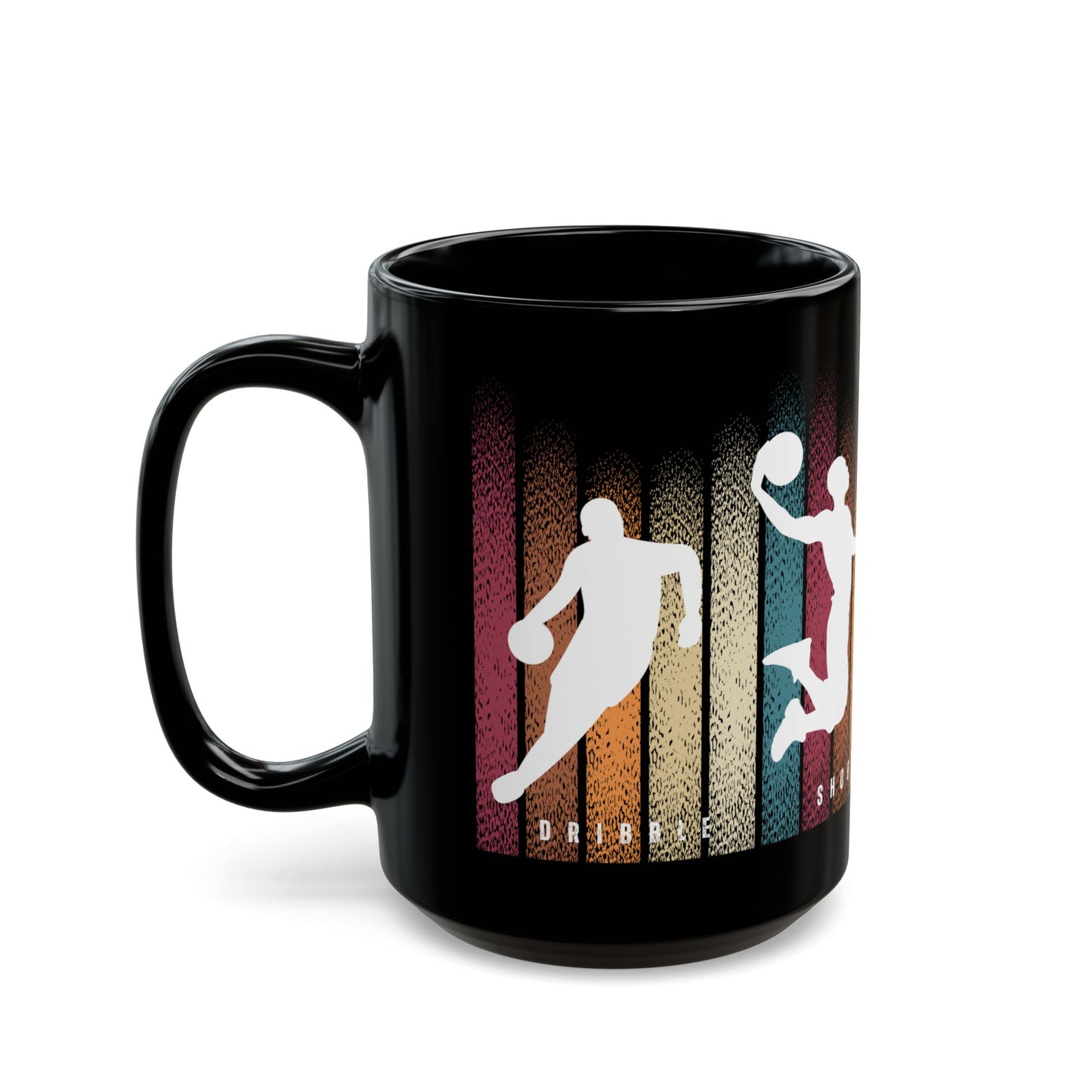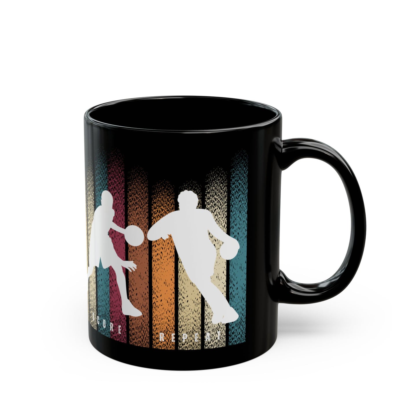 Basketball, Dribble, Shoot, Score, Repeat - Black Mug (11oz, 15oz) - 10230