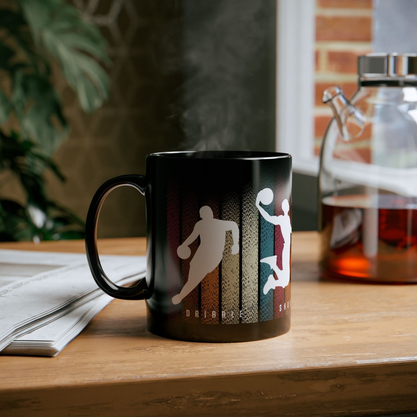 For basketball enthusiasts who live for the game, the "Dribble, Shoot, Score, Repeat" Black Mug is the perfect way to show your passion for basketball. This bold and stylish mug features a dynamic design with a catchy phrase that captures the essence of the sport — the relentless cycle of practice, play, and victory!