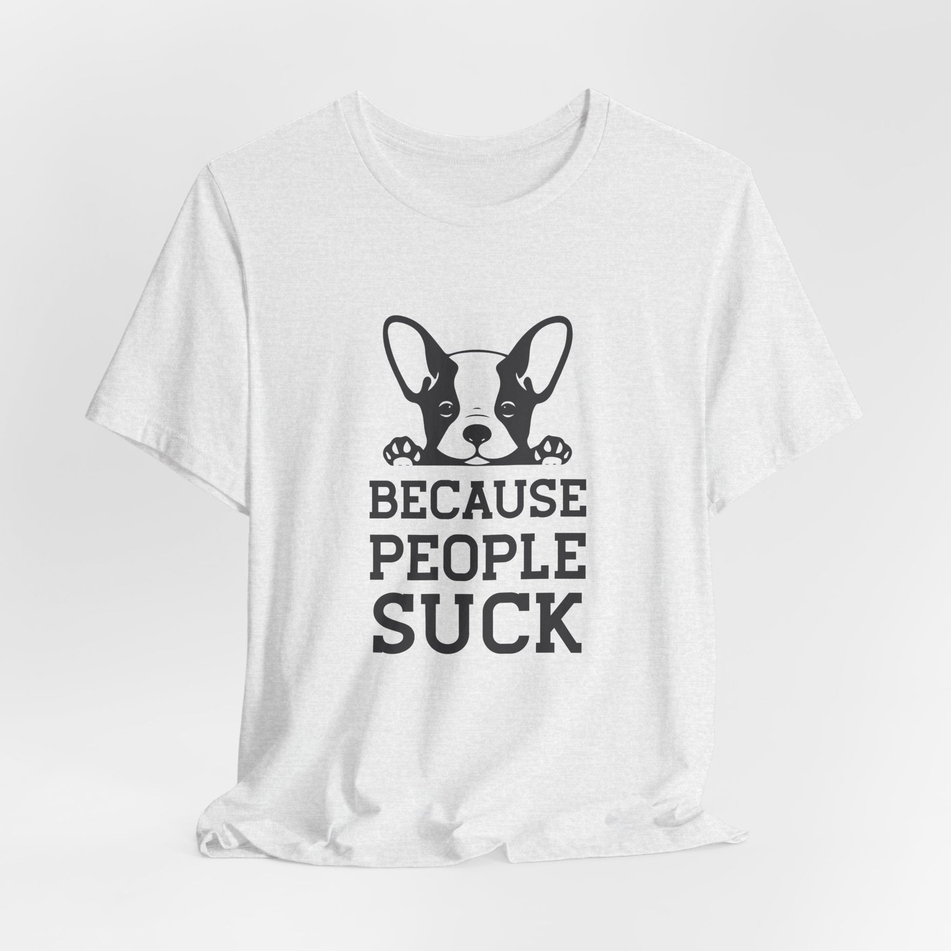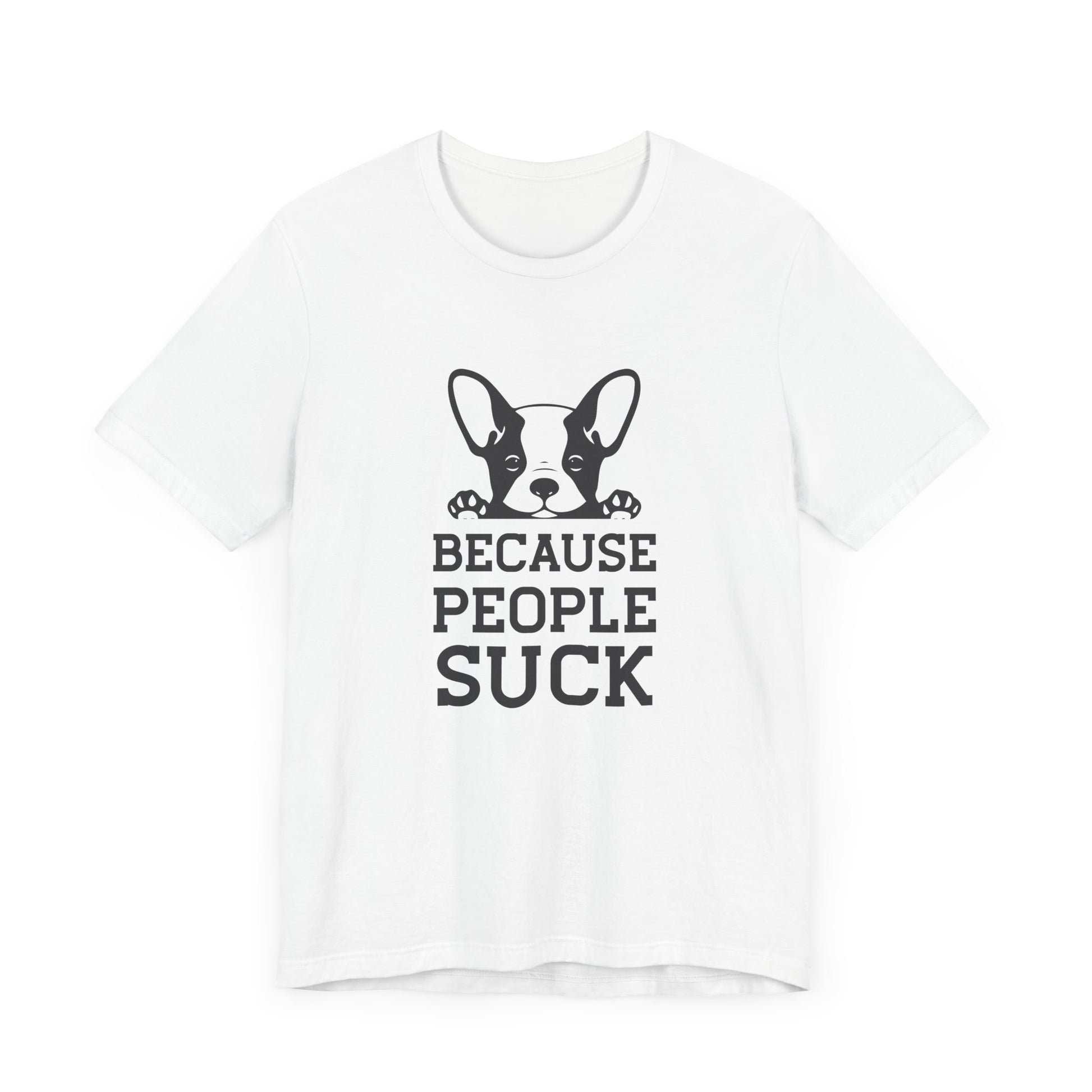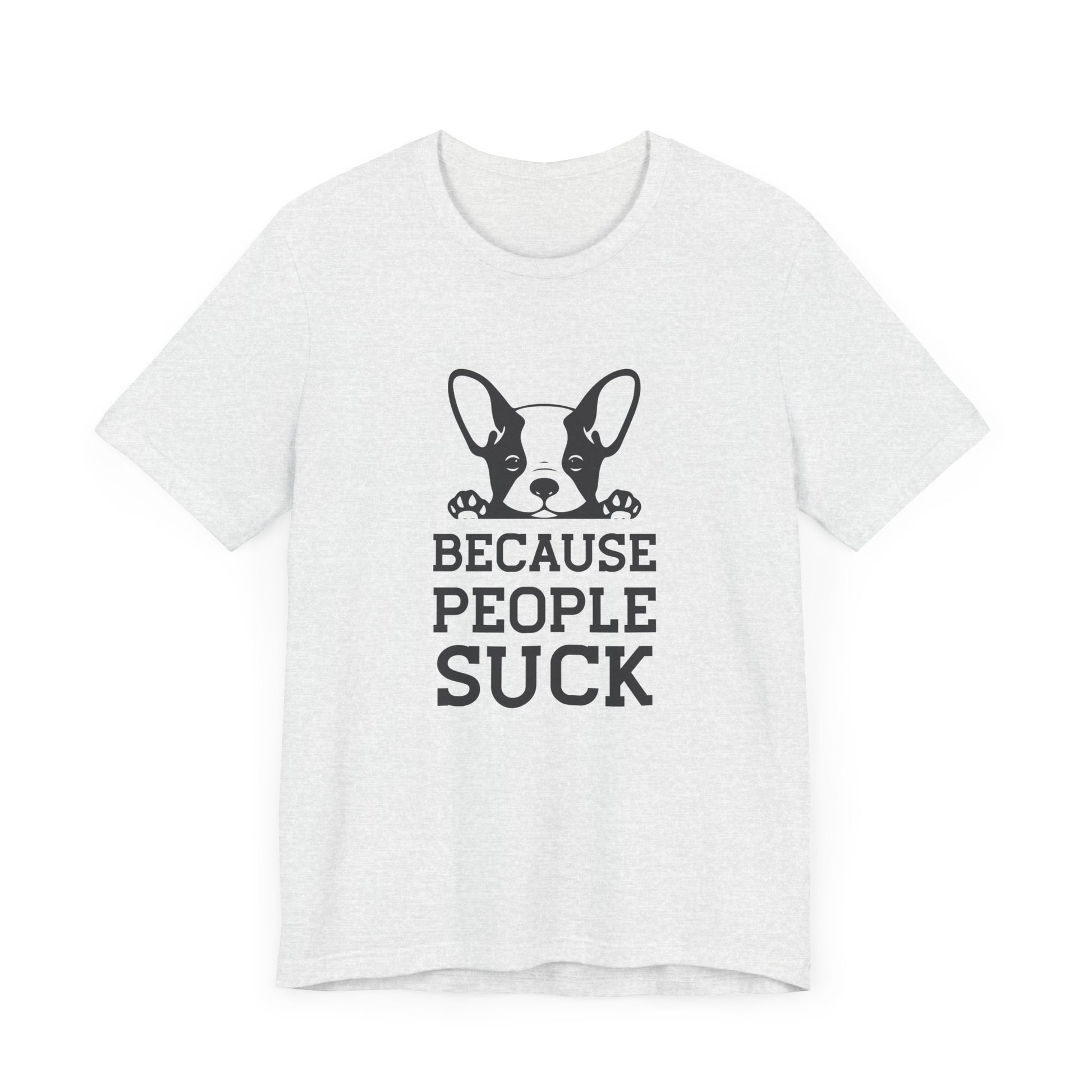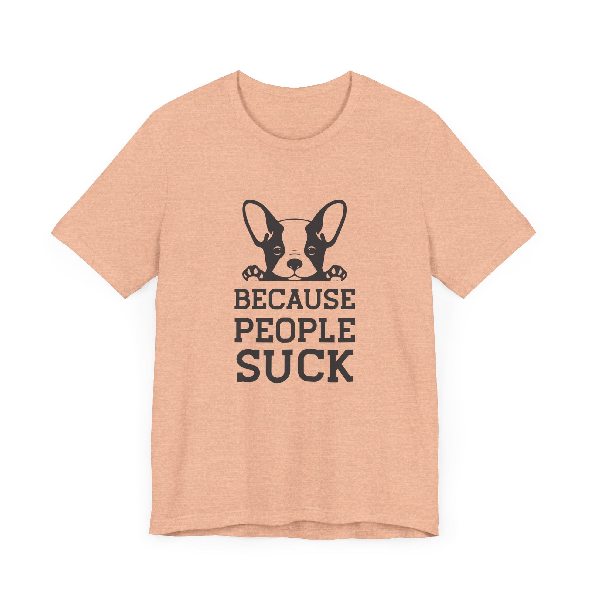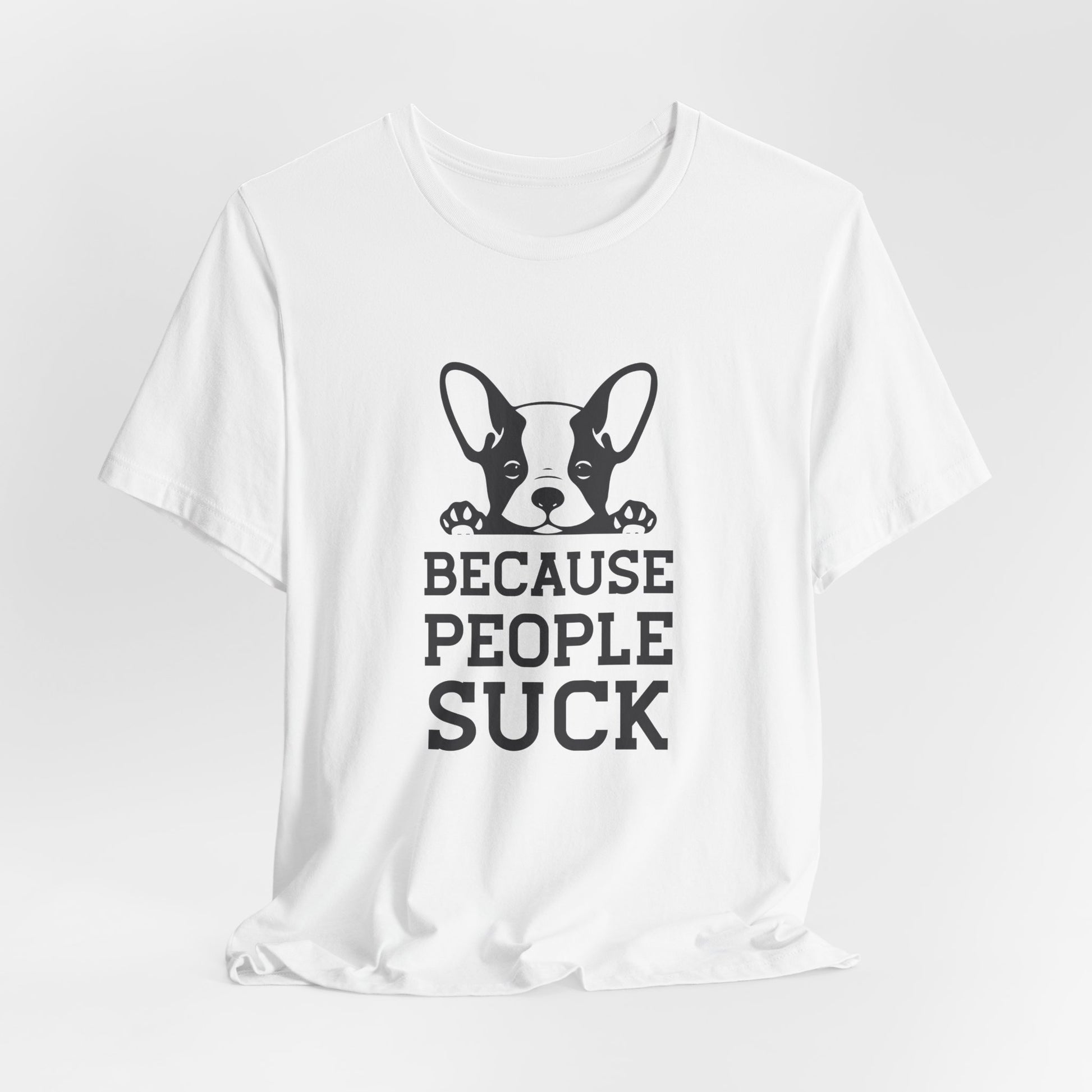 Let your wardrobe reflect your true feelings with our "Because People Suck" Unisex Jersey Short Sleeve Tee. Order yours today and wear your love for dogs and your candid sense of humor with pride!