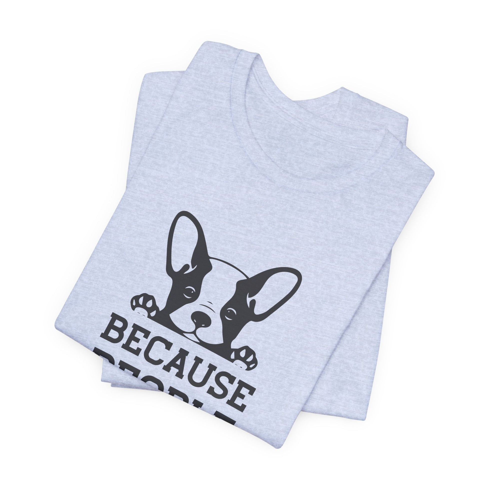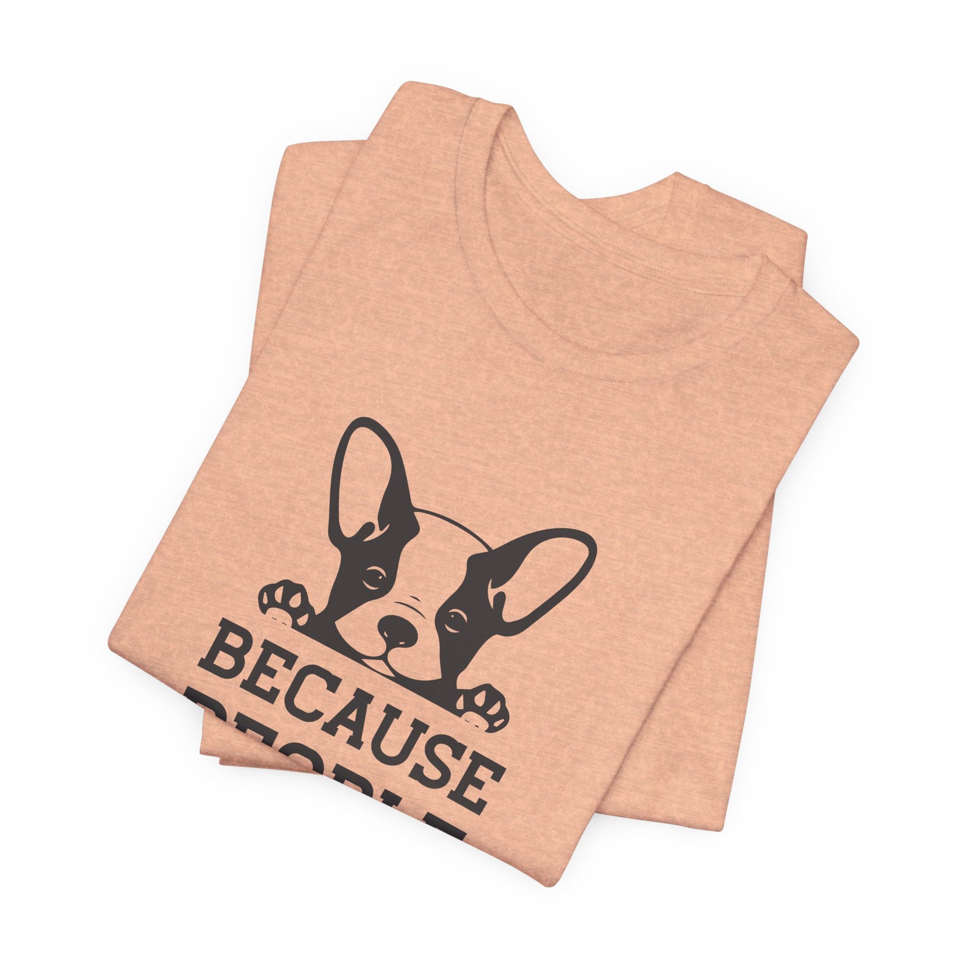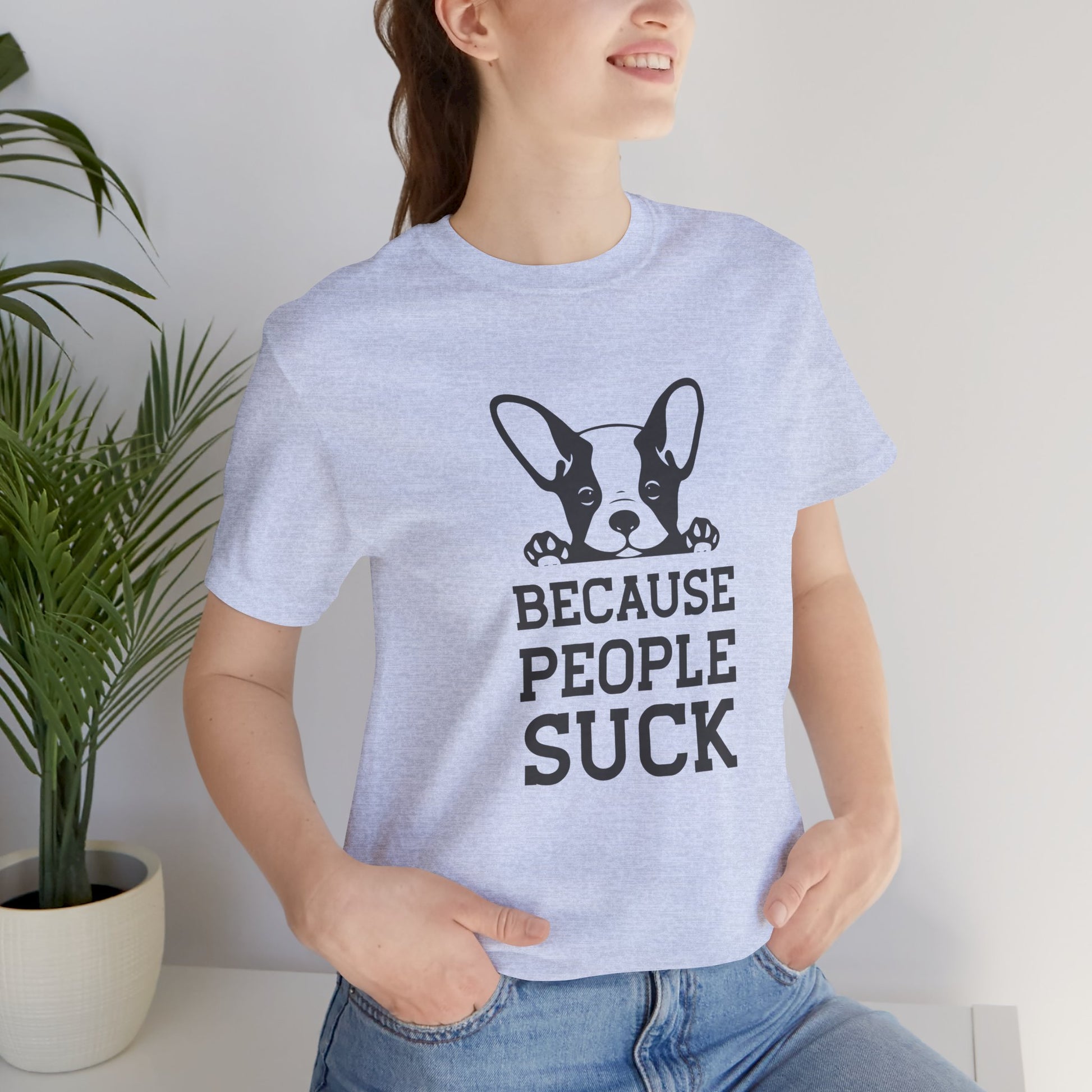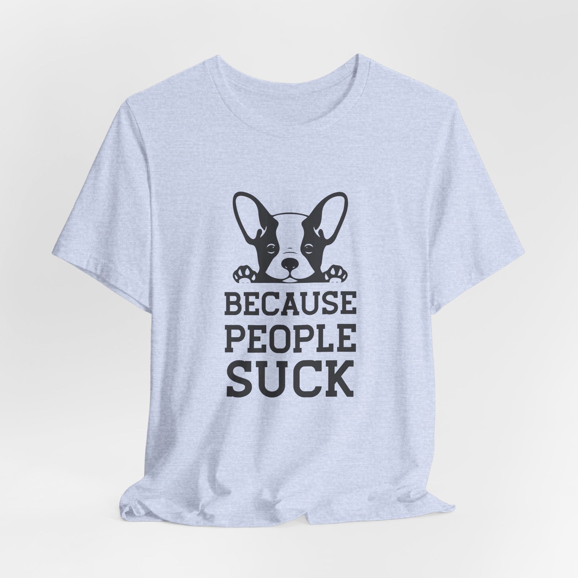 Let your wardrobe reflect your true feelings with our "Because People Suck" Unisex Jersey Short Sleeve Tee. Order yours today and wear your love for dogs and your candid sense of humor with pride!