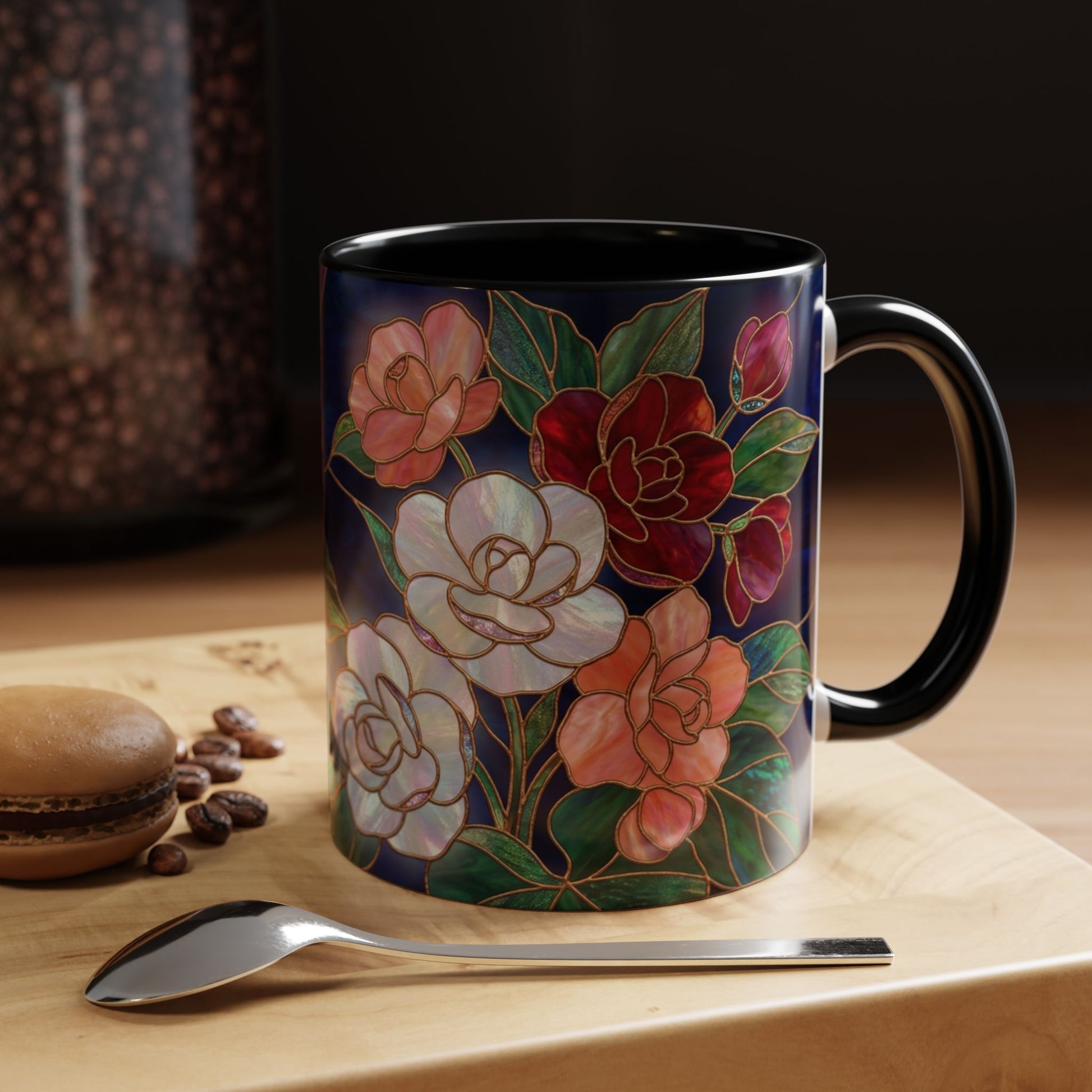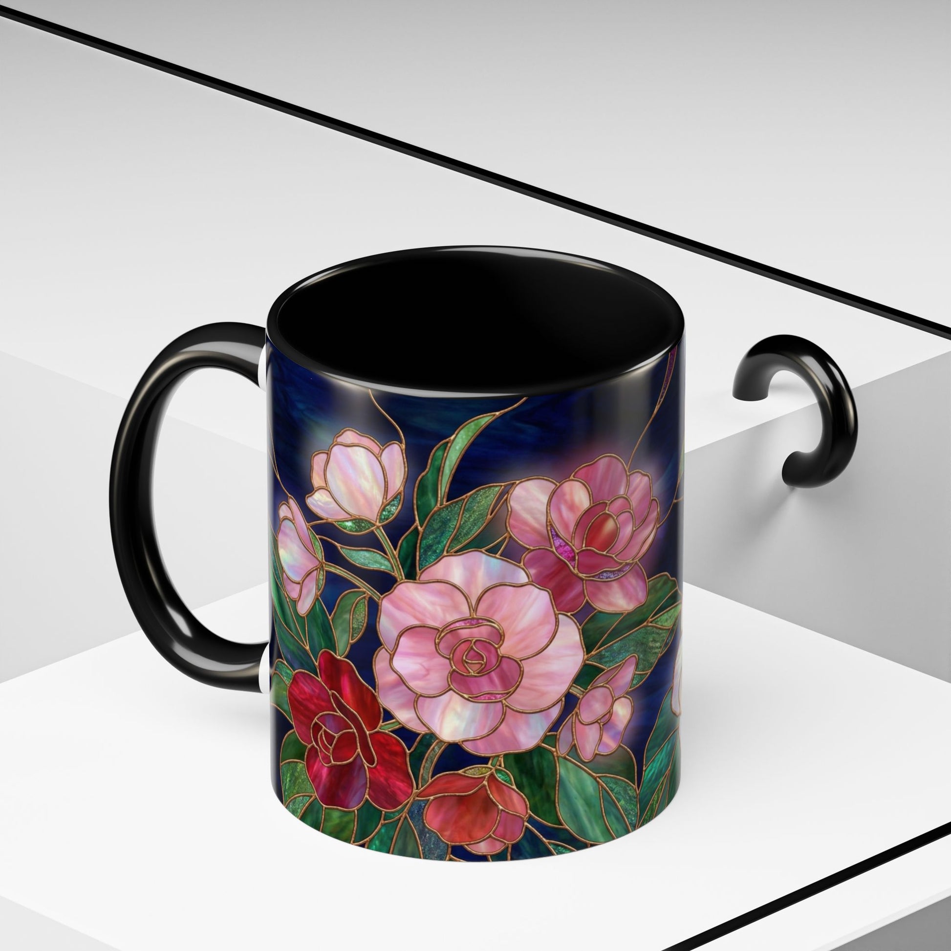 Begonia Floral Accent Coffee Mug – Stained Glass Design 11/15oz - 14555