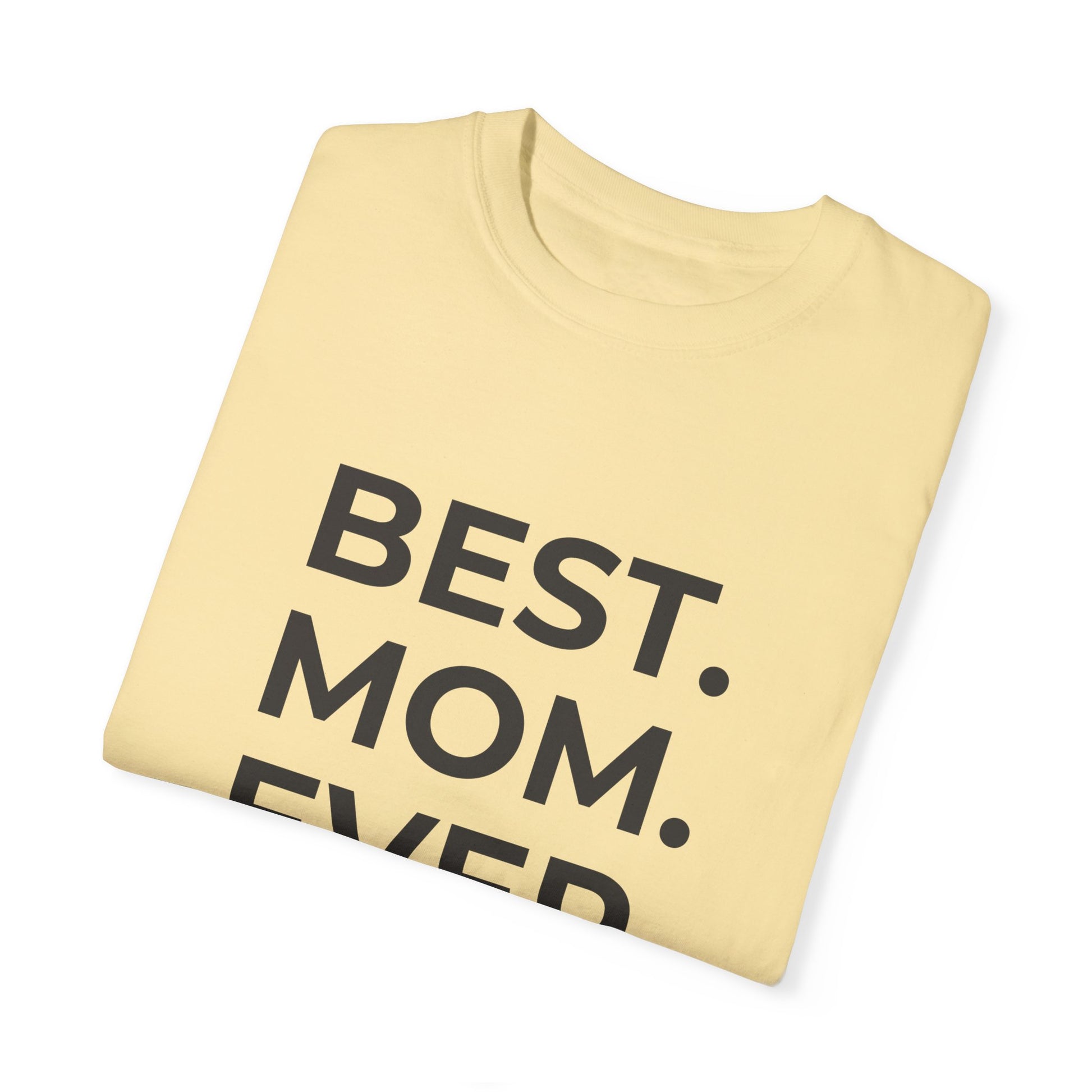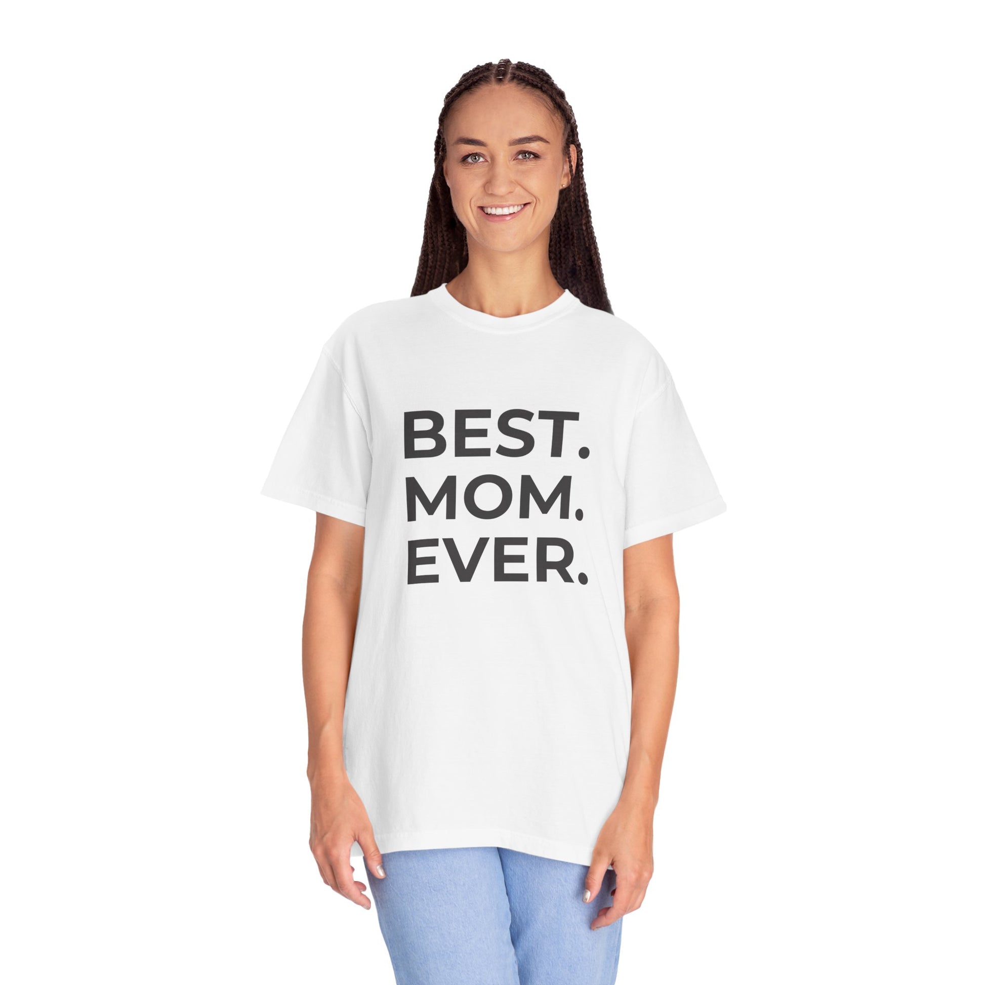 Some titles are earned, and Best. Mom. Ever. is one of them! Celebrate motherhood in style with this ultra-comfy, garment-dyed T-shirt. Made from premium cotton, it offers a lived-in feel from day one, getting softer with every wash. Whether you're running errands, enjoying some well-deserved relaxation, or showing off your mom pride, this tee is a perfect fit.
