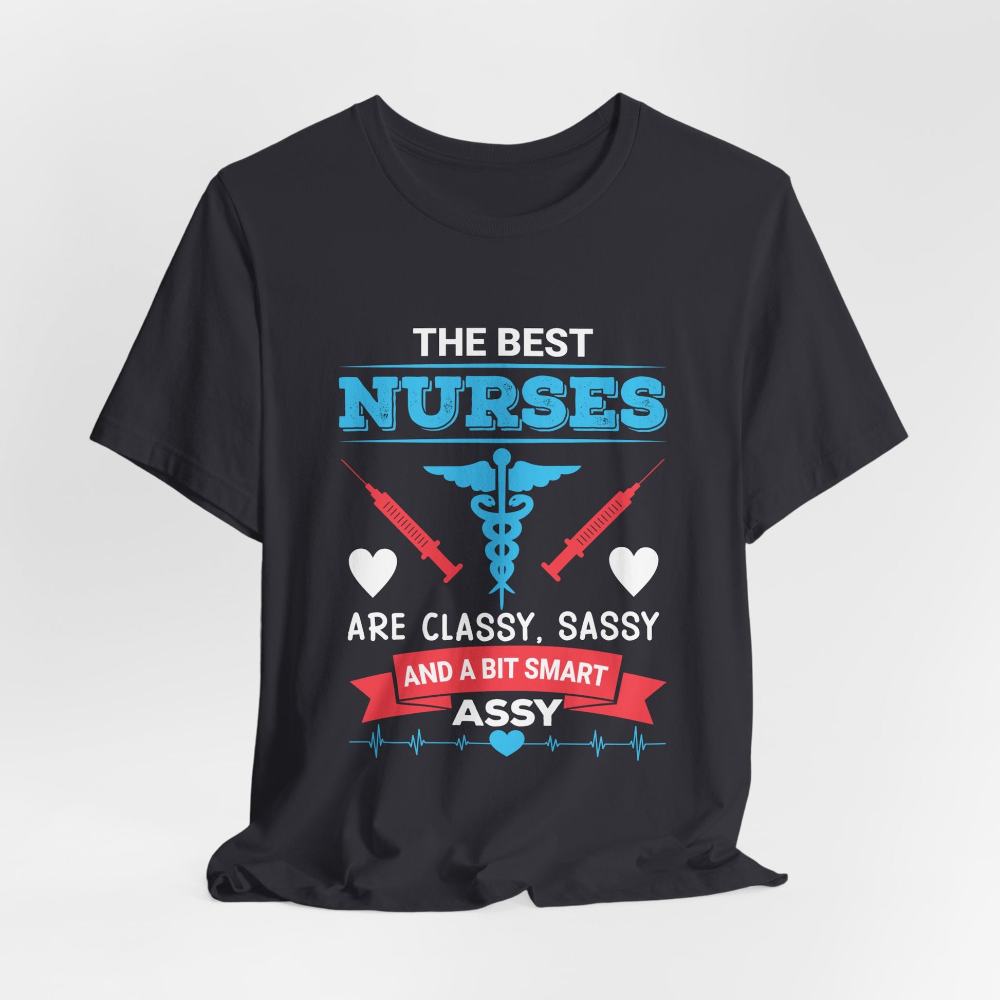 Celebrate the dynamic and delightful nature of nursing with our "Best Nurses Are Classy, Sassy, And A Bit Smart Assy" tee. Whether you're treating yourself or gifting it to a fellow nurse, this t-shirt is a stylish and fun way to honor the incredible work and personality of nurses. Get yours today and wear your nursing pride with sass and class!
