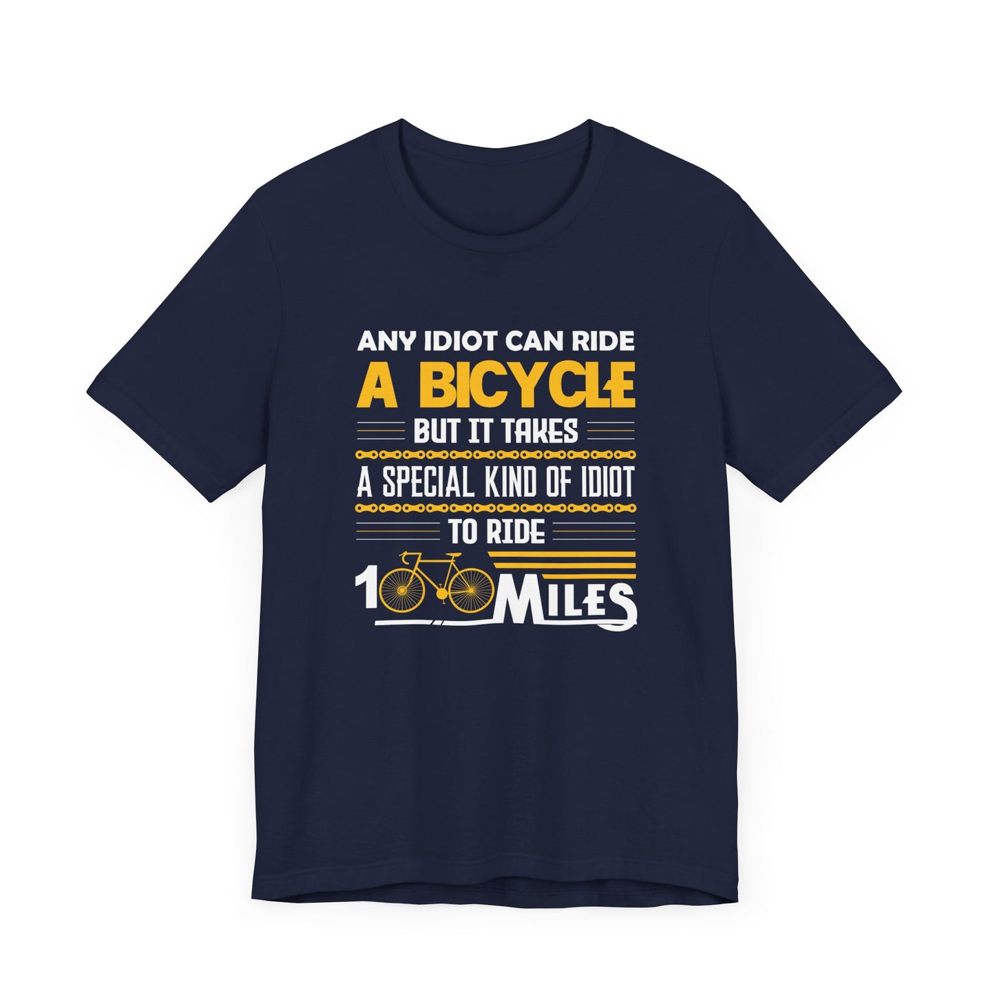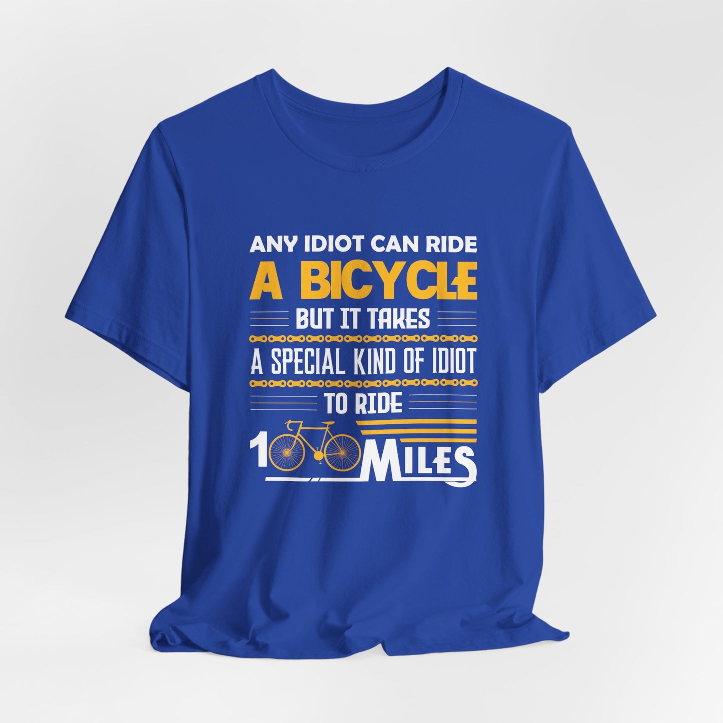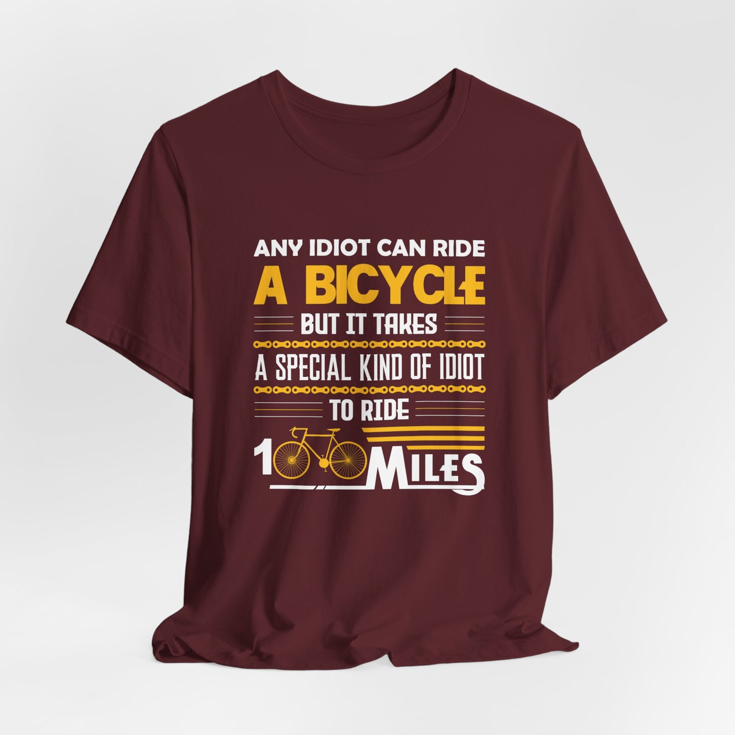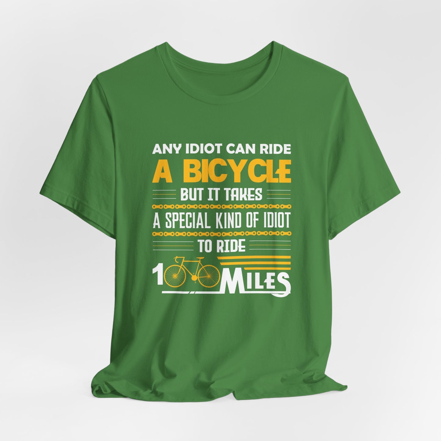 Celebrate the thrill and humor of long-distance cycling with the "Any Idiot Can Ride A Bicycle, But It Takes A Special Kind Of Idiot To Ride 100 Miles" tee. Whether you're tackling century rides or enjoying a leisurely day on the bike, this shirt is the perfect choice for every cycling enthusiast.