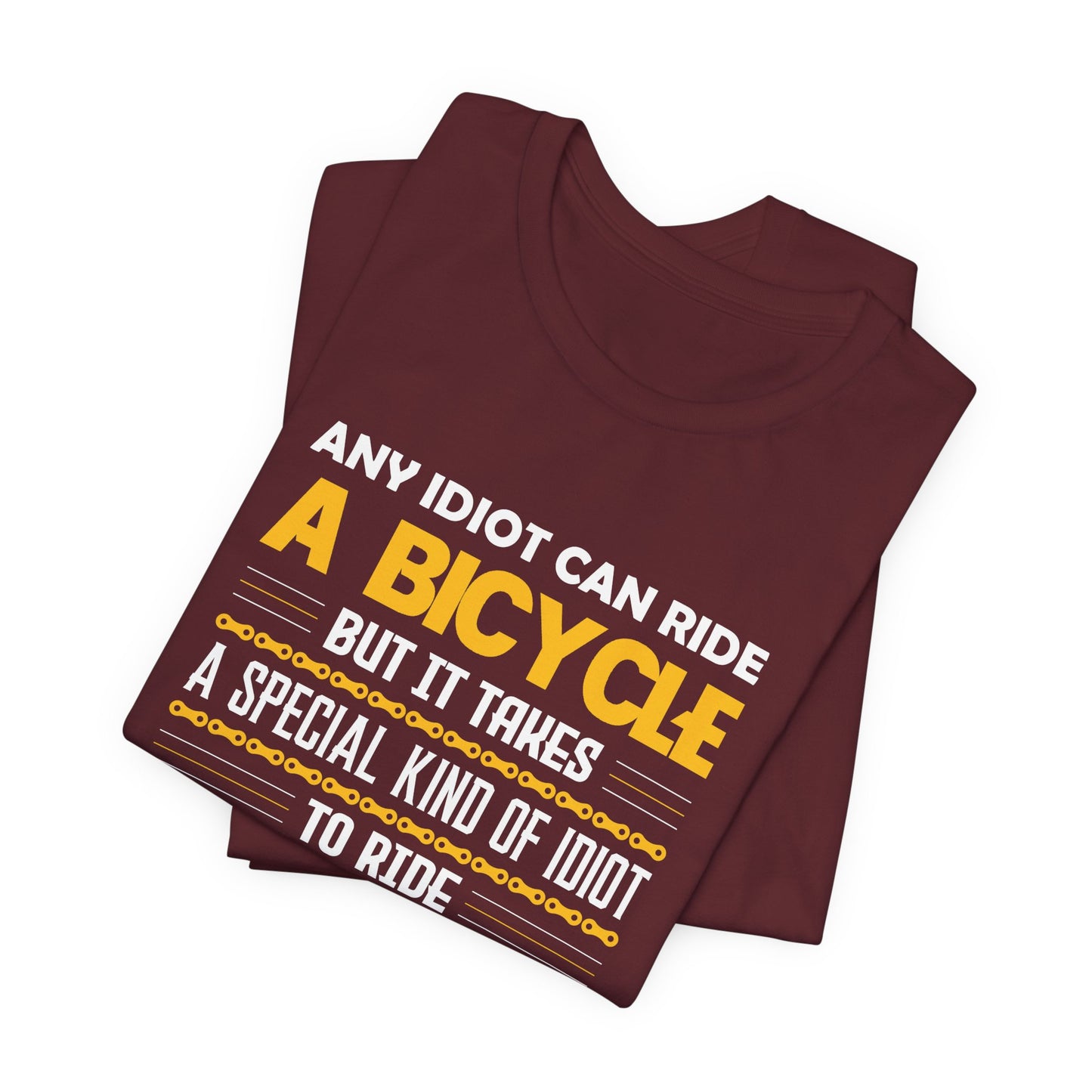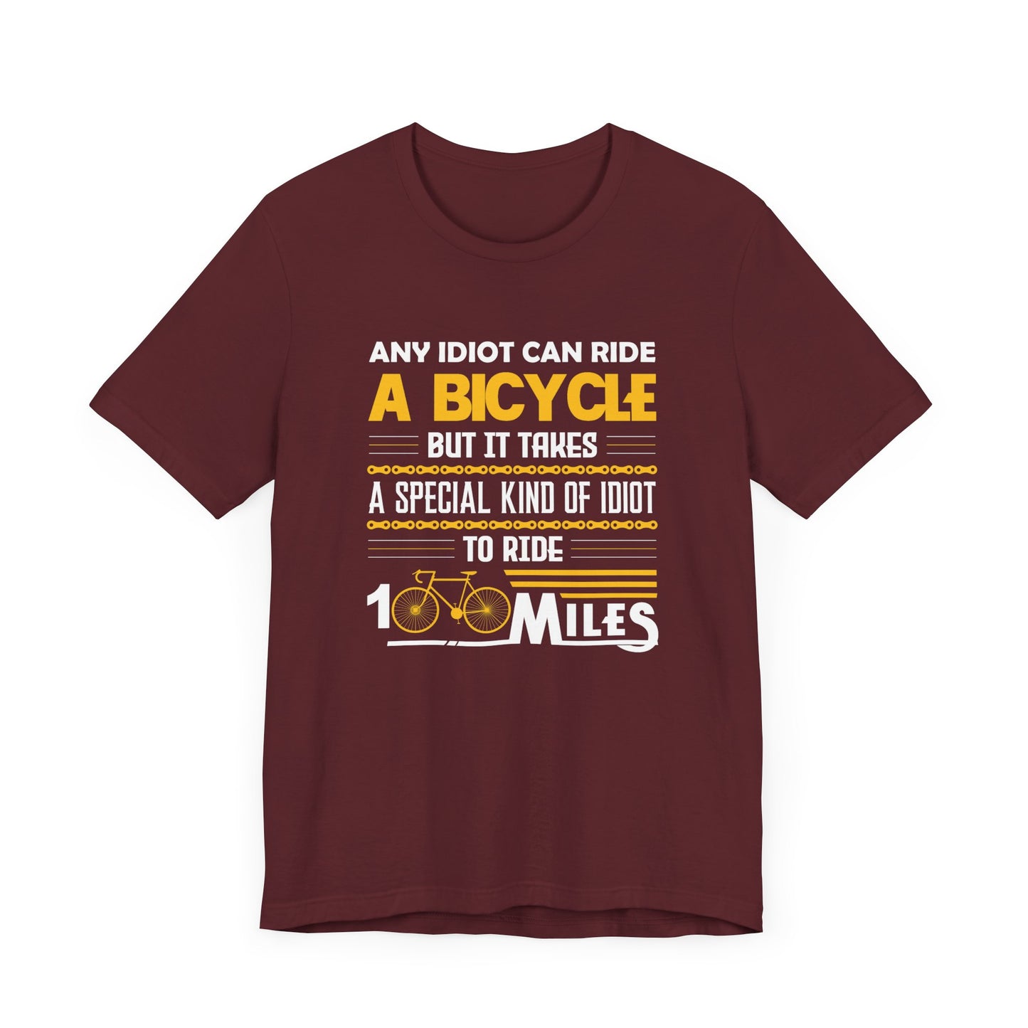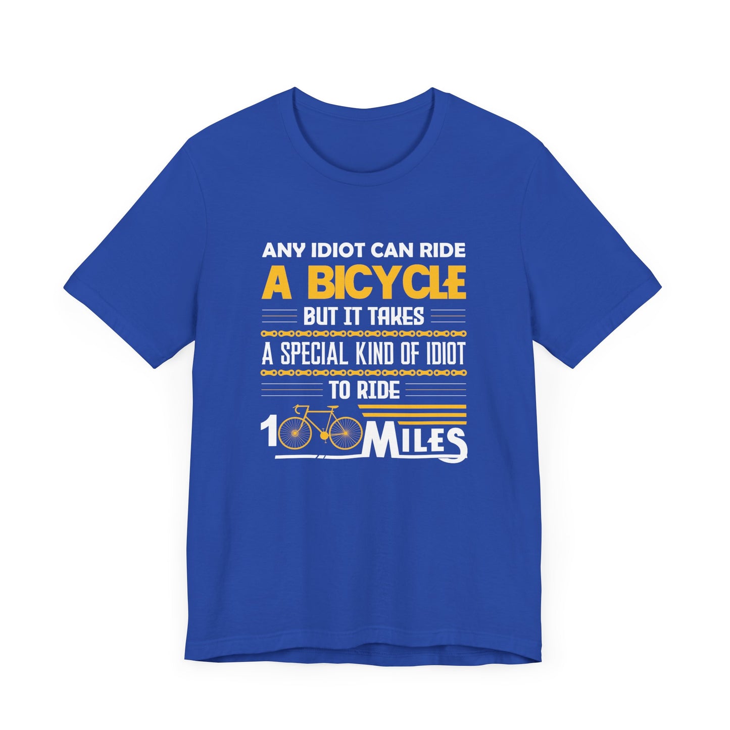 Showcase your love for long-distance cycling with our "Any Idiot Can Ride A Bicycle, But It Takes A Special Kind Of Idiot To Ride 100 Miles" Unisex Jersey Short Sleeve Tee. Perfect for dedicated cyclists who embrace the challenge of endurance rides, this tee combines humor, style, and exceptional comfort. Made from premium jersey fabric, it provides a soft touch and an excellent fit for everyone.