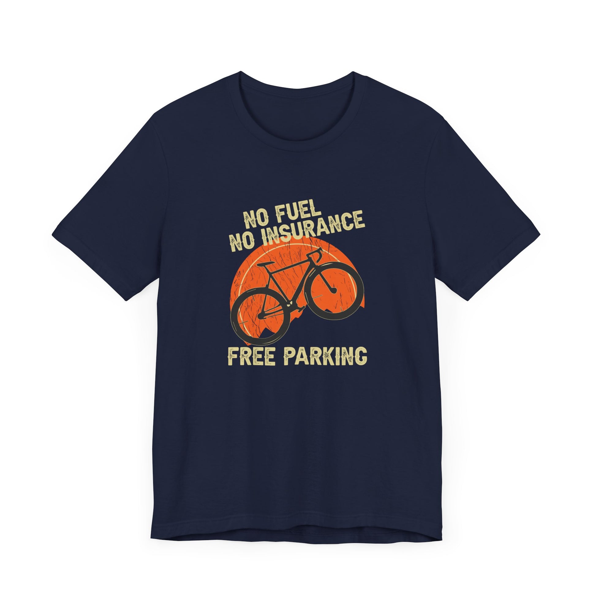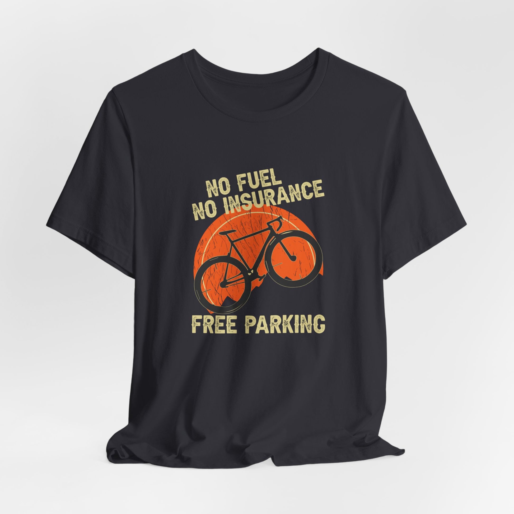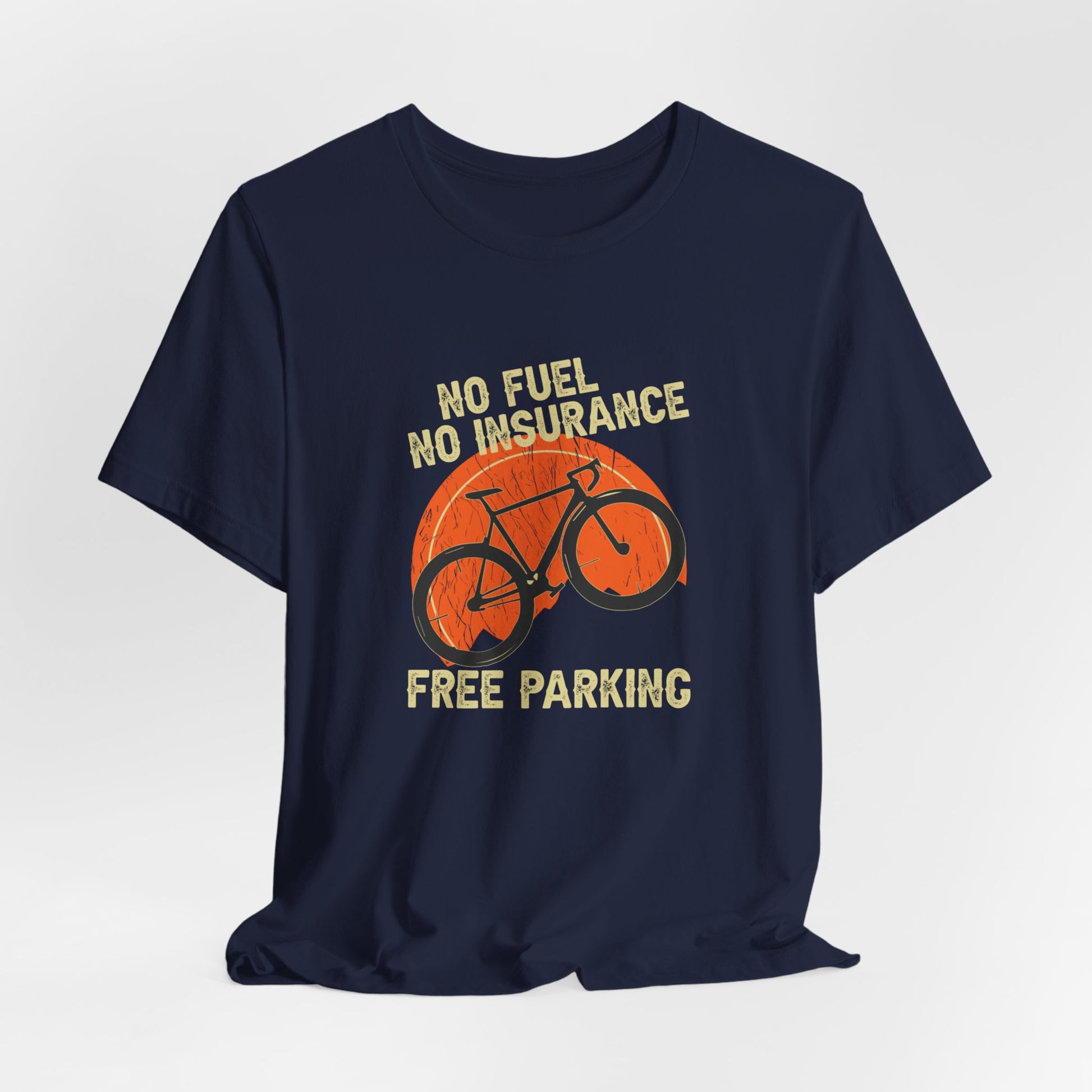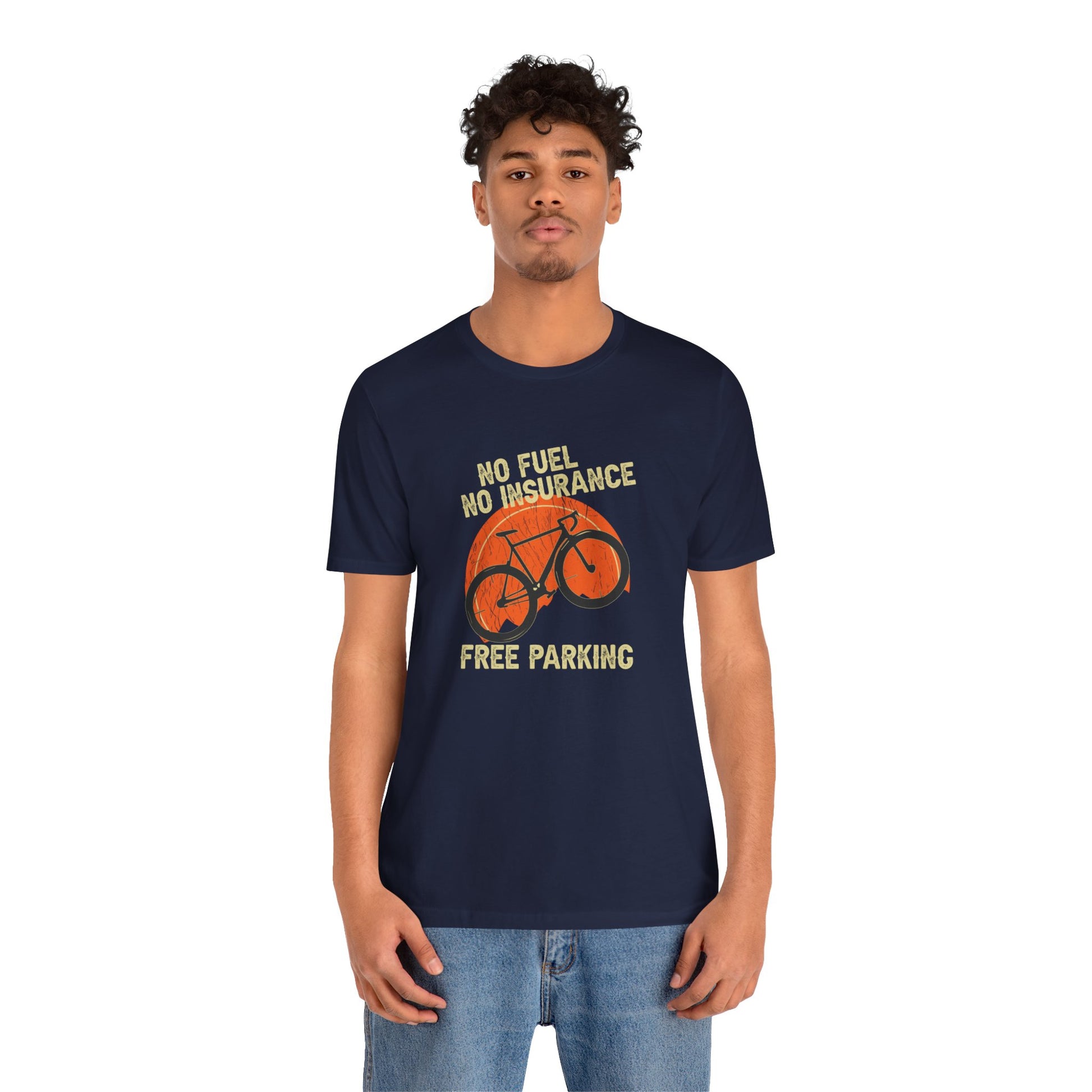 Celebrate the convenience and sustainability of cycling with the "No Fuel, No Insurance, No Parking" tee. Whether you're commuting to work or enjoying a leisurely ride, this shirt is the perfect choice for every cyclist who values environmental responsibility and freedom on two wheels.