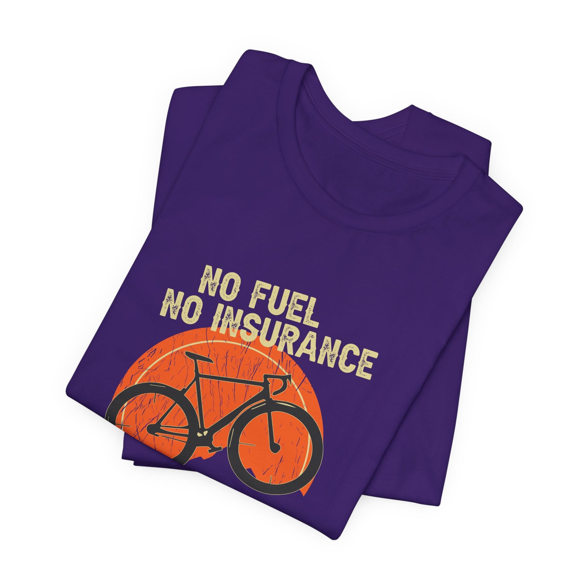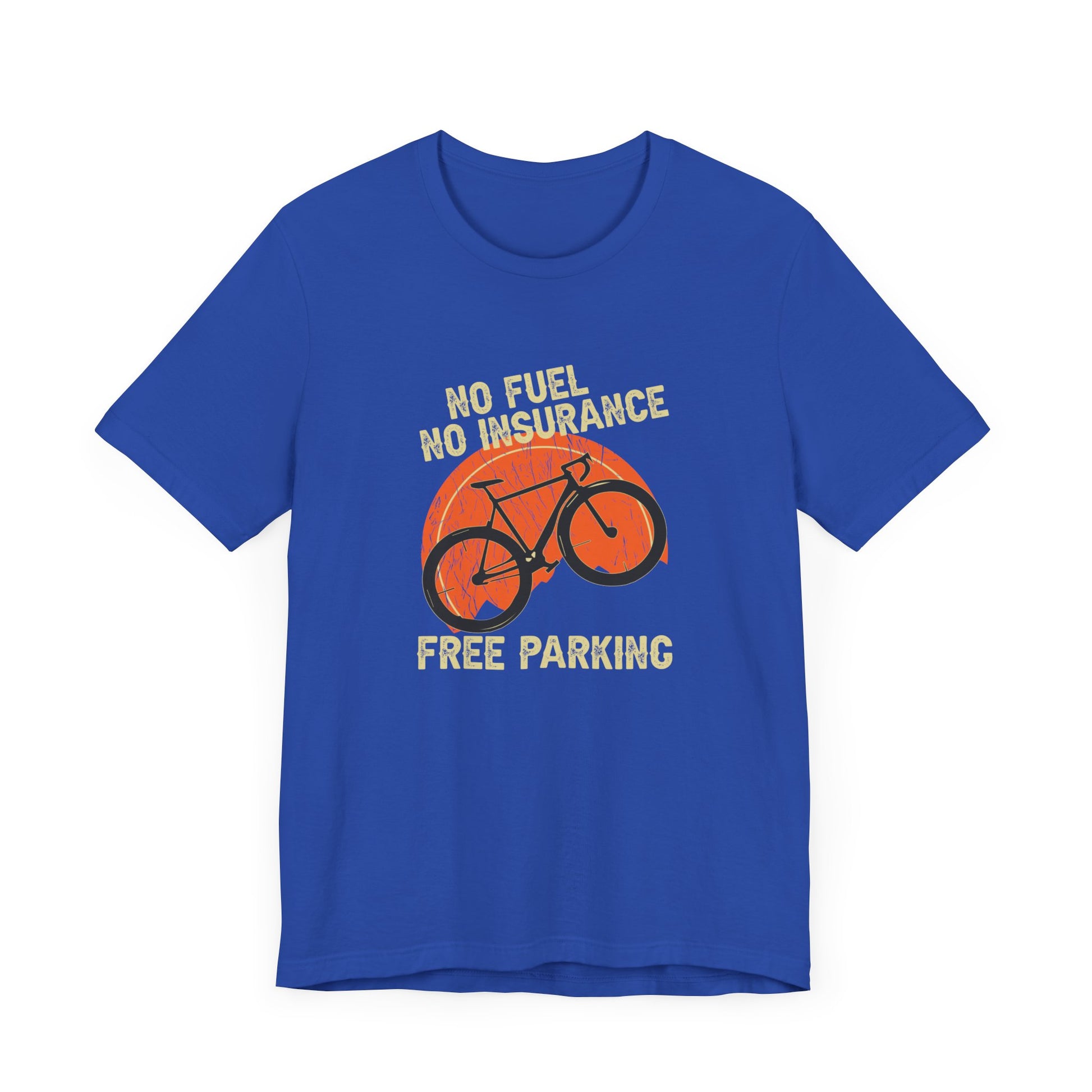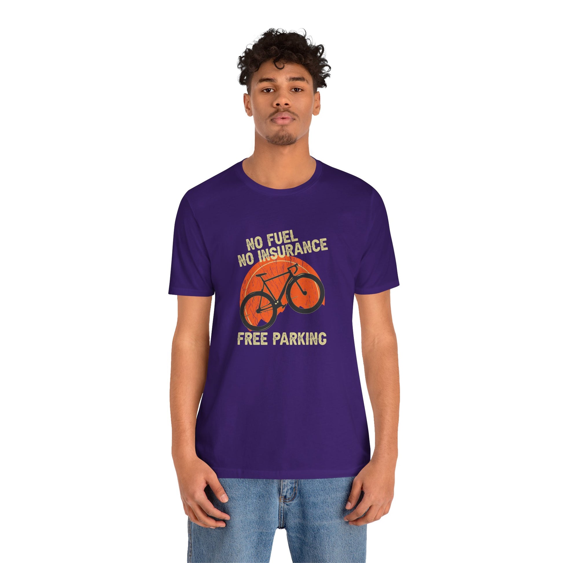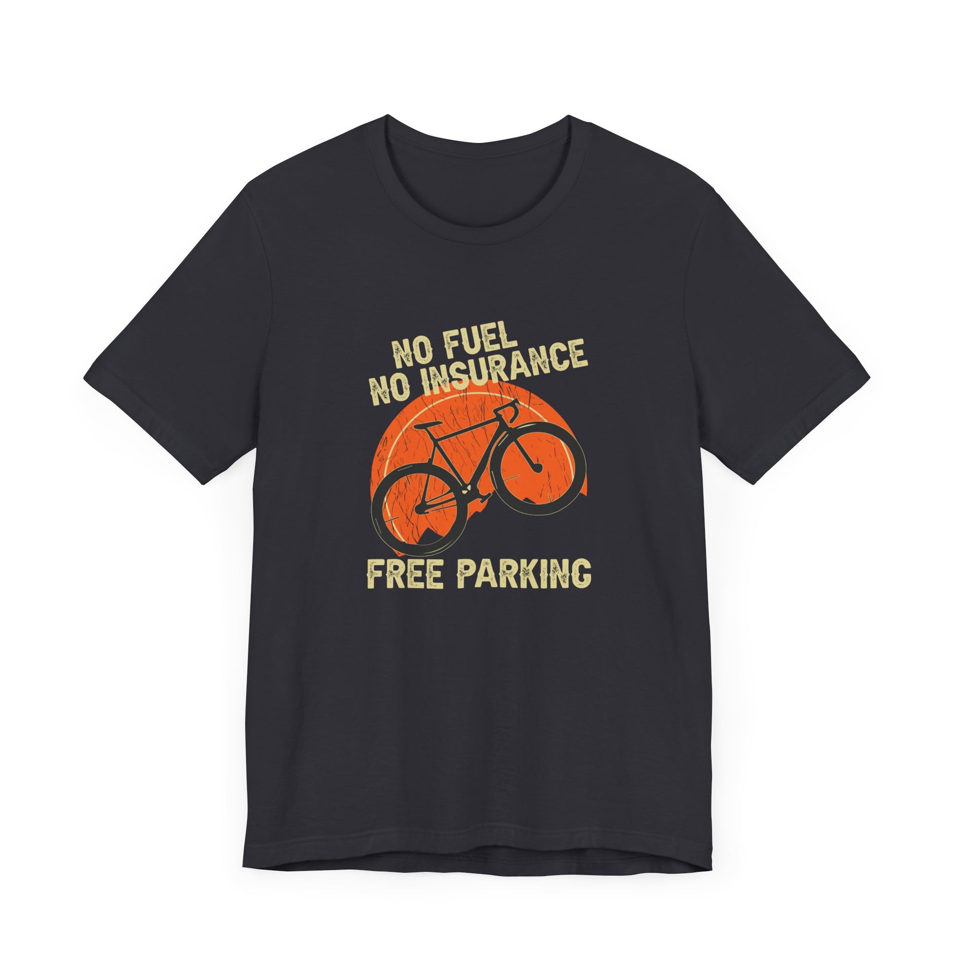 Celebrate the convenience and sustainability of cycling with the "No Fuel, No Insurance, No Parking" tee. Whether you're commuting to work or enjoying a leisurely ride, this shirt is the perfect choice for every cyclist who values environmental responsibility and freedom on two wheels.