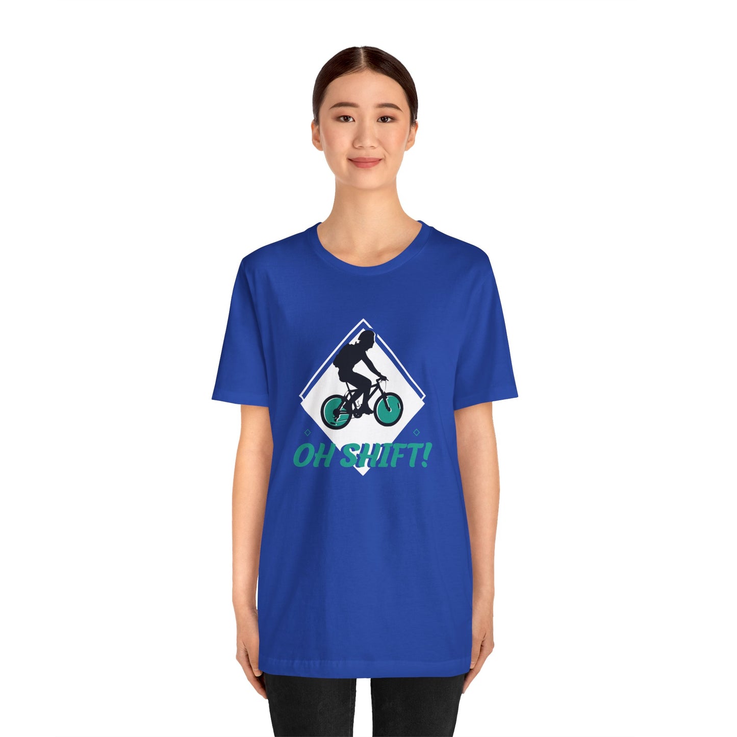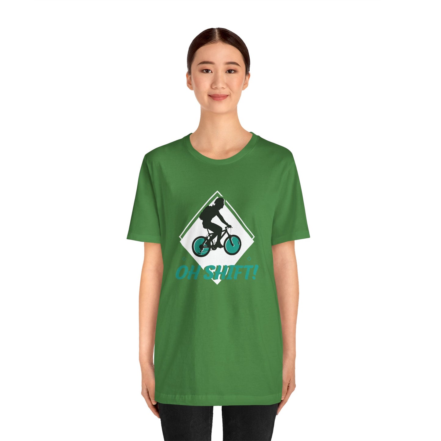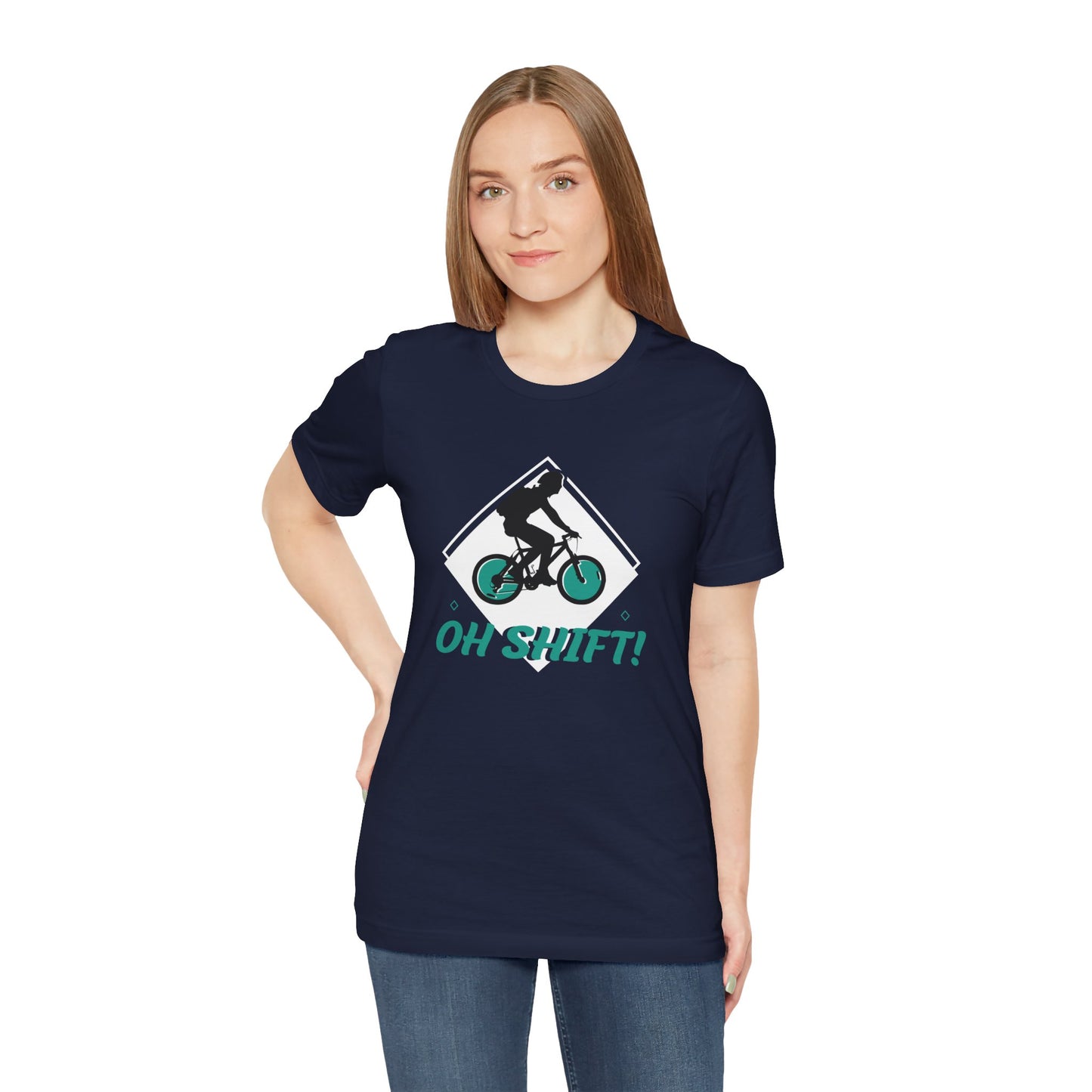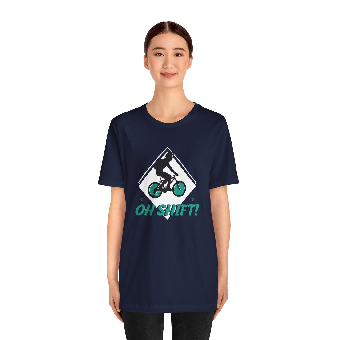 Bring a smile to your cycling journey with the "Oh Shift!" tee. Whether you're pedaling through urban streets or tackling challenging trails, this shirt is the perfect choice for every cyclist who enjoys a good laugh and embraces the joy of riding.