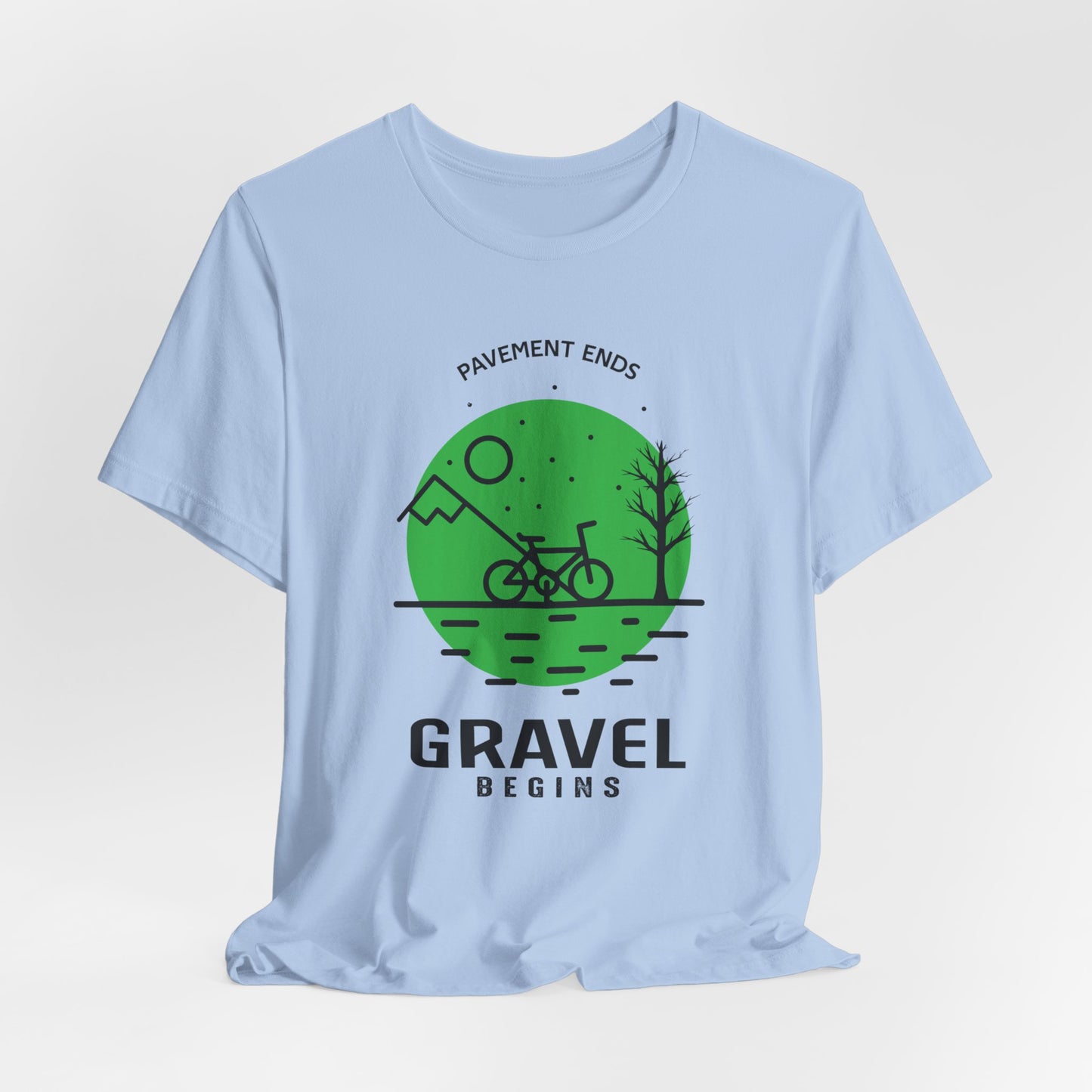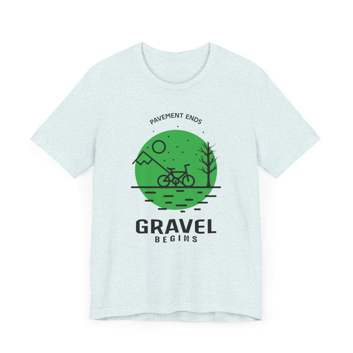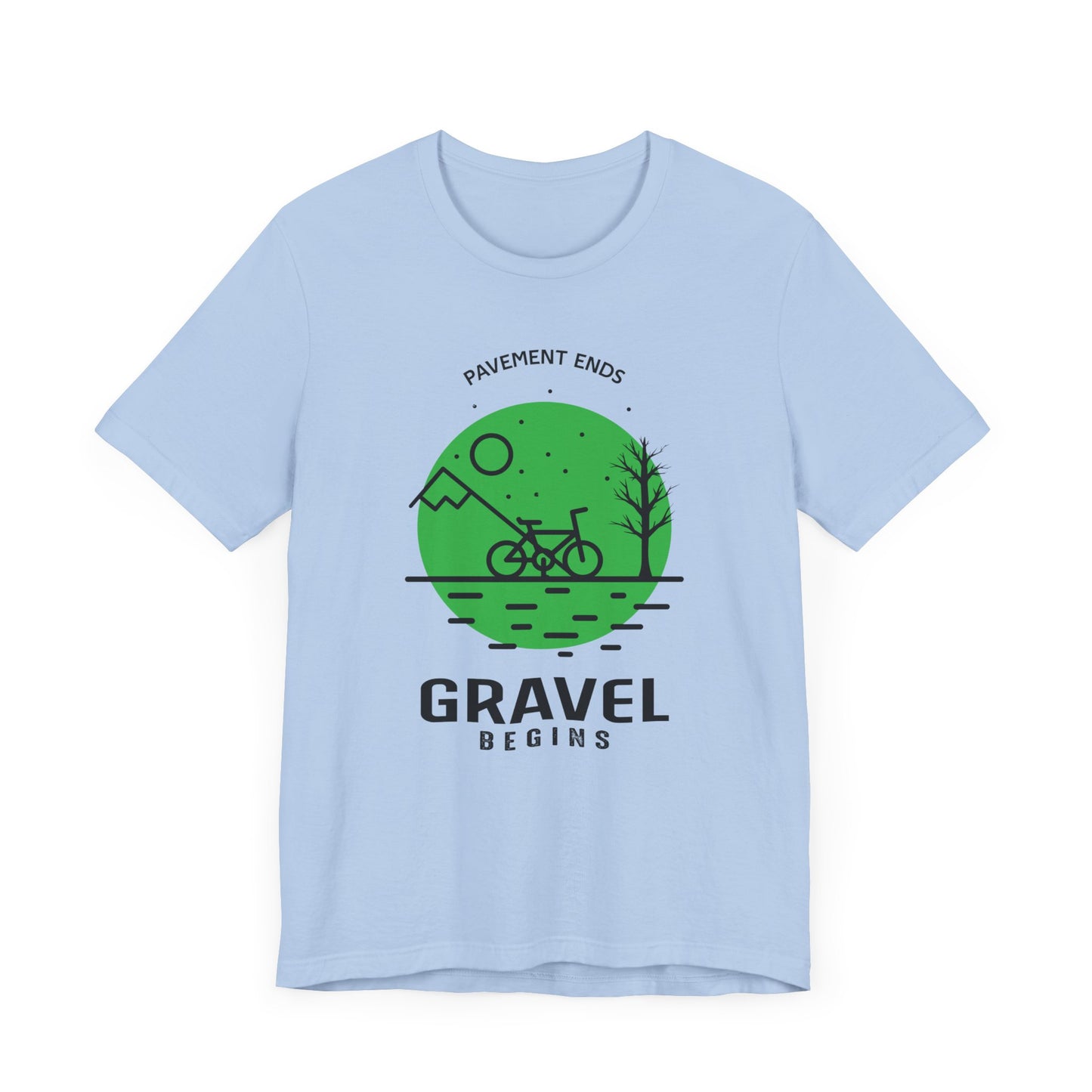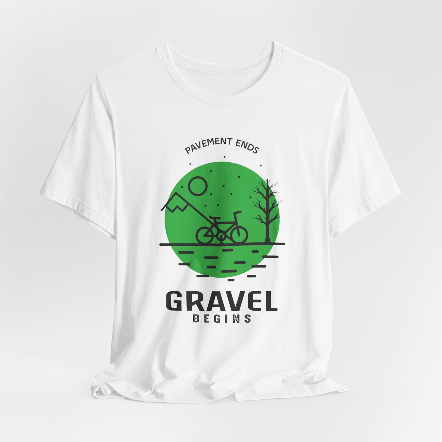 Celebrate the adventure of gravel biking with our "Pavement Ends, Gravel Begins" Unisex Jersey Short Sleeve Tee. Perfect for those who love to explore the unknown and embrace the freedom of the open trail. Available now – get yours and ride where the road ends and the adventure begins!