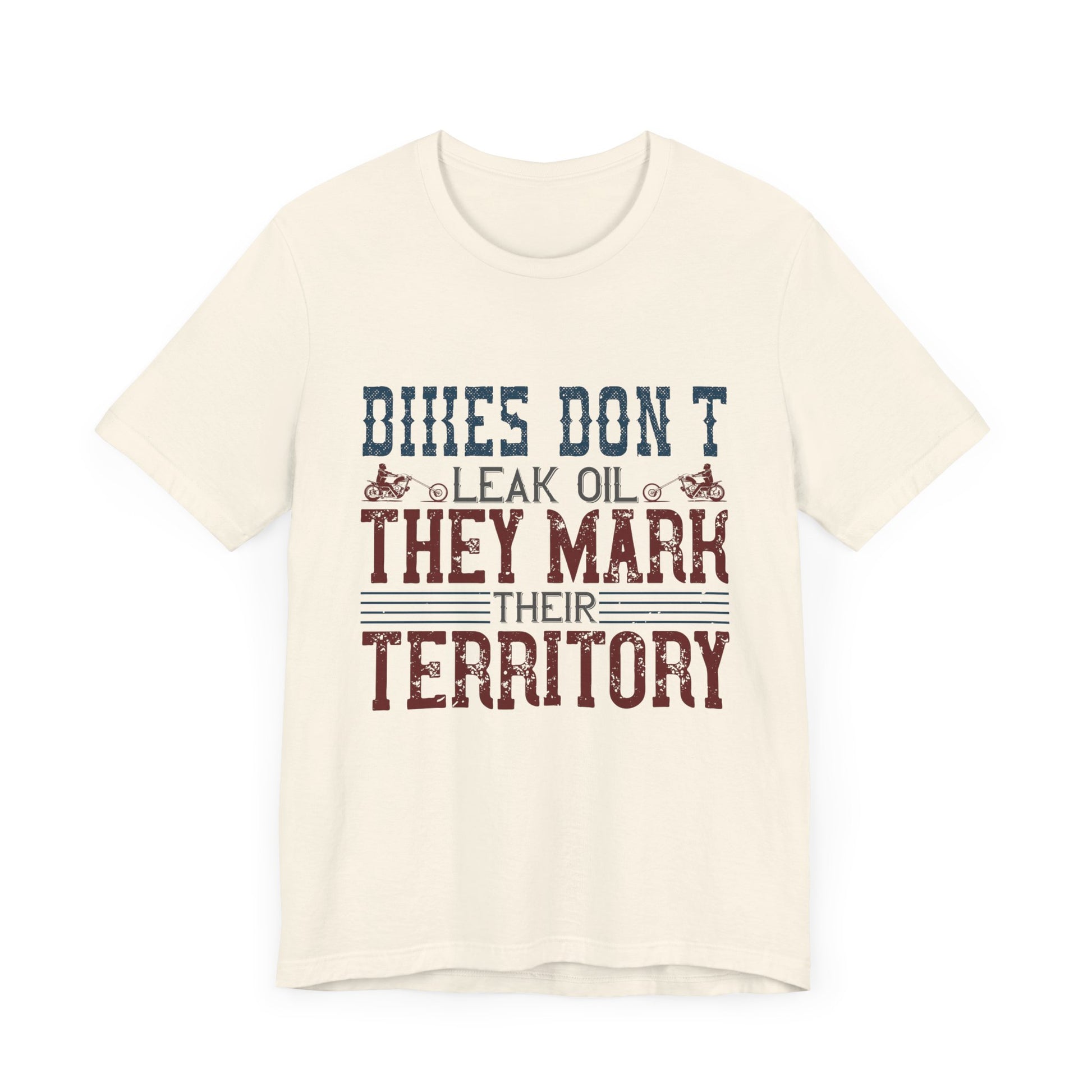 - Design: "Bikes Don't Leak Oil, They Mark Their Territory" text with a cool motorcycle graphic