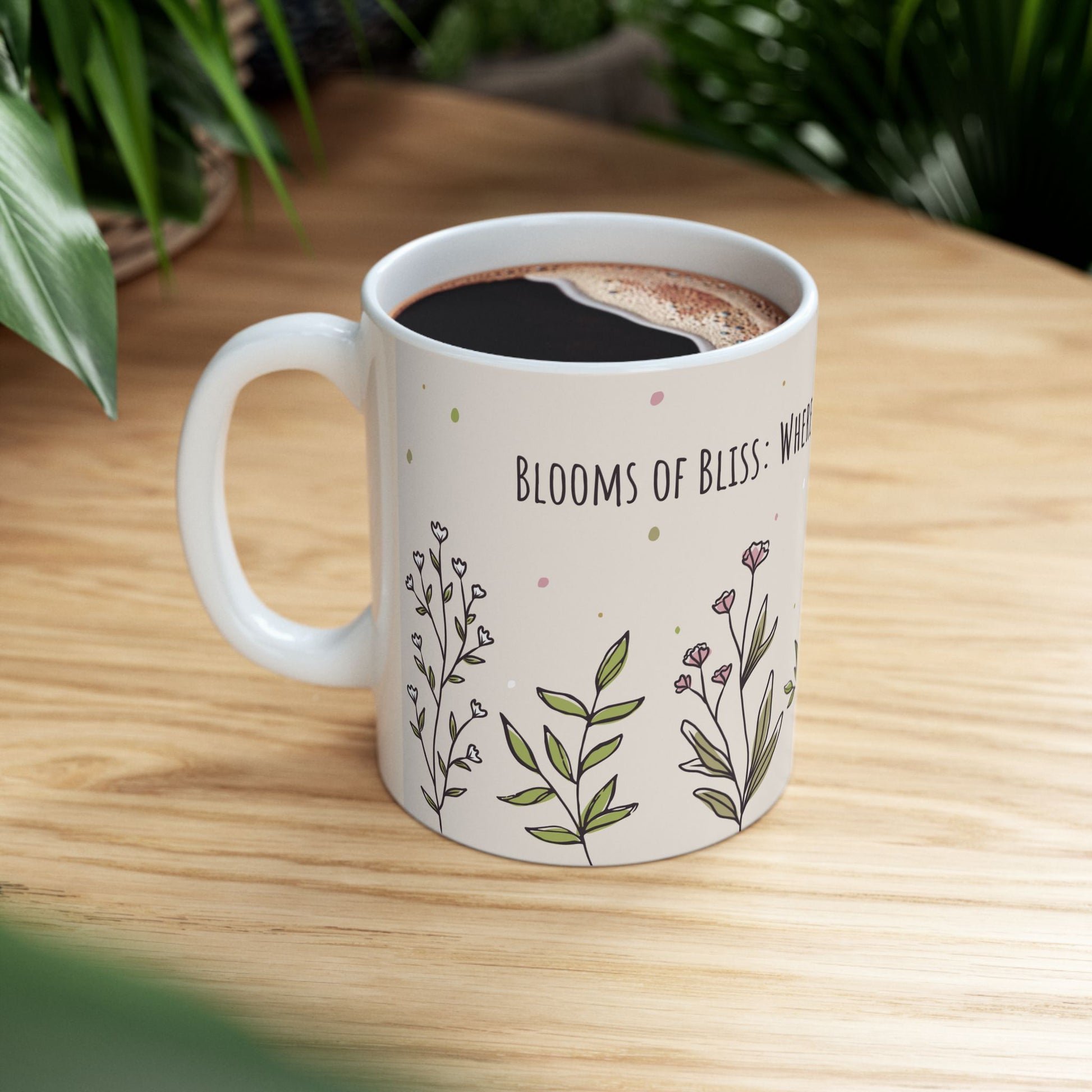 Add a touch of joy to your day with the Blooms of Bliss Ceramic Mug. Featuring a vibrant floral design, this mug is perfect for those who appreciate the simple beauty of nature and the peaceful moments it brings.