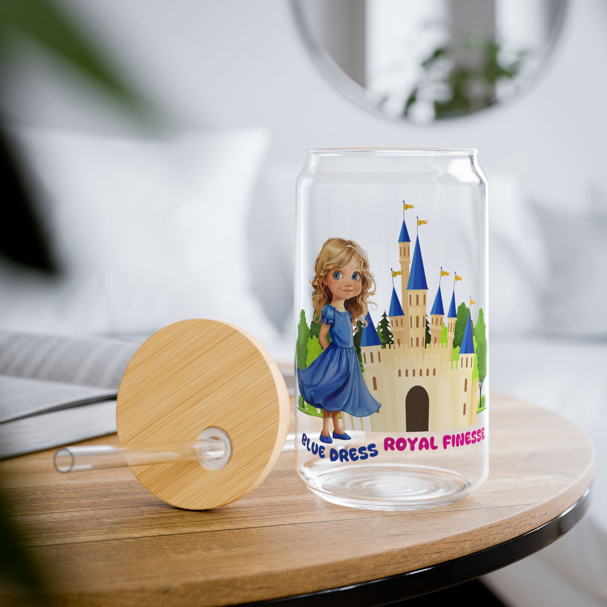 Elevate every sip with the "Blue Dress Princess, Royal Finesse" Sipper Glass. This 16oz glass features a whimsical design of a princess in a majestic blue dress, perfect for adding a touch of elegance to any beverage. Crafted from high-quality glass, it’s both stylish and practical, making it ideal for enjoying everything from juice to milkshakes. With its comfortable grip and charming design, this sipper glass turns every drink into a royal experience, making it a delightful addition to any young princess's collection.