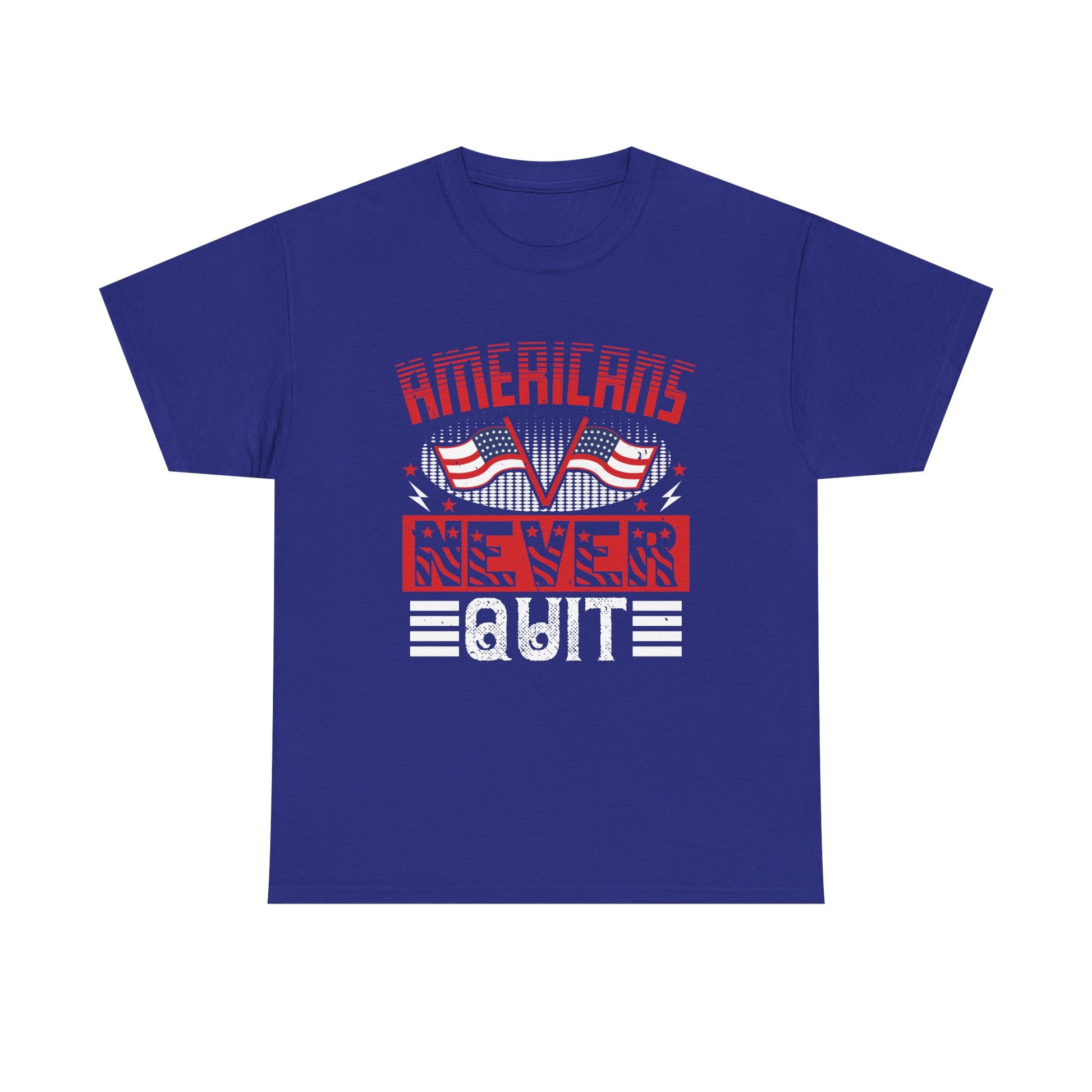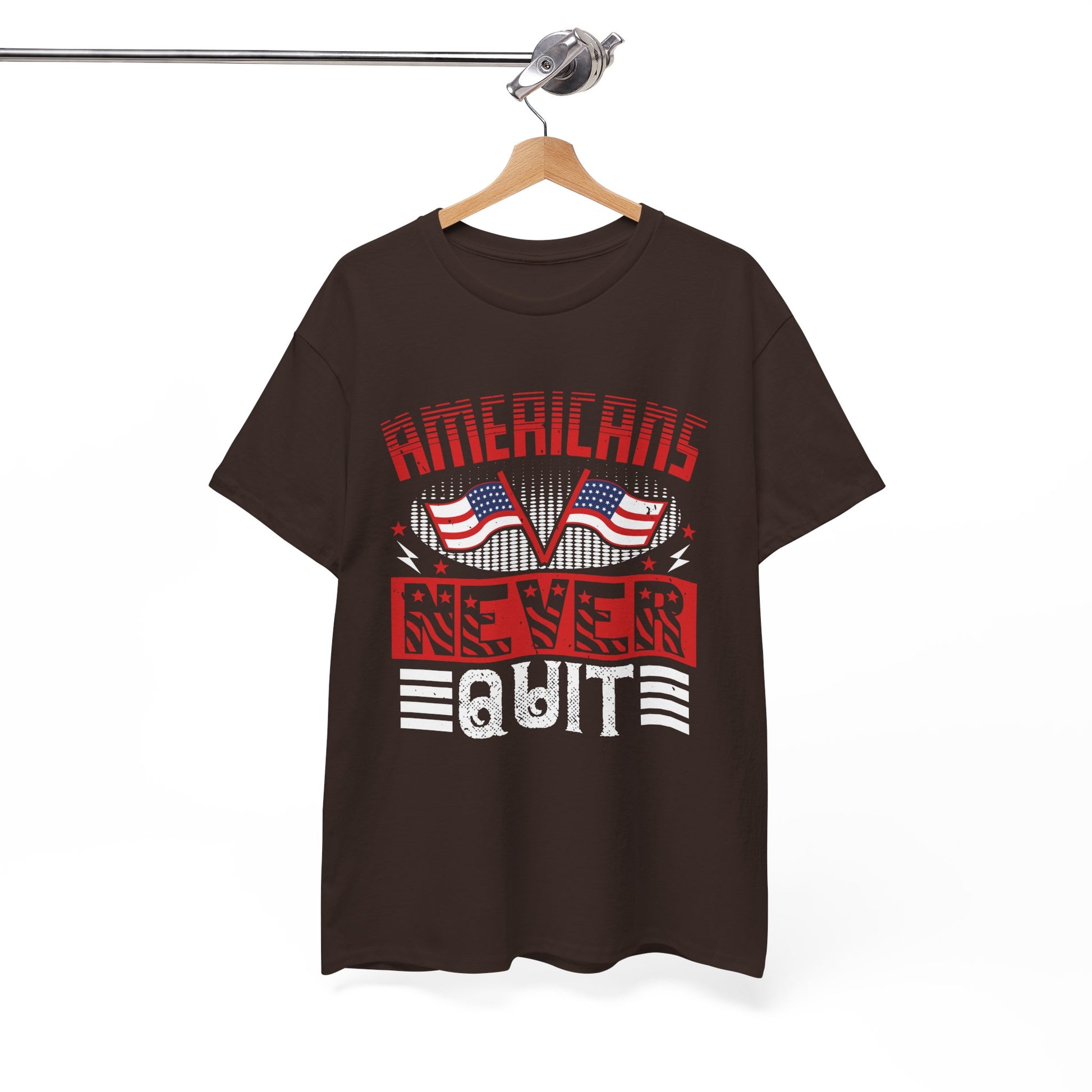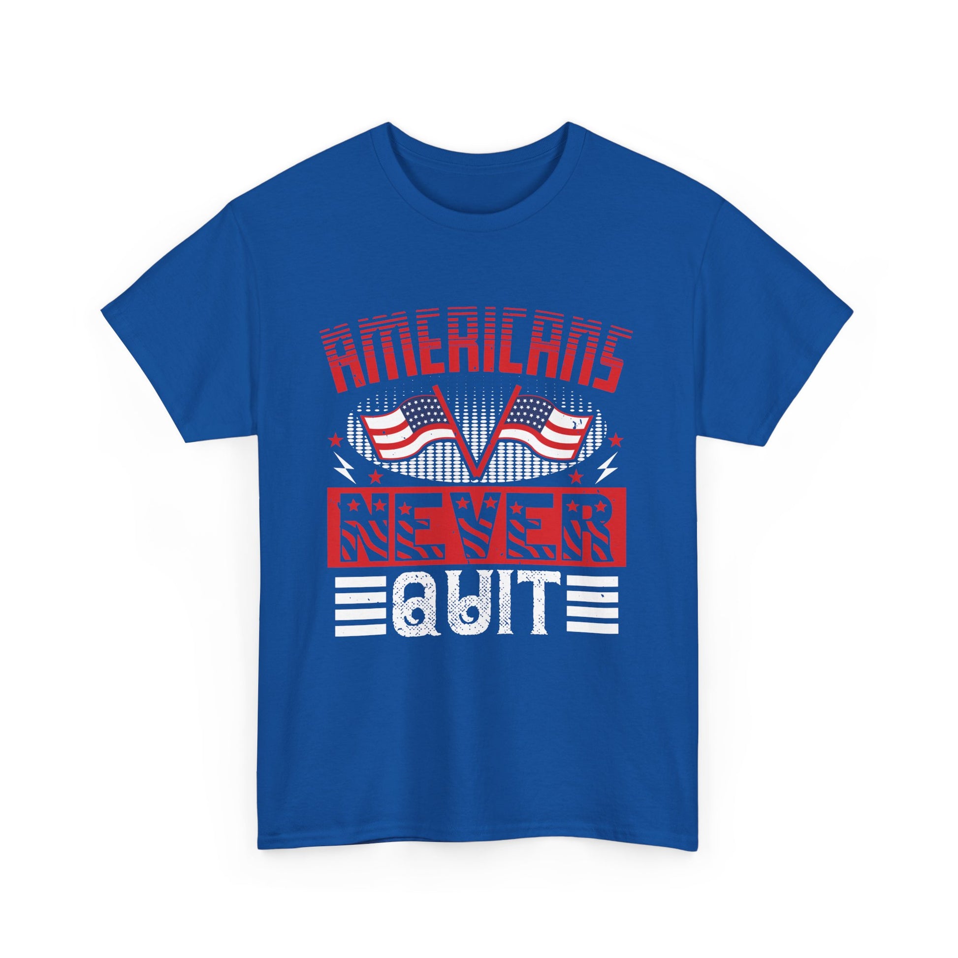 Bold American Pride Tee - 'Americans Never Quit' Graphic Shirt, Patriotic Apparel, Unisex Cotton Tee, Gift for Veterans, Independence - 13814