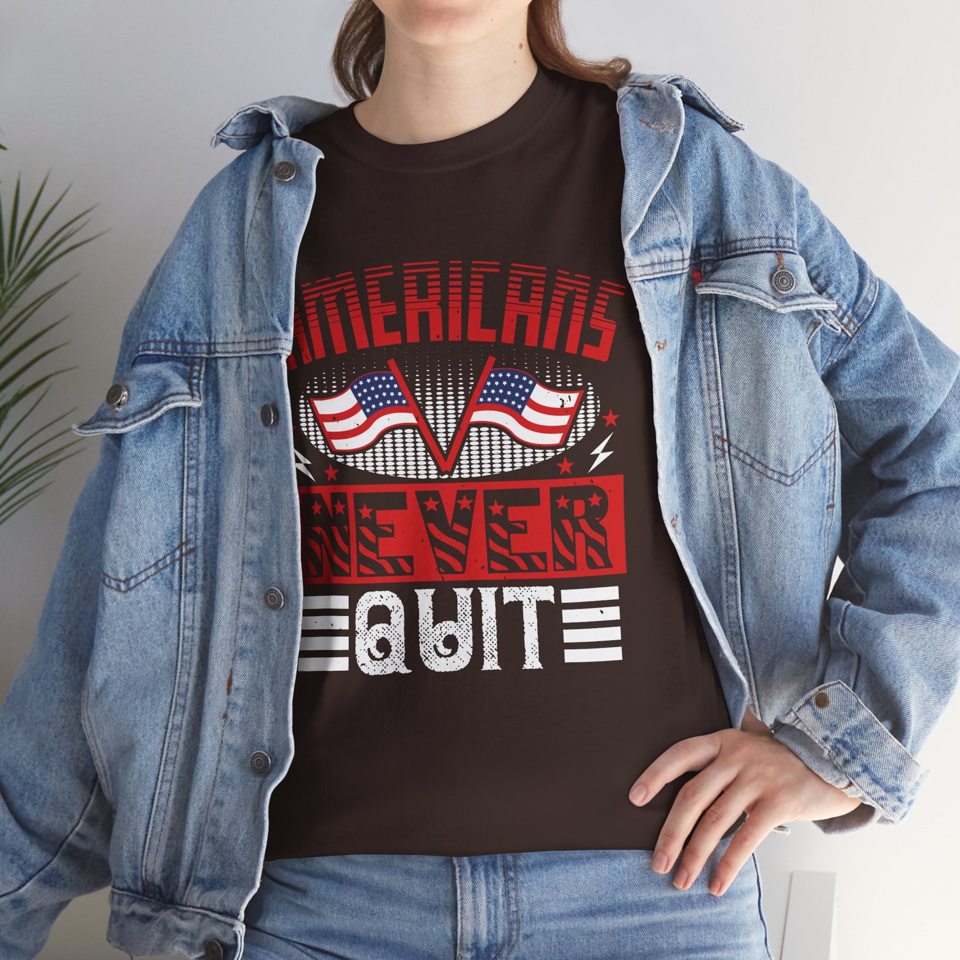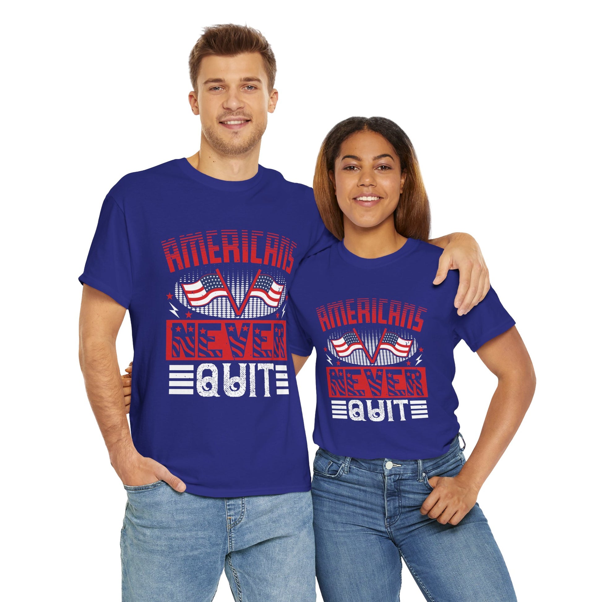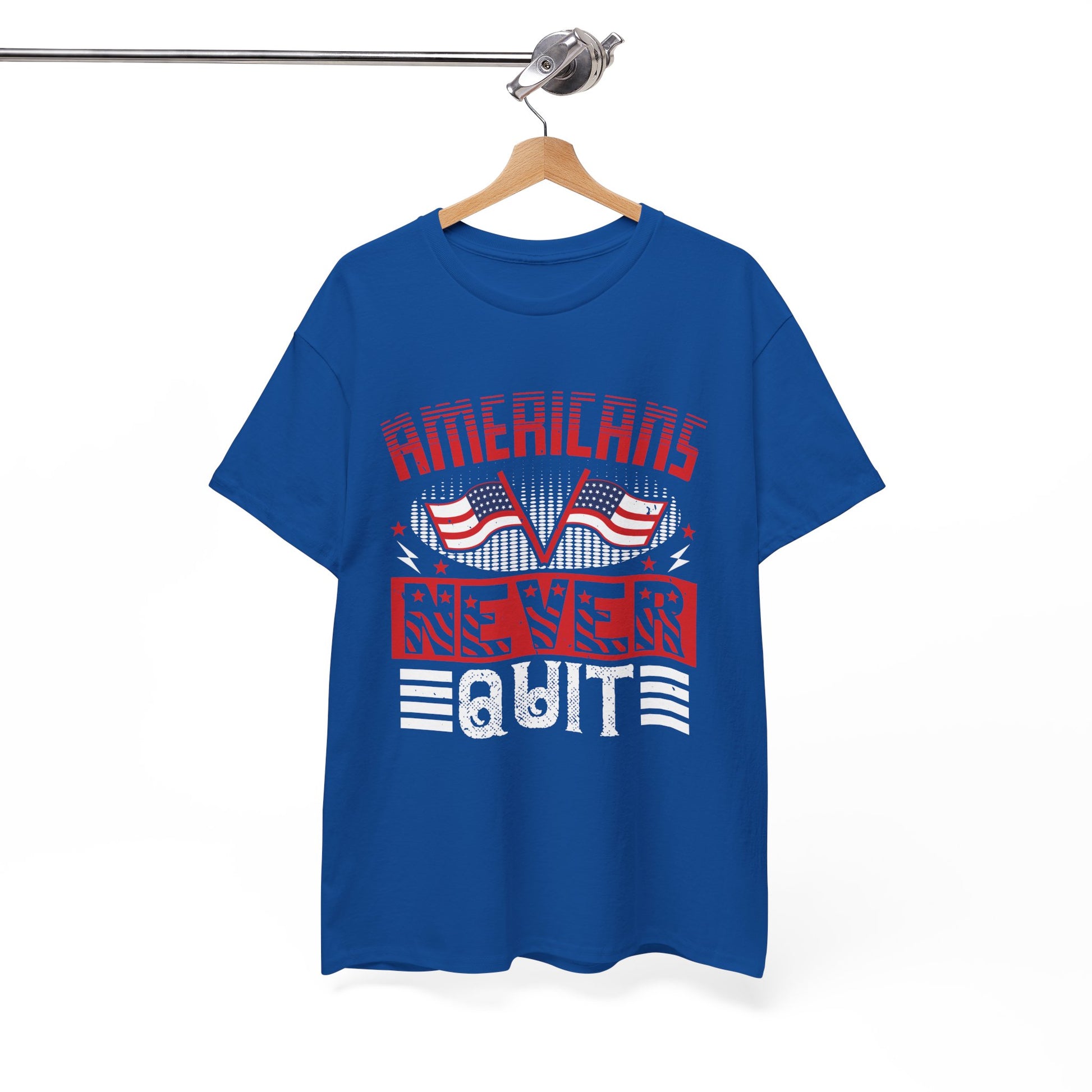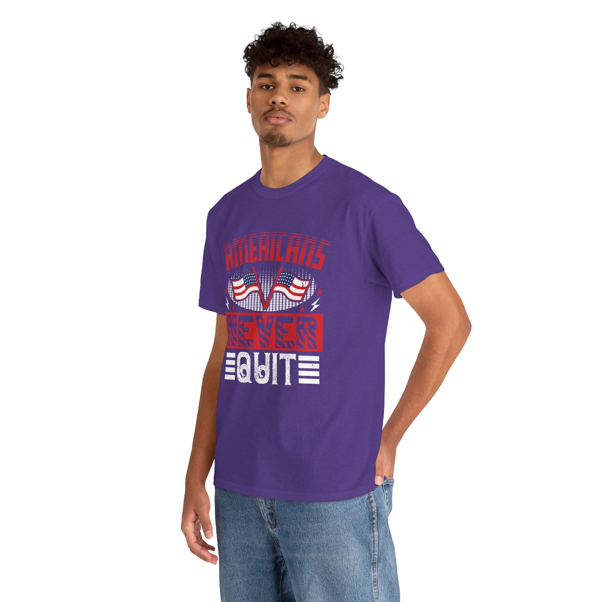Bold American Pride Tee - 'Americans Never Quit' Graphic Shirt, Patriotic Apparel, Unisex Cotton Tee, Gift for Veterans, Independence - 13814