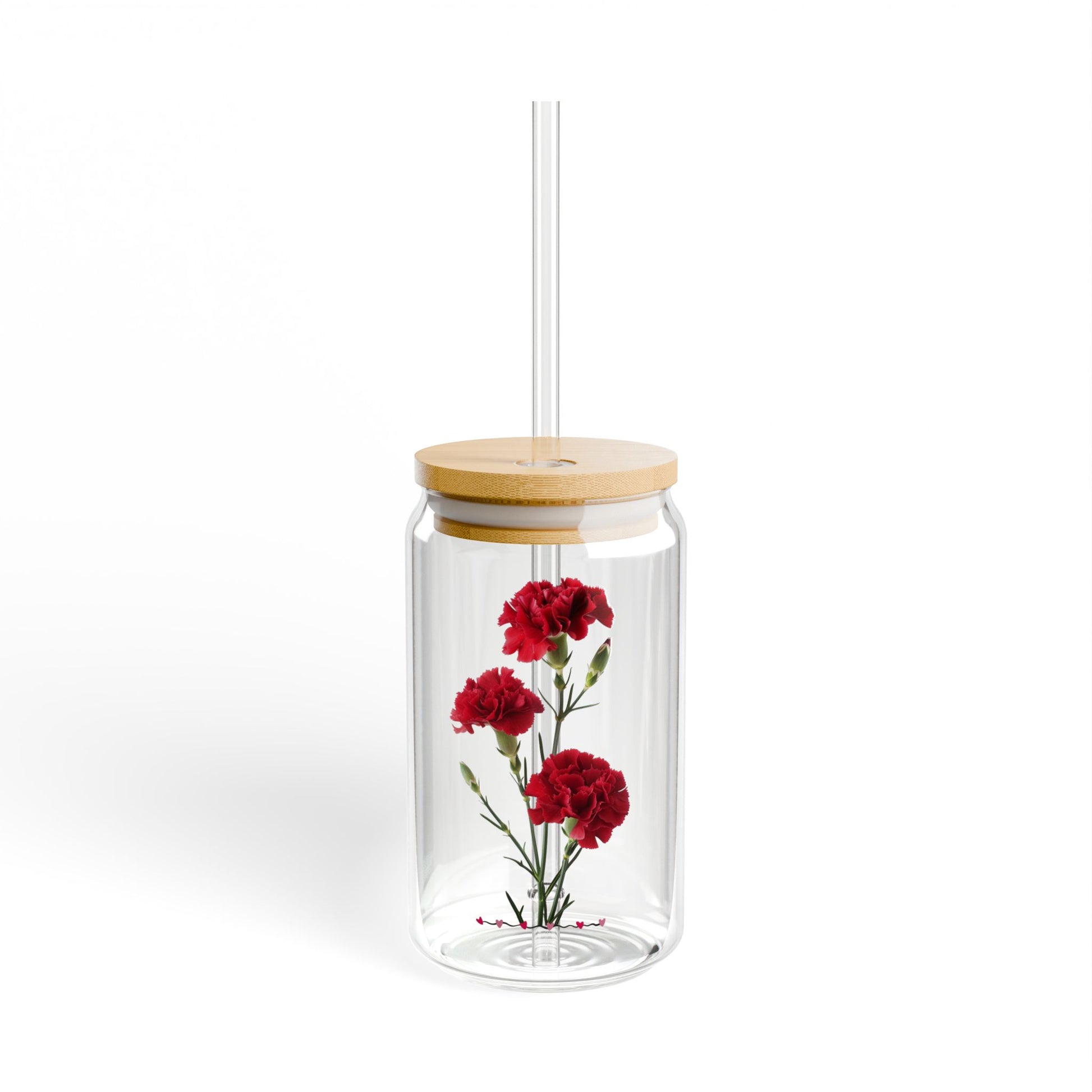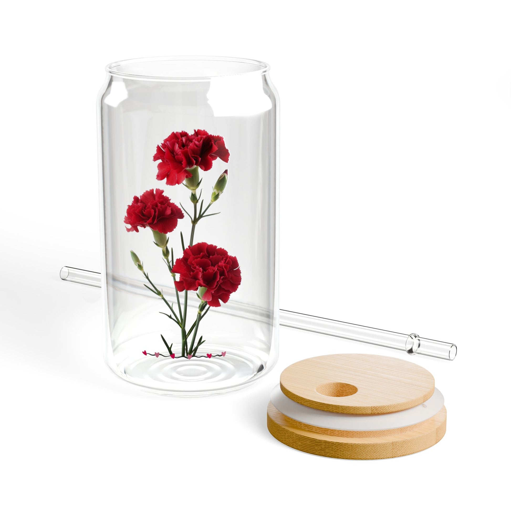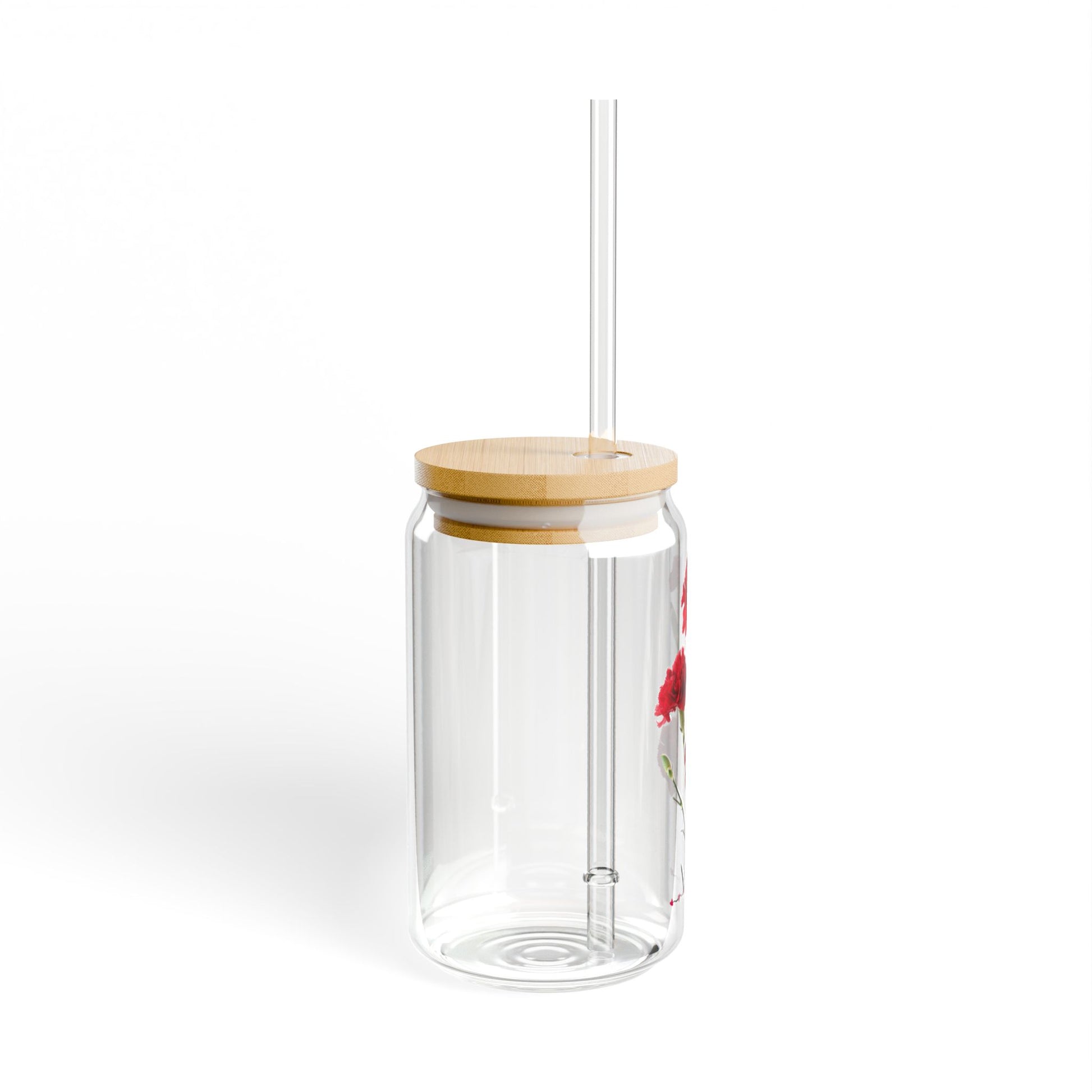 Bold Red Blooms, Customizable - Sipper Glass, 16oz - 10819