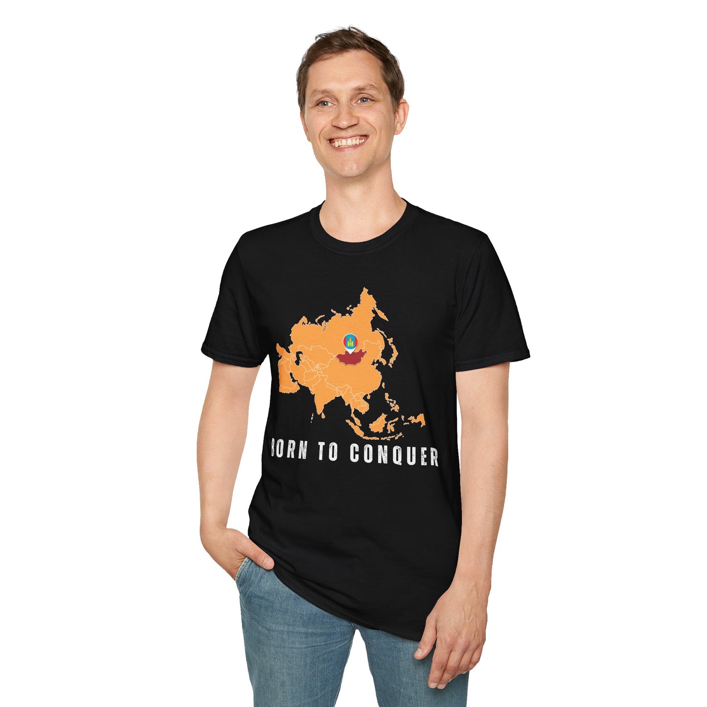 Born to Conquer, Mongolia - Unisex Softstyle T-Shirt - 10342