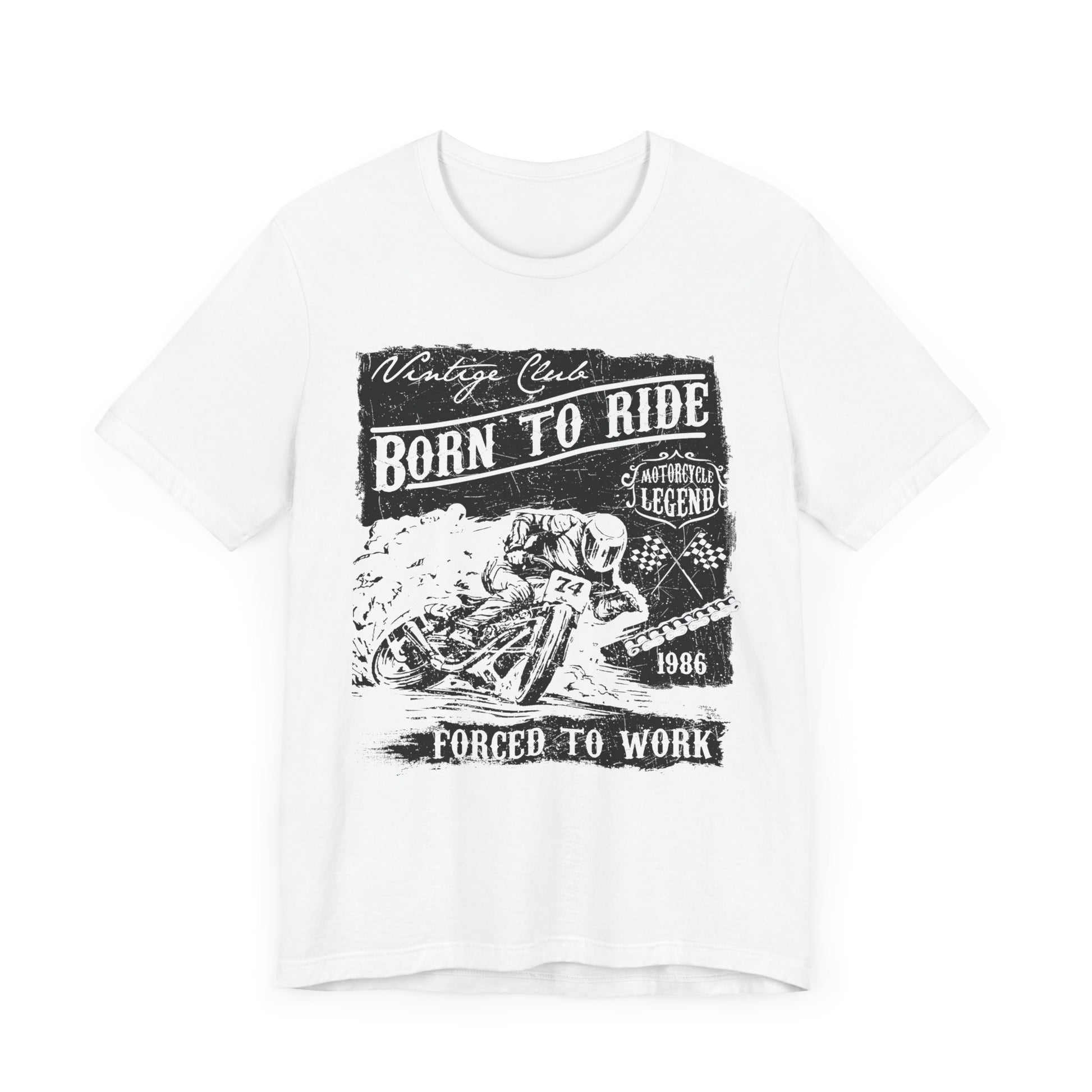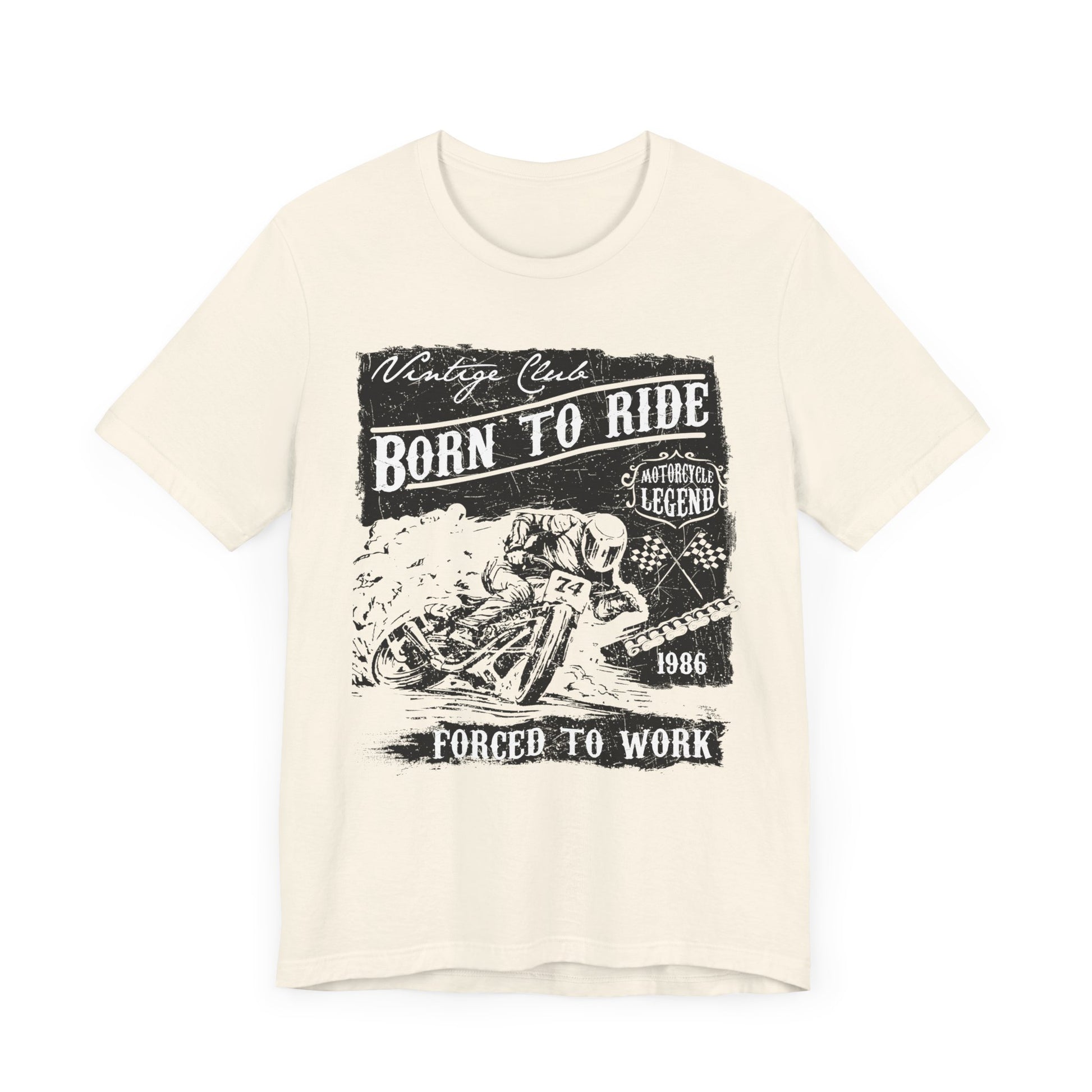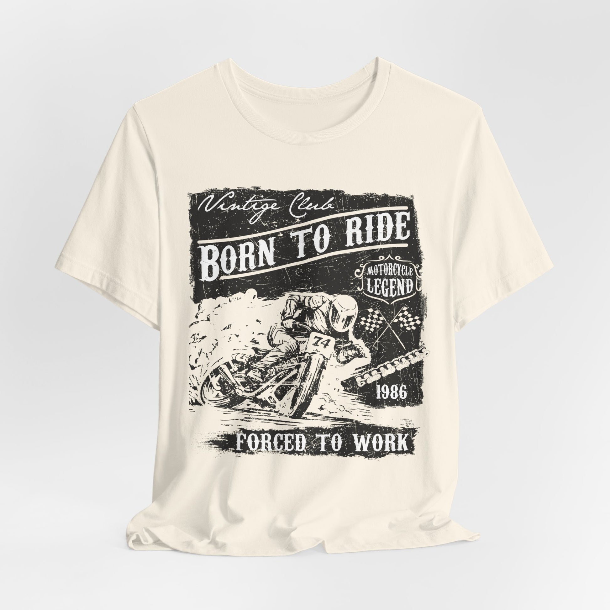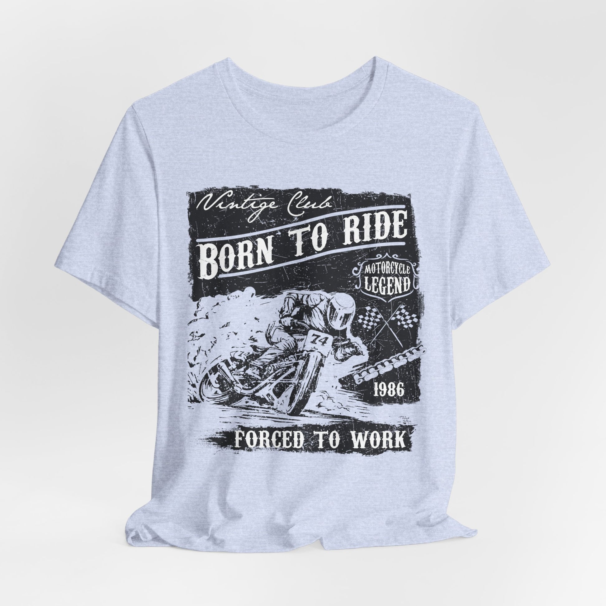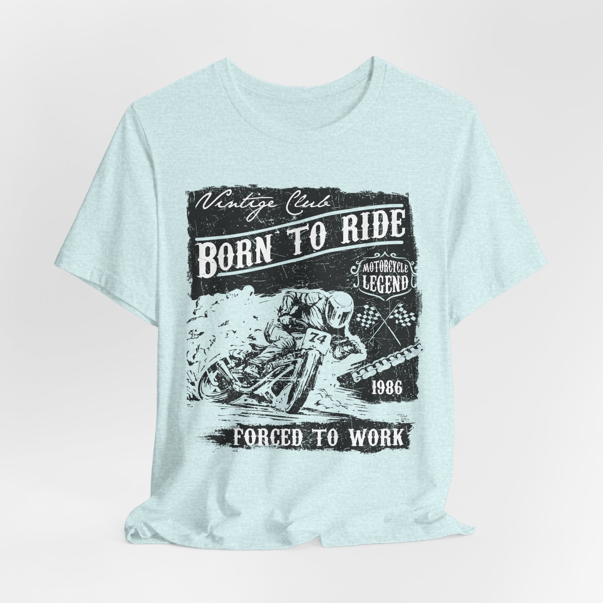 - Humorous Graphic Design: With the witty statement “Born To Ride, Forced To Work,” this tee is a fun way to express your love for motorcycles and the reality of balancing life’s responsibilities.