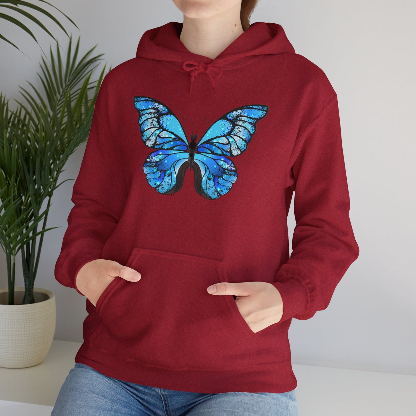 Emblazoned with a vibrant butterfly design, each intricate detail pops with color and life, bringing a touch of whimsy to your everyday look. Whether you're lounging at home or exploring the great outdoors, this hoodie is sure to turn heads and spark conversations.